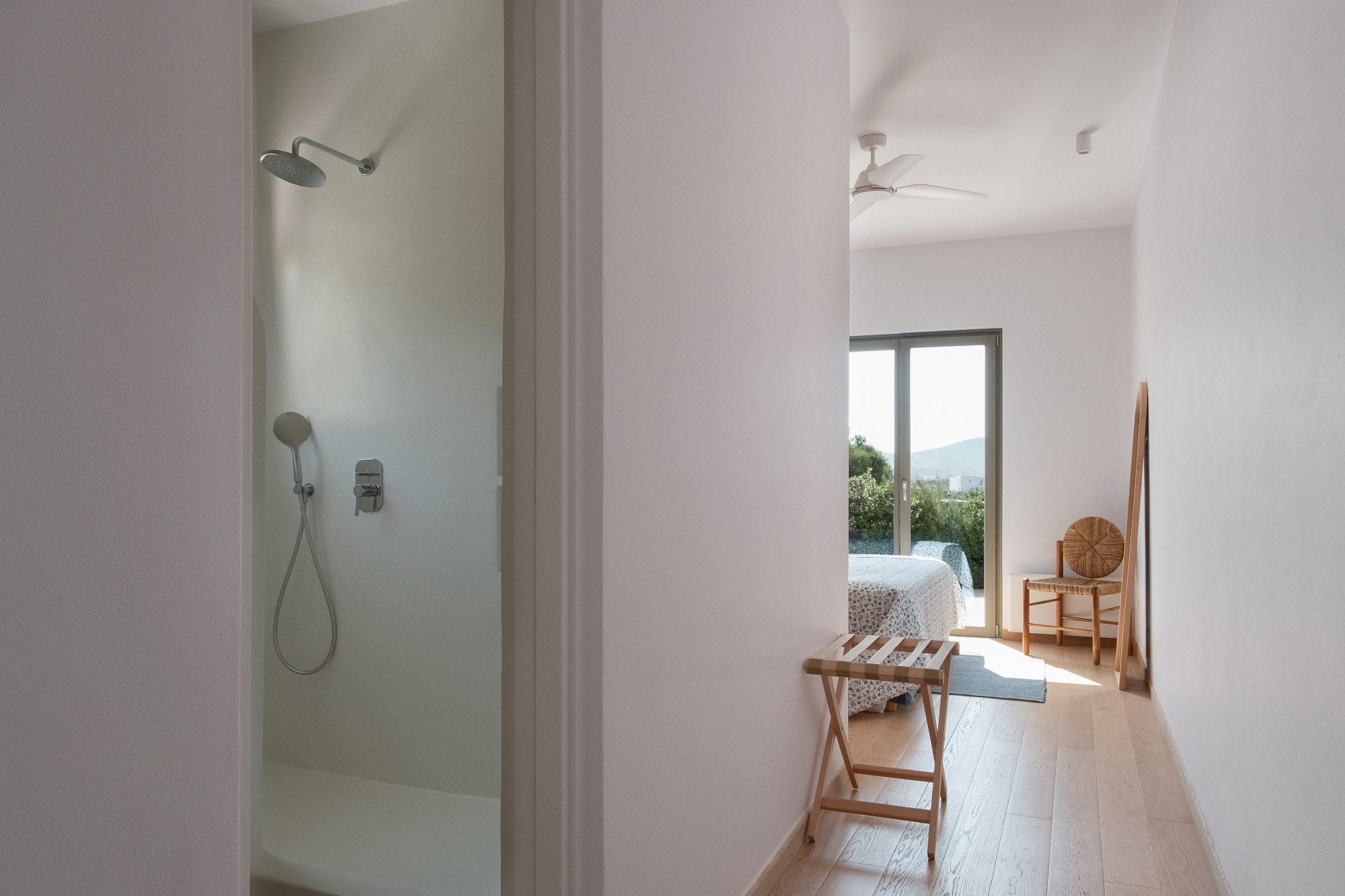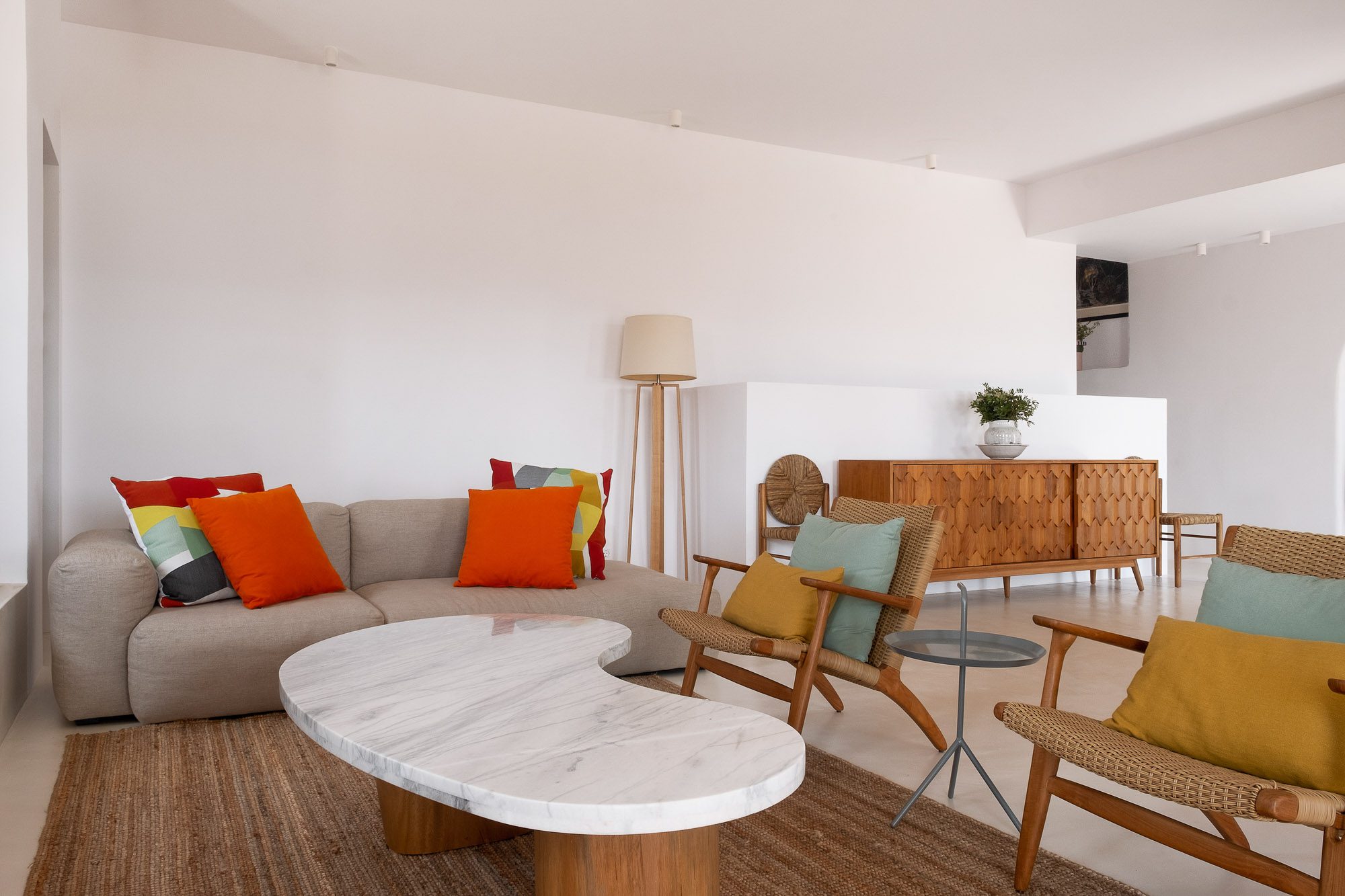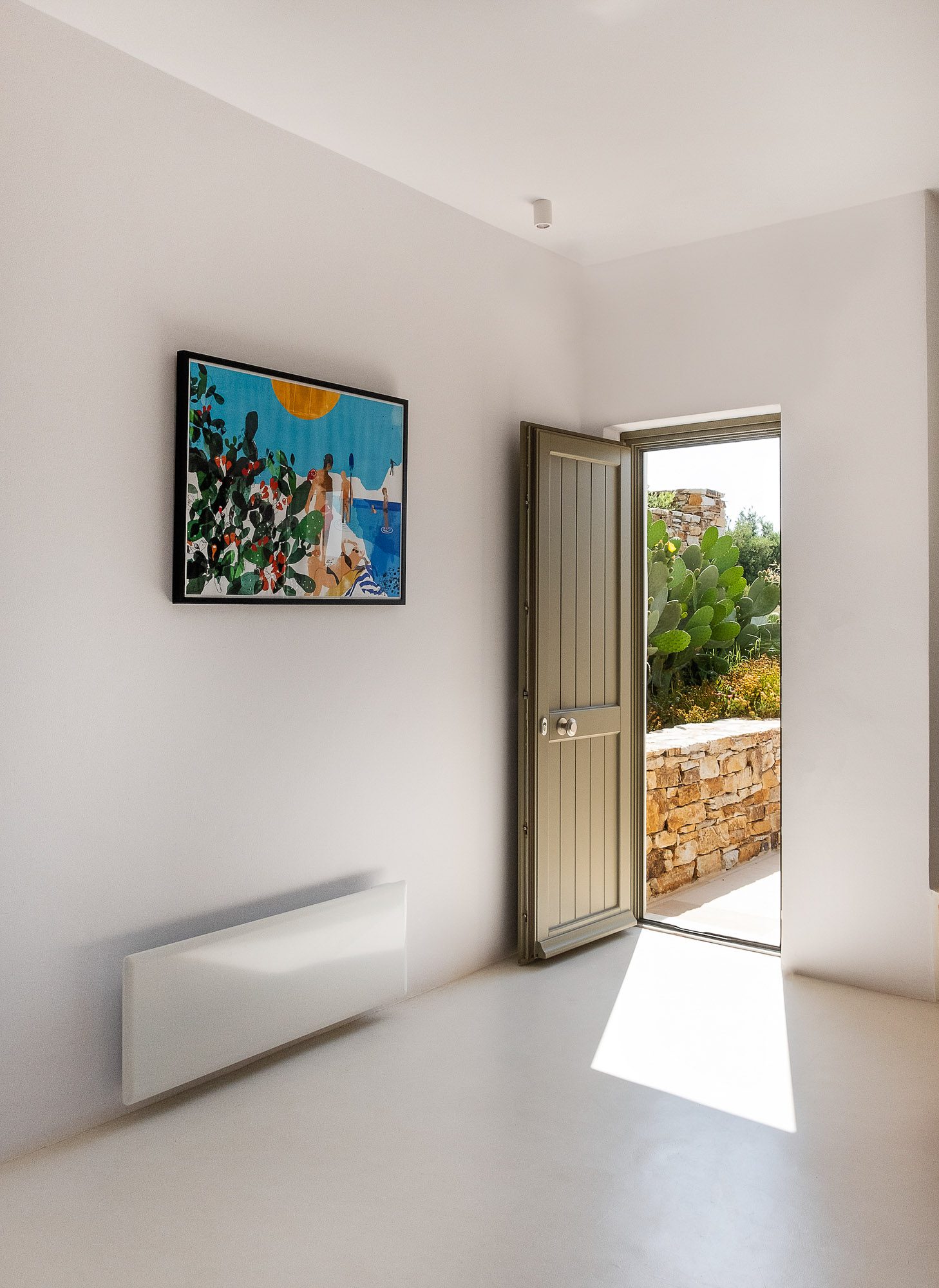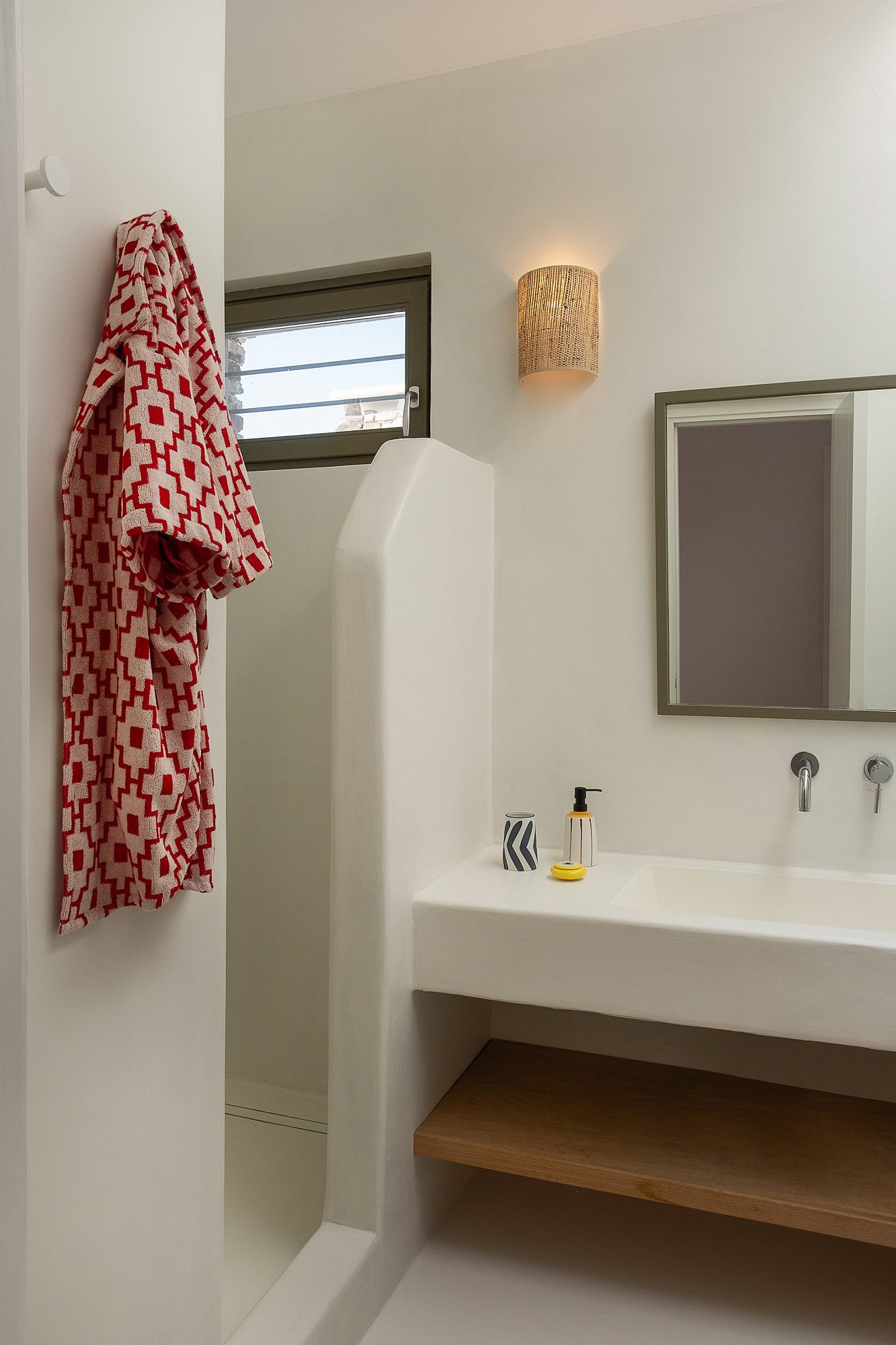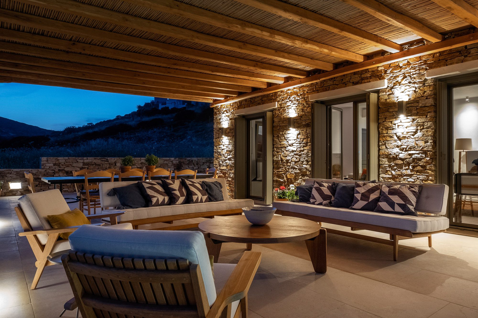 There are comfortable sun beds and a pool shower. Terraced patios are planted with an array of colourful indigenous plants and cacti. You could easily spend ages here just gazing across the plains at the sparkling waters of the Aegean.