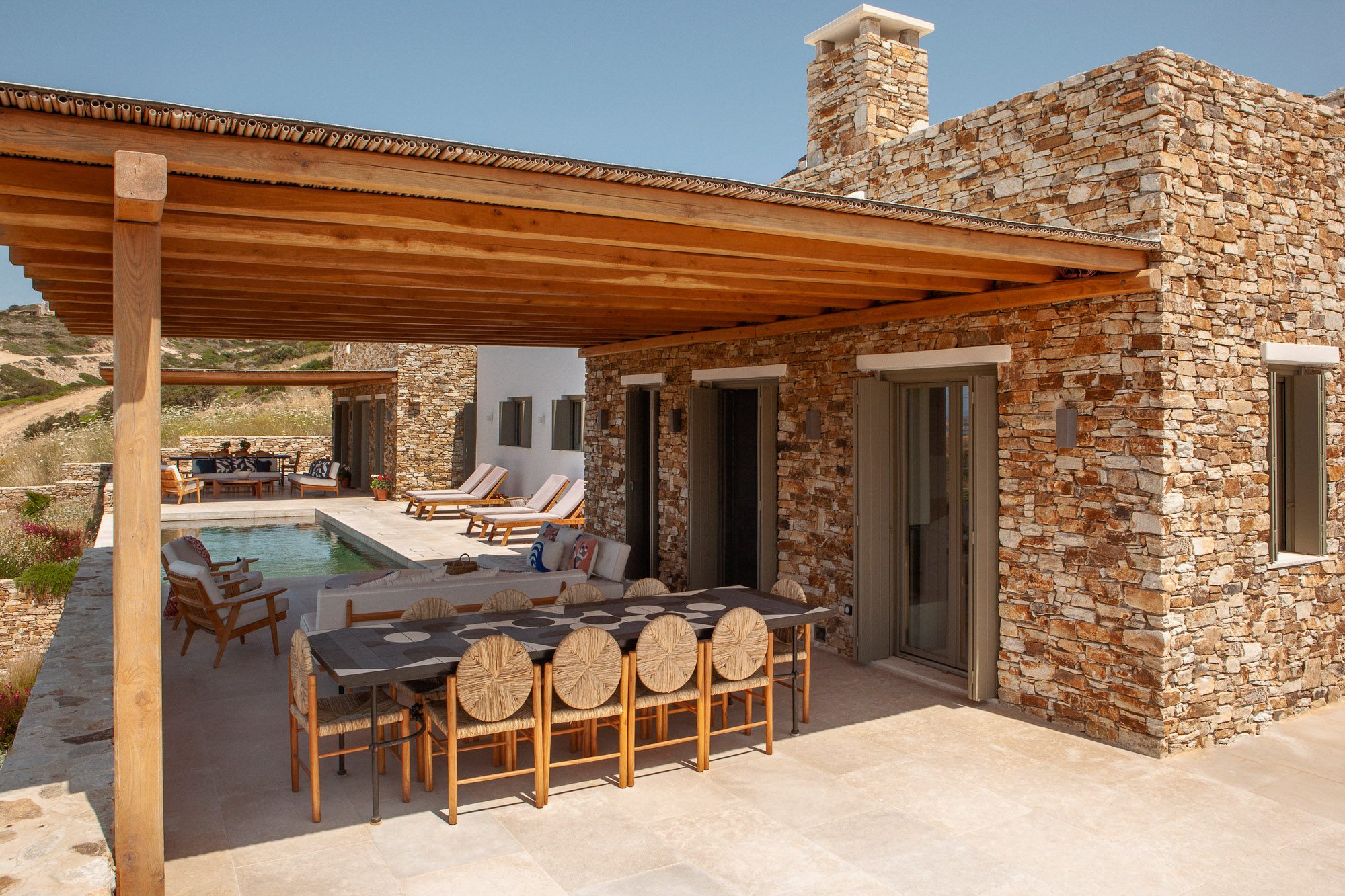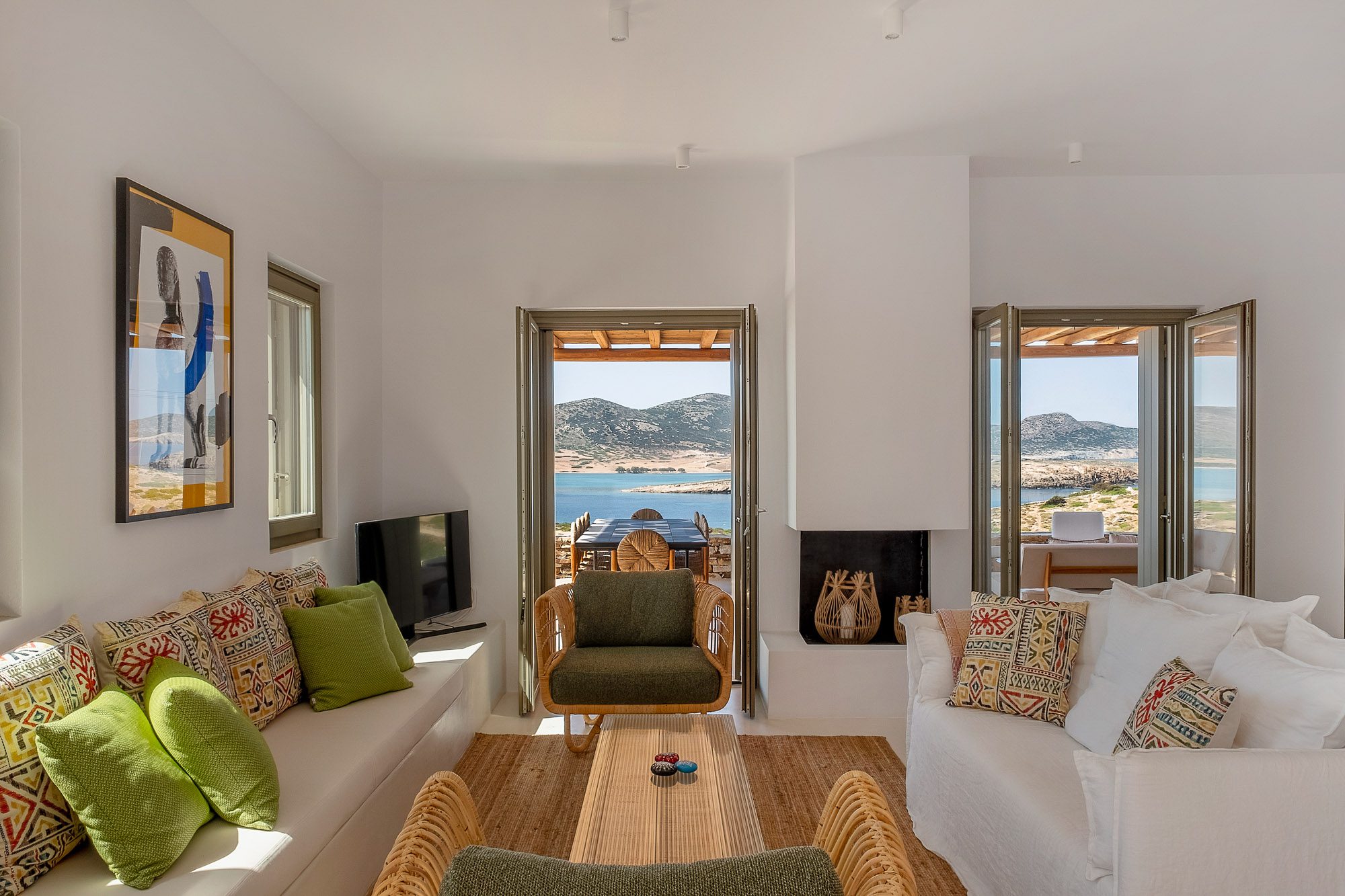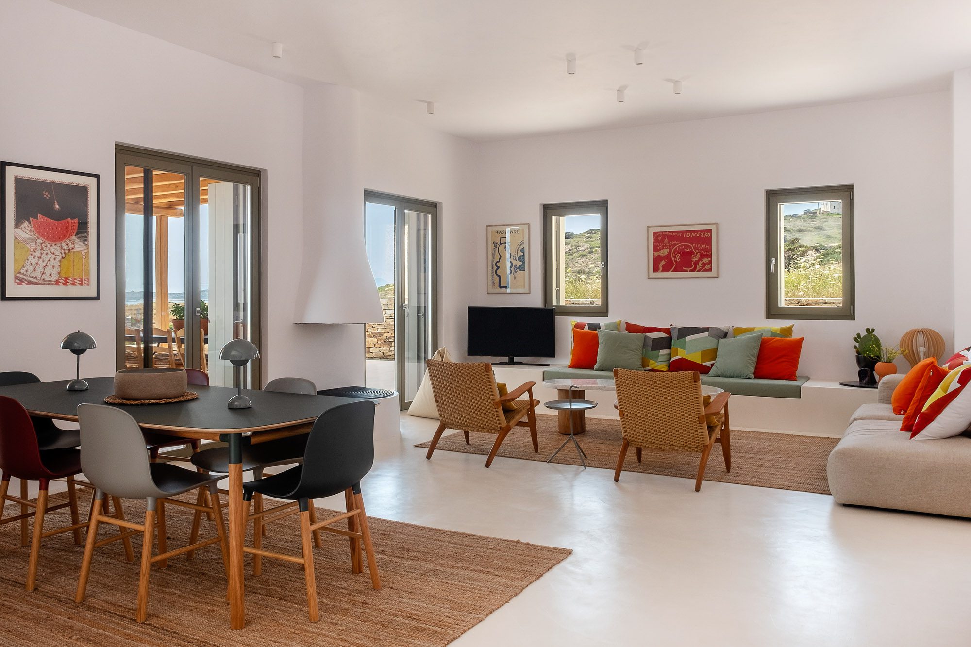It's a great property for large groups of friends or families. It's in a tranquil spot near three golden sandy beaches and within walking distance of a couple of tavernas. The island is known for its laid-back vibe, crystal-clear waters, and distinctive natural beauty.