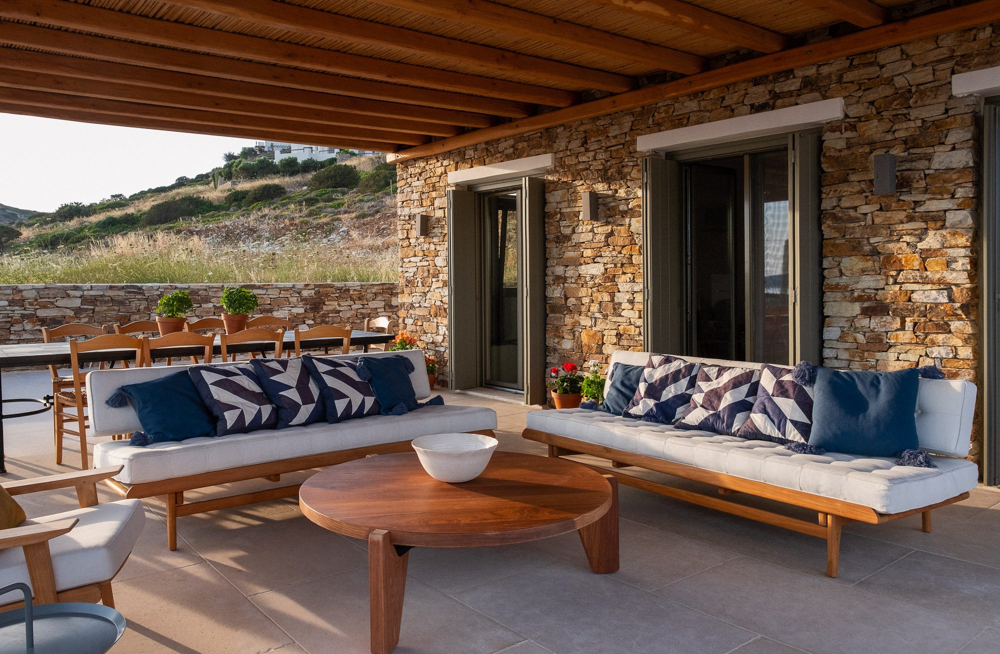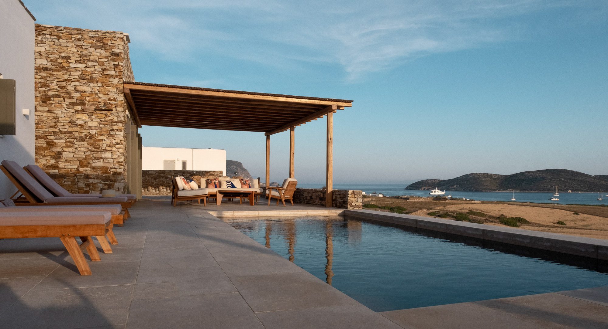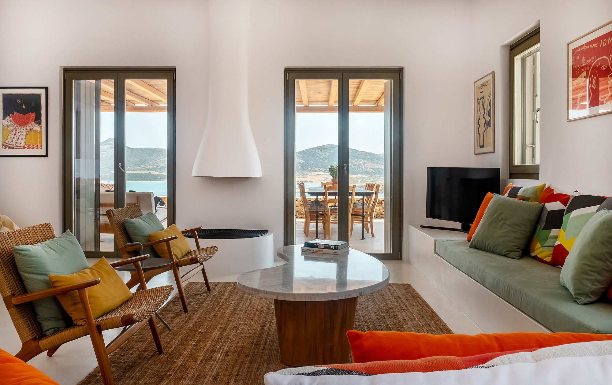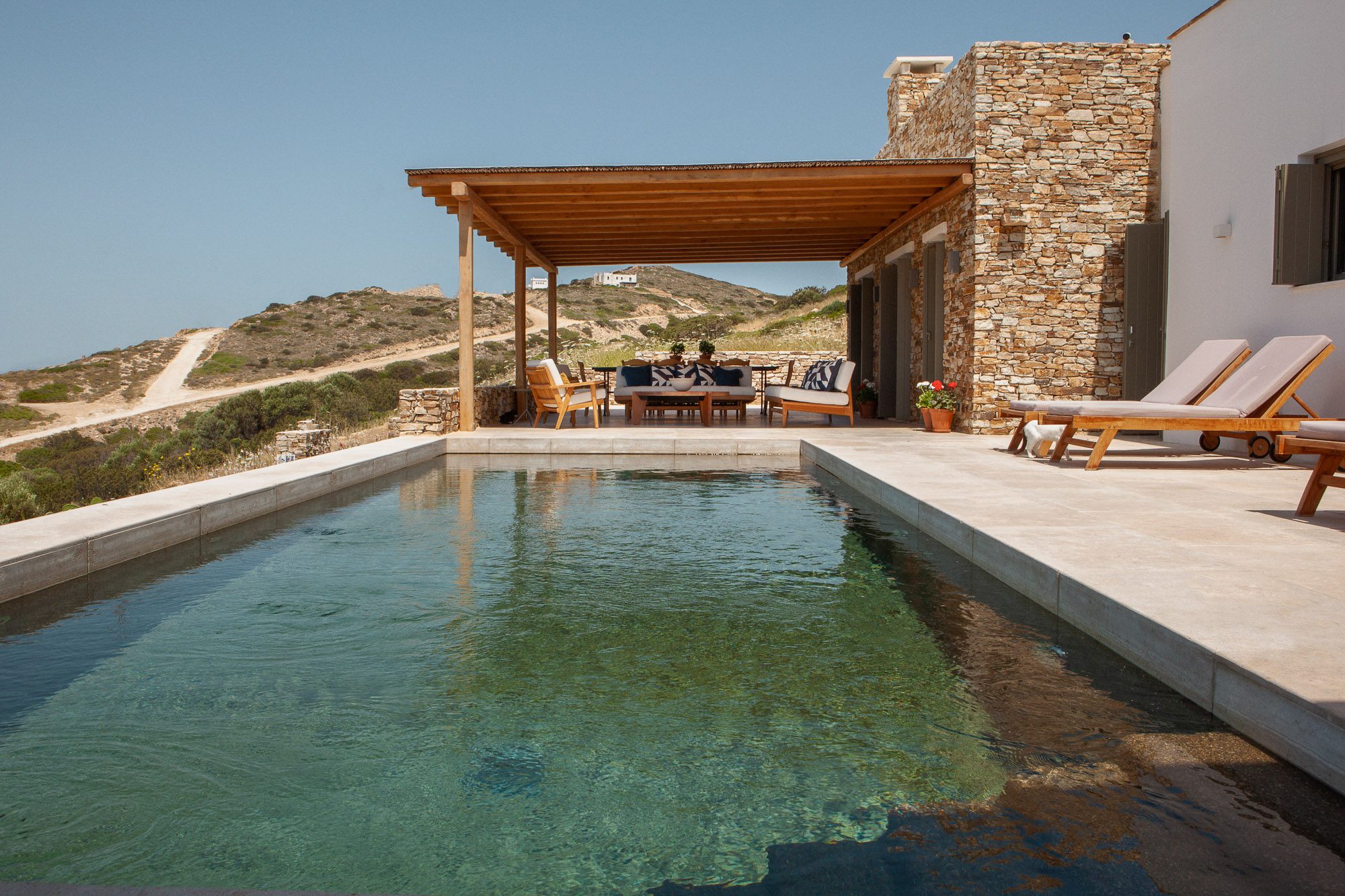 It's a great property for large groups of friends or families. It's in a tranquil spot near three golden sandy beaches and within walking distance of a couple of tavernas. The island is known for its laid-back vibe, crystal-clear waters, and distinctive natural beauty.