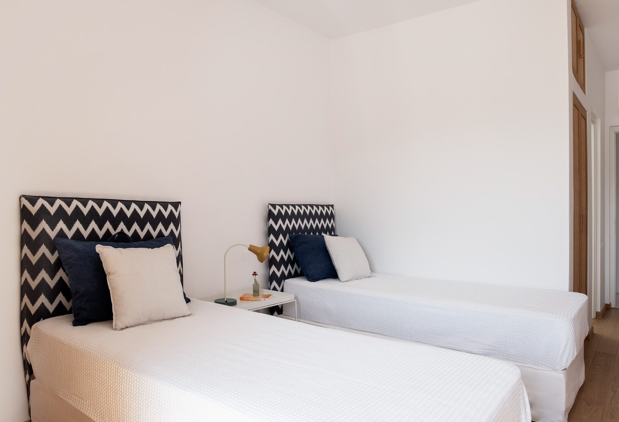 Each unit has five bedrooms, a kitchen and an open-plan dining/living area with comfortable seating, doors to the covered terrace and great views of the bay.