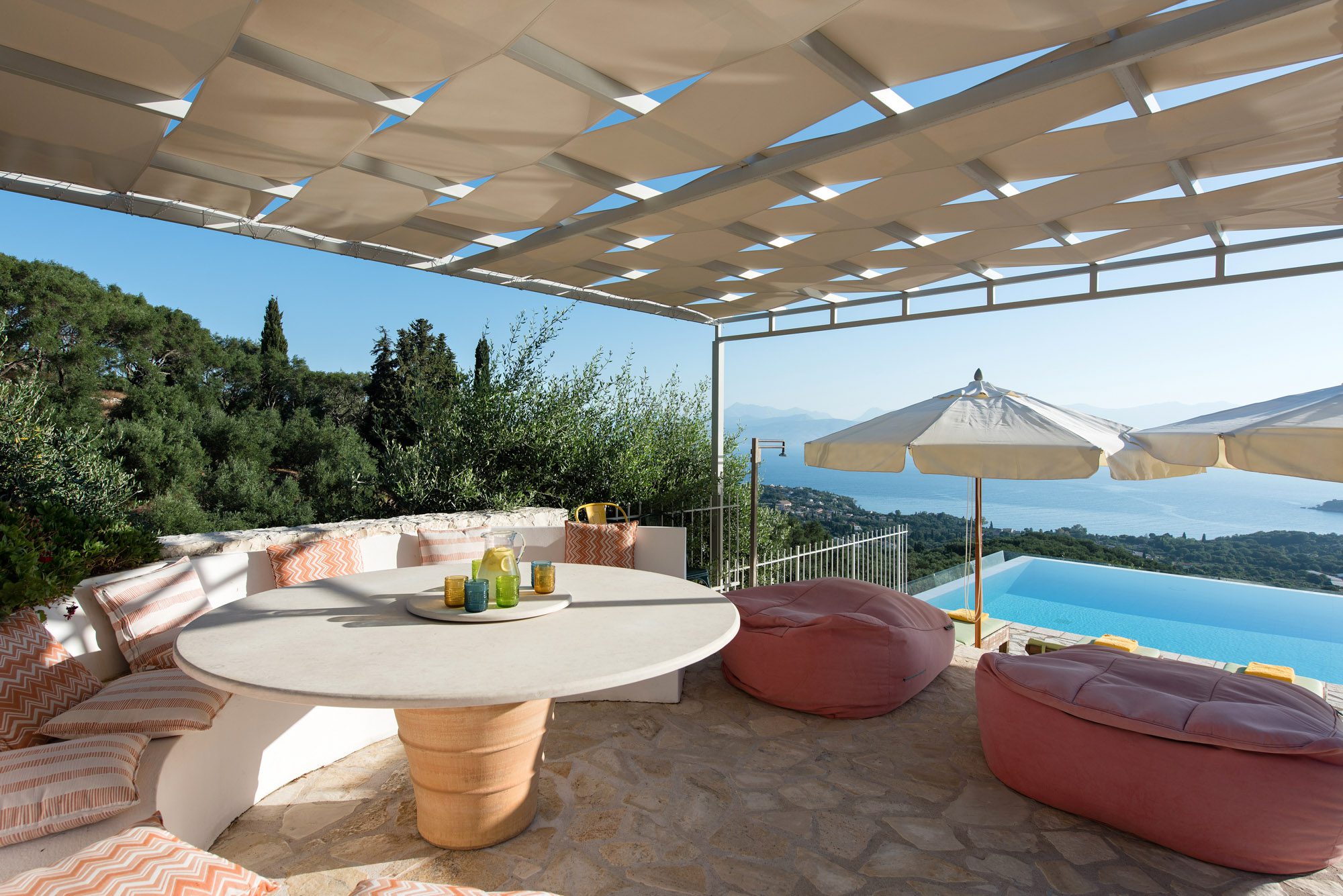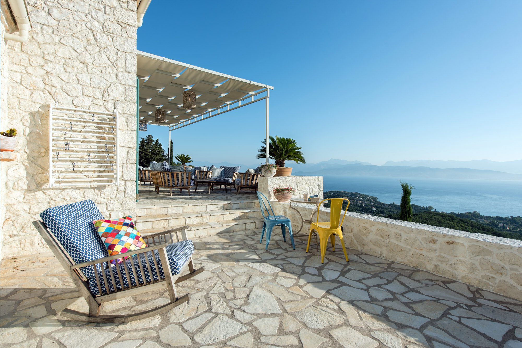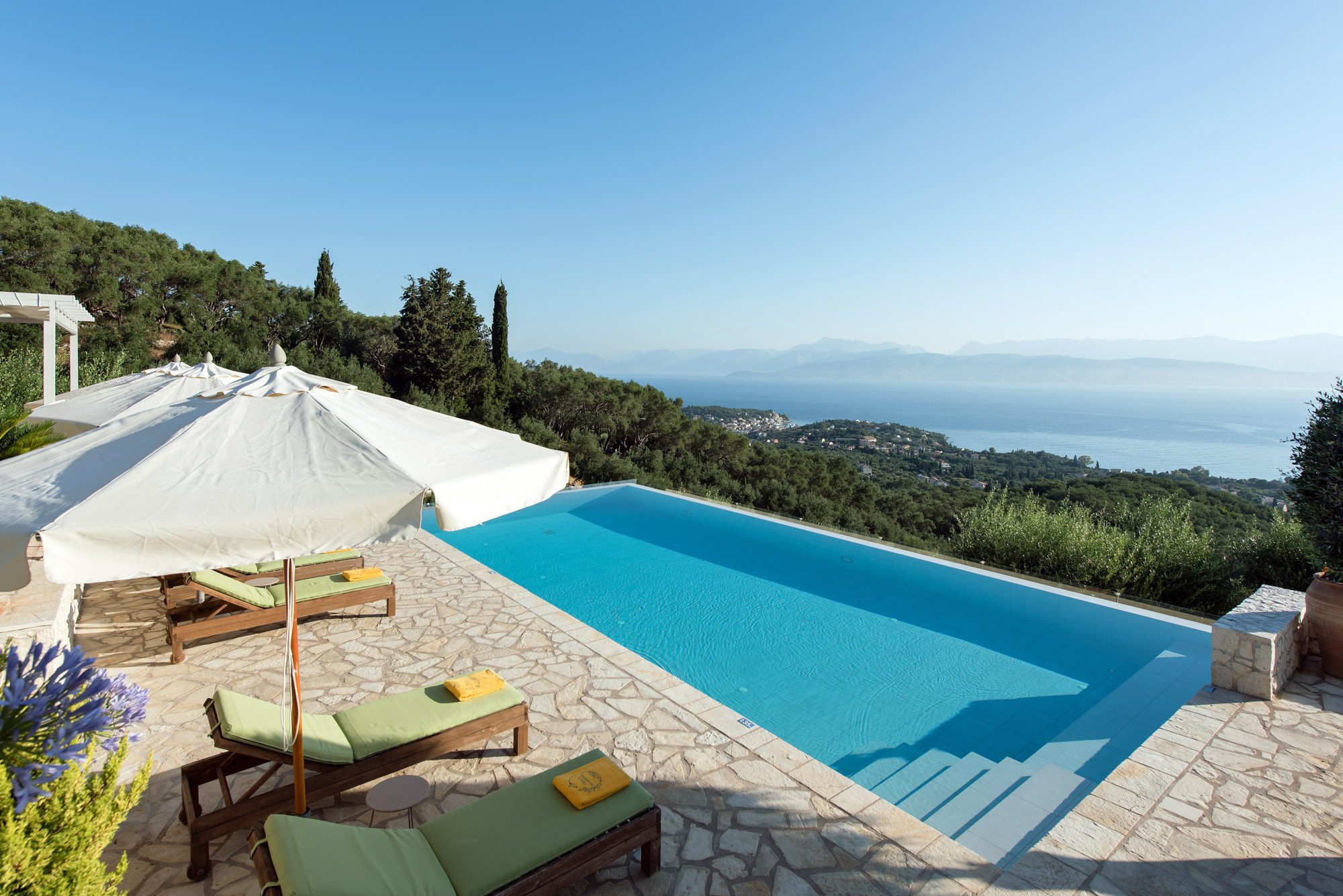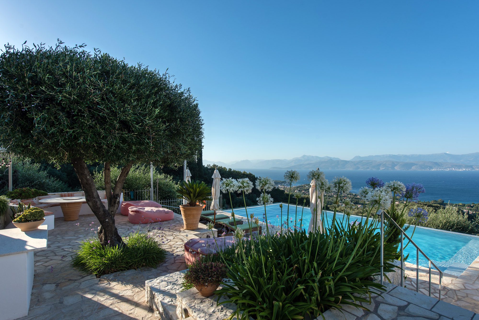 The property's pale stone walls and petrol-blue shutters sit pleasingly within the landscape; it's obvious this place has been designed with an eye for design. The views are just beautiful encompassing Avlaki Bay, Erimitis Nature Reserve and across the Corfu Strait to the mountains of Albania. There's an enchanting garden, an infinity pool and the pretty harbour town of Kassiopi, is only a short drive away. It's a fabulous home for families or groups of friends to enjoy, with lots to explore in the surrounding area.