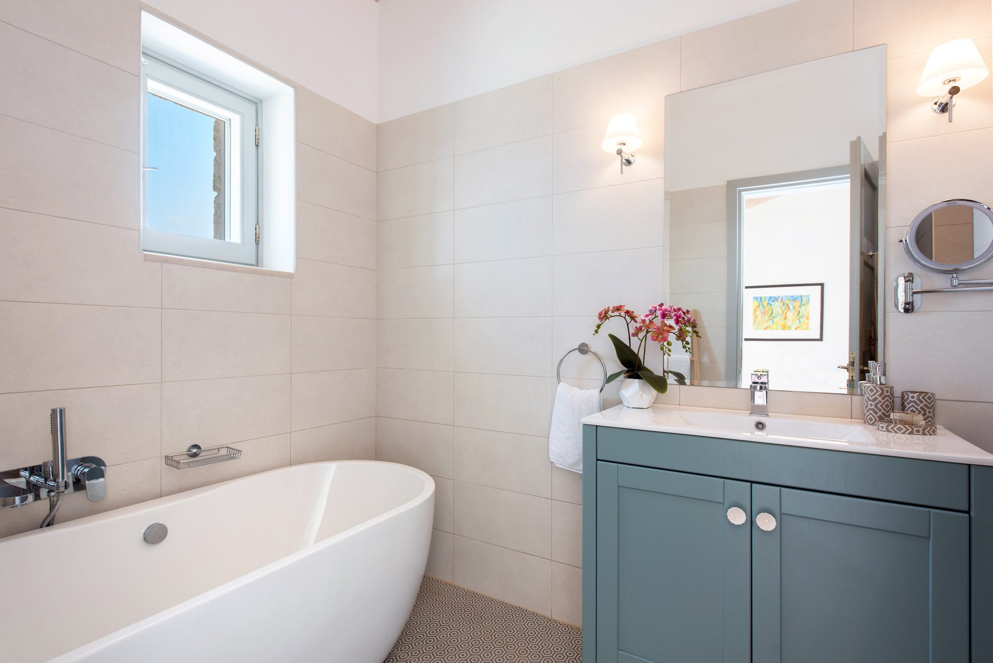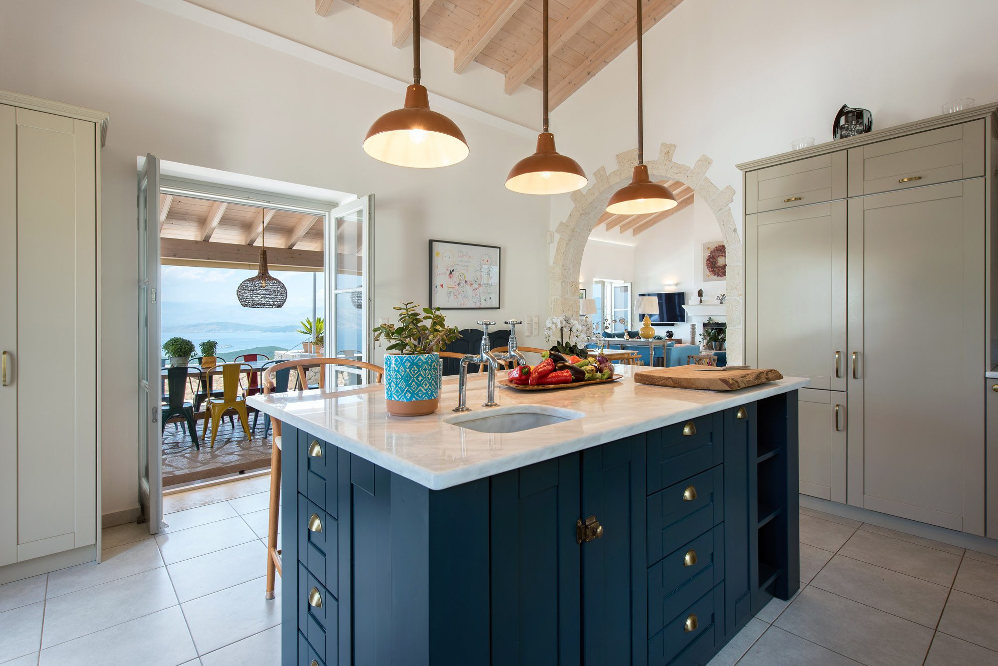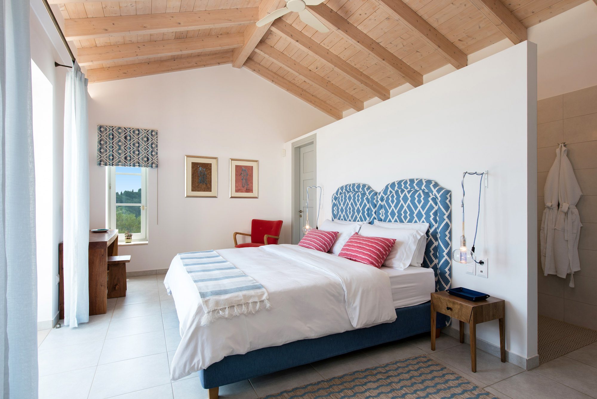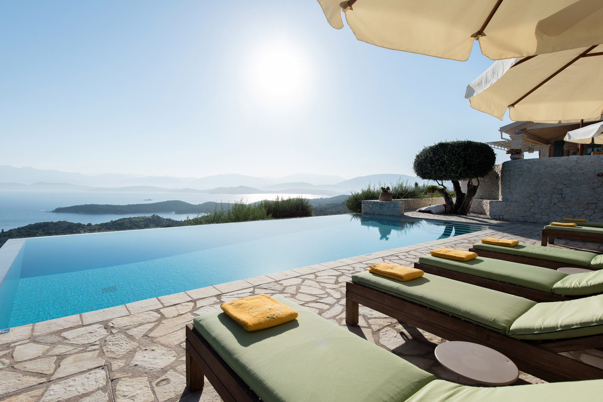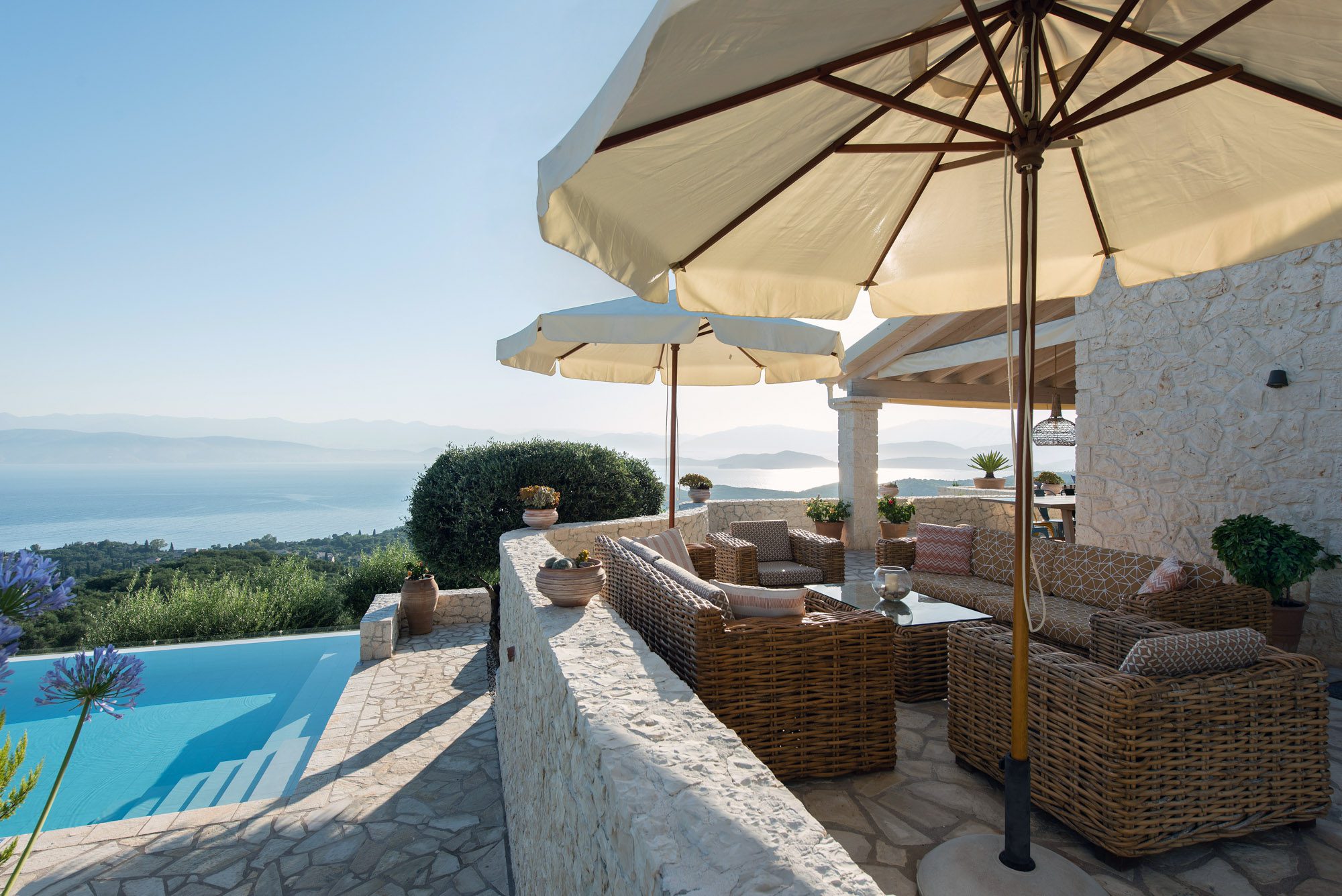 The property's pale stone walls and petrol-blue shutters sit pleasingly within the landscape; it's obvious this place has been designed with an eye for design. The views are just beautiful encompassing Avlaki Bay, Erimitis Nature Reserve and across the Corfu Strait to the mountains of Albania. There's an enchanting garden, an infinity pool and the pretty harbour town of Kassiopi, is only a short drive away. It's a fabulous home for families or groups of friends to enjoy, with lots to explore in the surrounding area.