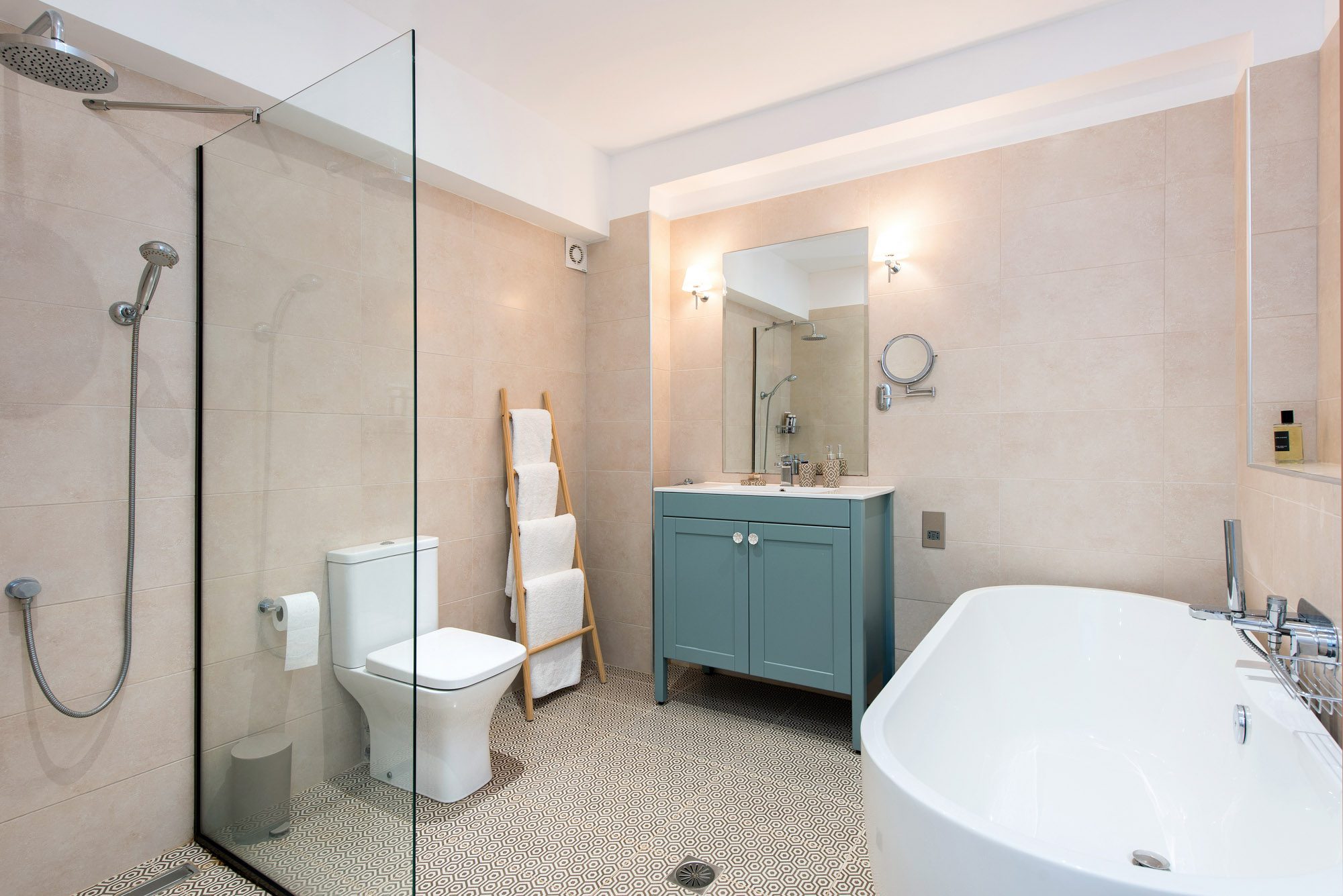 There are two well-thought-out dining areas and a super outdoor kitchen. The eye for colour and detail exhibited inside continues to the outdoor living areas, with colourful seating, plump beanbags, terracotta pots and stylish planting. The lowest level, below the lawn, is the pool area, with a tranquil infinity pool, loungers for sunbathing and a pool house for changing and showering,