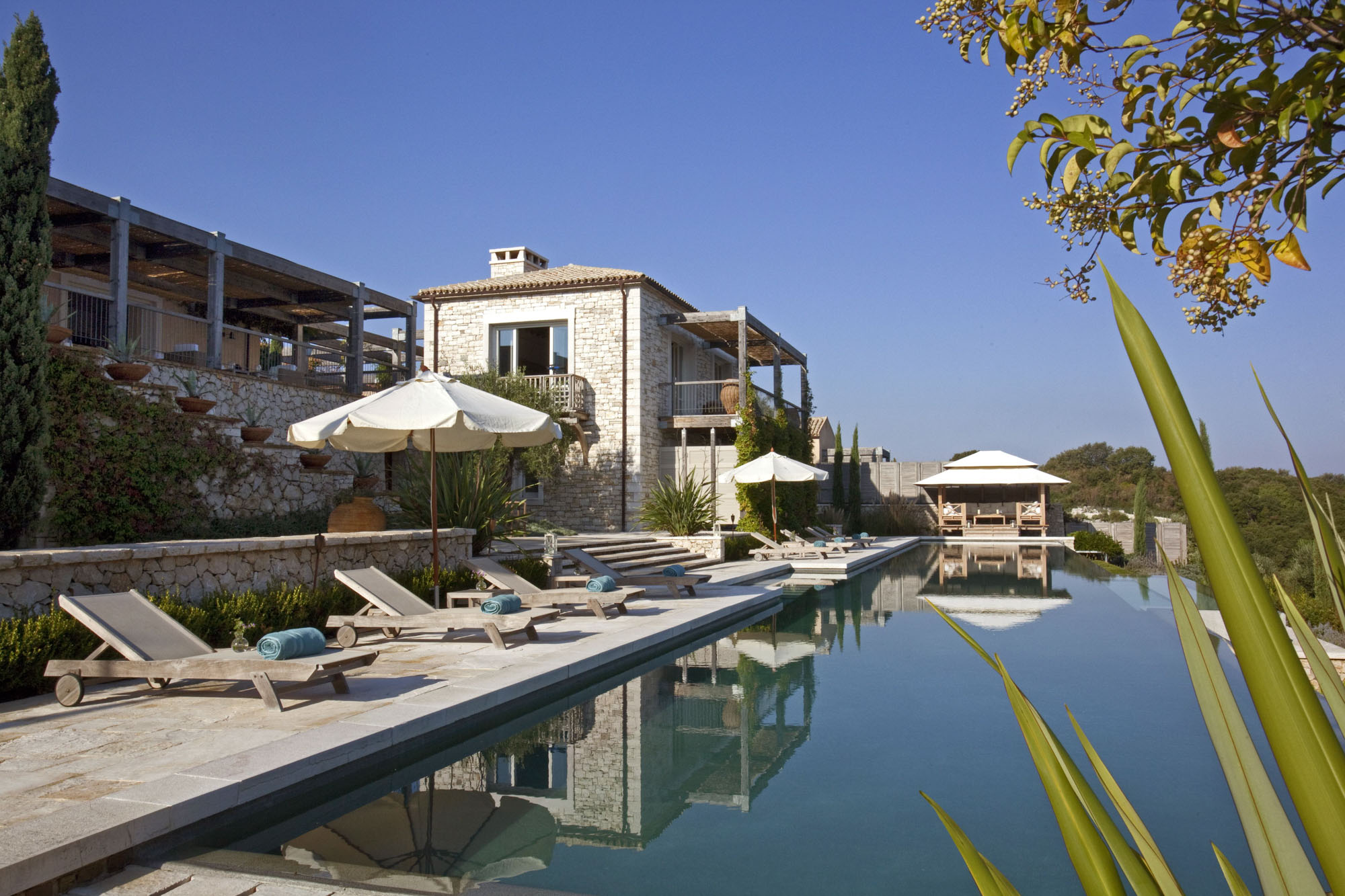 Cavo Aryatis is in a superb position on Corfu’s glorious north-east coast, a 5-minute stroll from Avlaki beach and with a short path accessing a little secluded beach. Consisting of two adjacent villas, each with a swimming pool, it’s a fantastic property for a large group, with an exceptional range of facilities on offer.