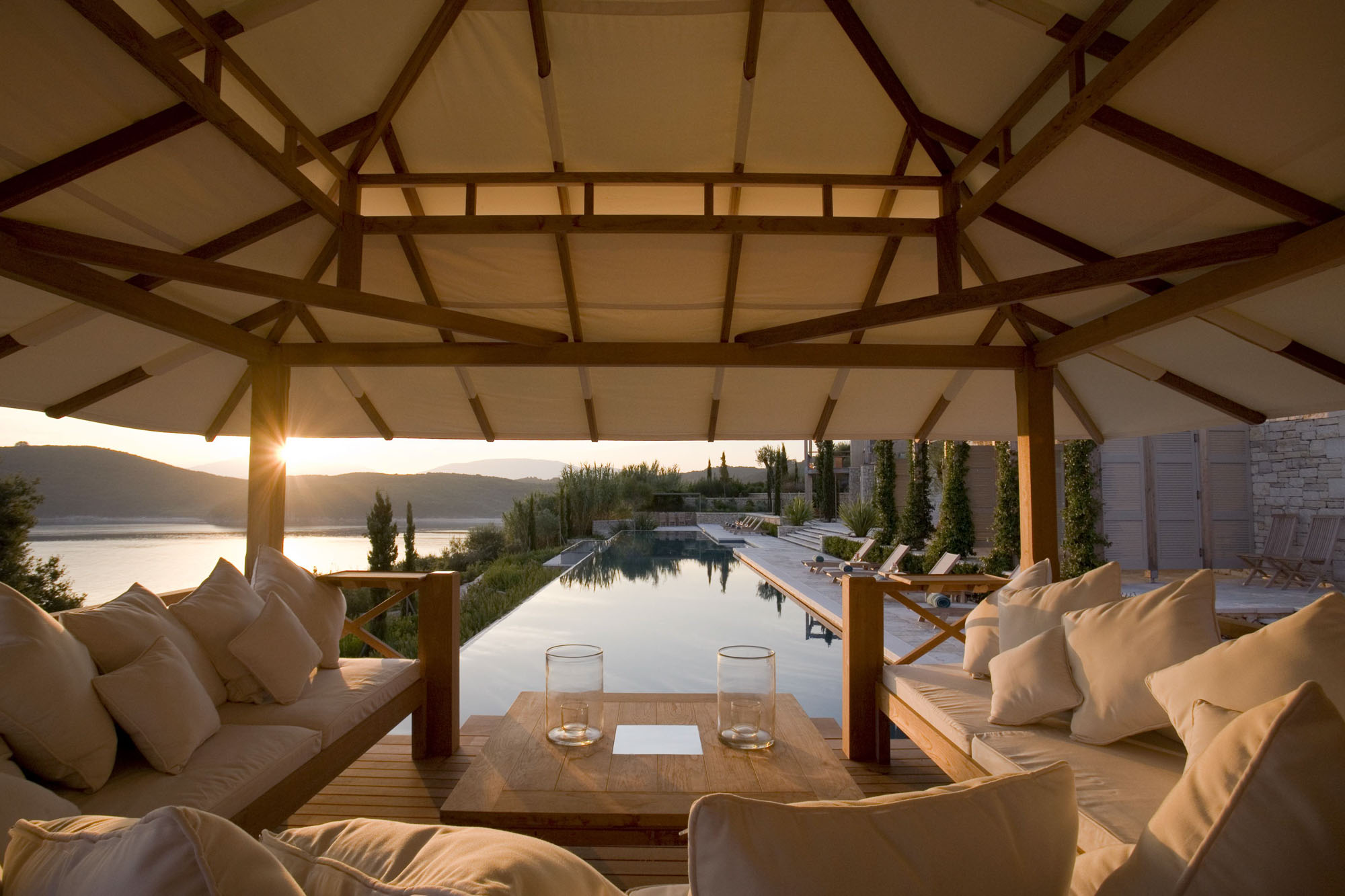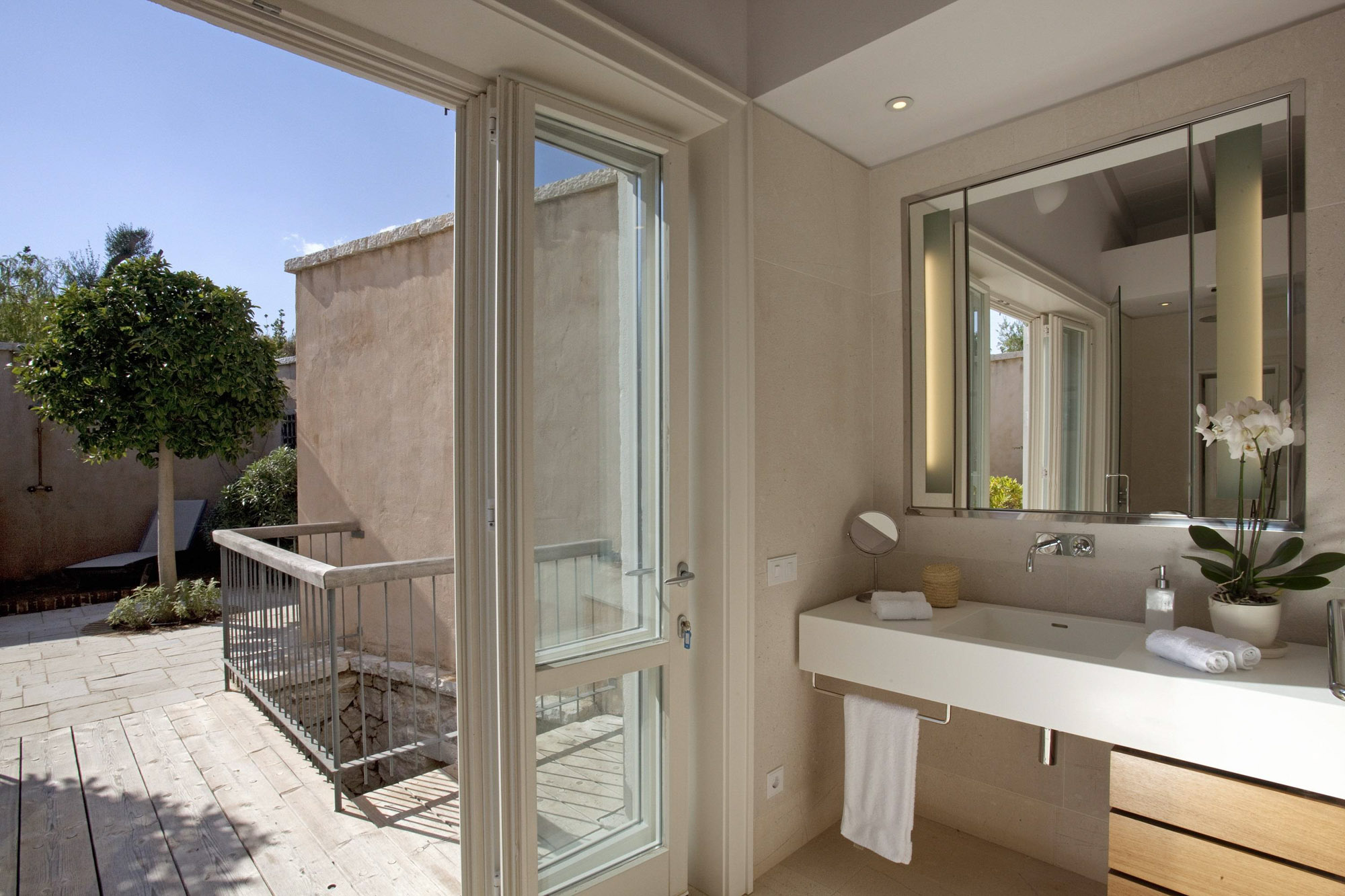 There are so many places to relax and take in the most amazing views, with lots of lovingly tended greenery to define the different spaces and give that stamp of Mediterranean style. Al fresco dining is a must with dining areas for up to 30 outside one villa, and up to 20 outside the other. There are two gleaming swimming pools, each with a 4-poster day bed alongside, and lots of sun beds, outdoor sofas and chairs. In addition to the tennis court, there’s a table tennis court and a boules area. You can walk the path to the sea in a couple of minutes and take a dip in the sea or have a boat delivered to the jetty for a day’s adventuring along the coast.