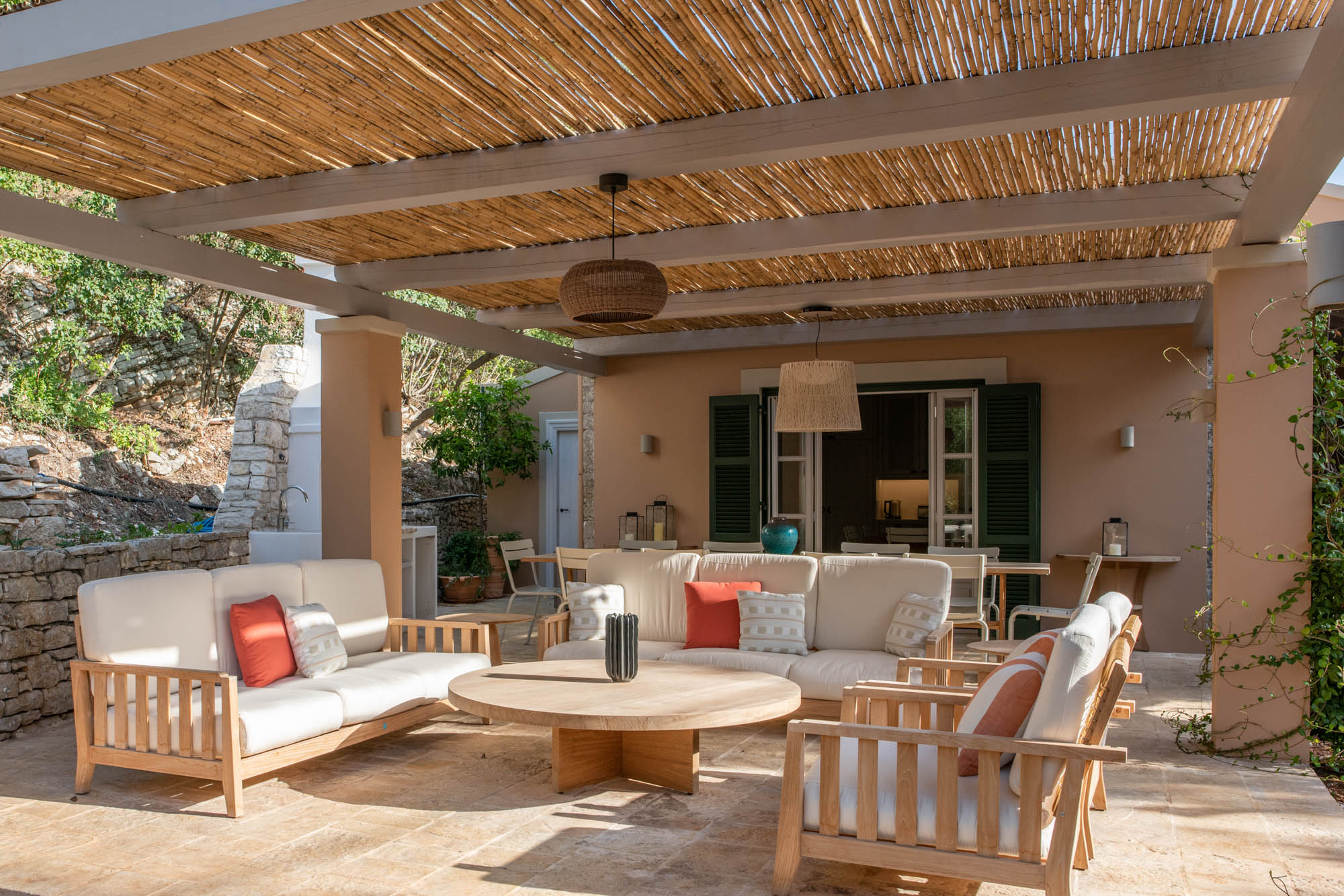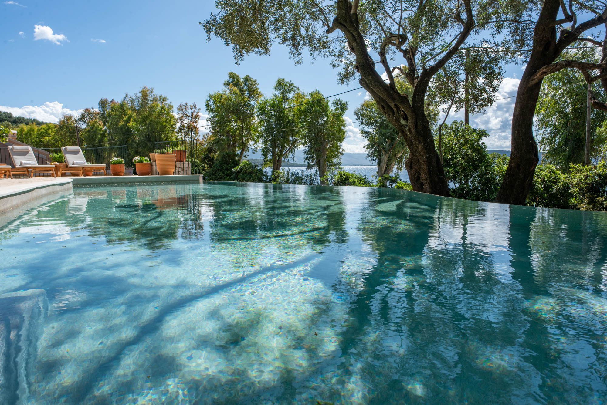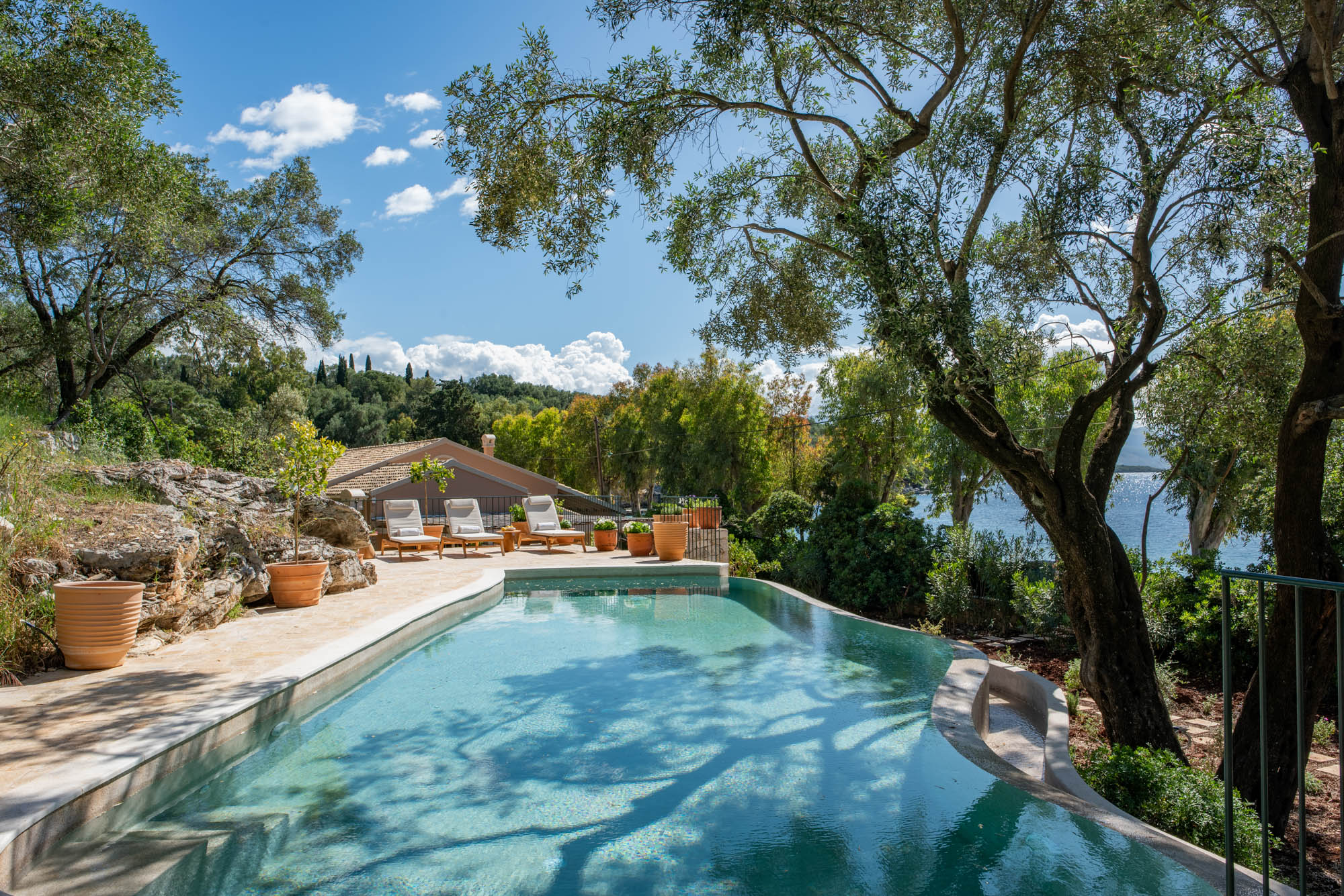 It houses an al fresco dining area and an outdoor lounge with a built-in coal BBQ. There’s plenty of outdoor space to set sunloungers in sun or shade, and this year, guests can cool off in the infinity pool, which has been raised so guests can enjoy the view.