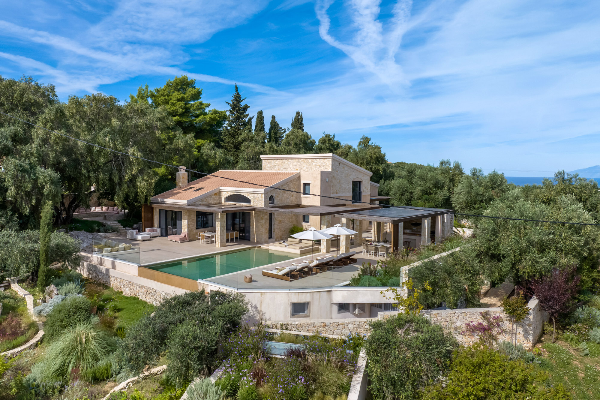 Completely redesigned in 2023, this contemporary, beautifully designed villa includes the services of a private chef and concierge, and its just a short drive to the beaches at Avlaki and Kerasia.