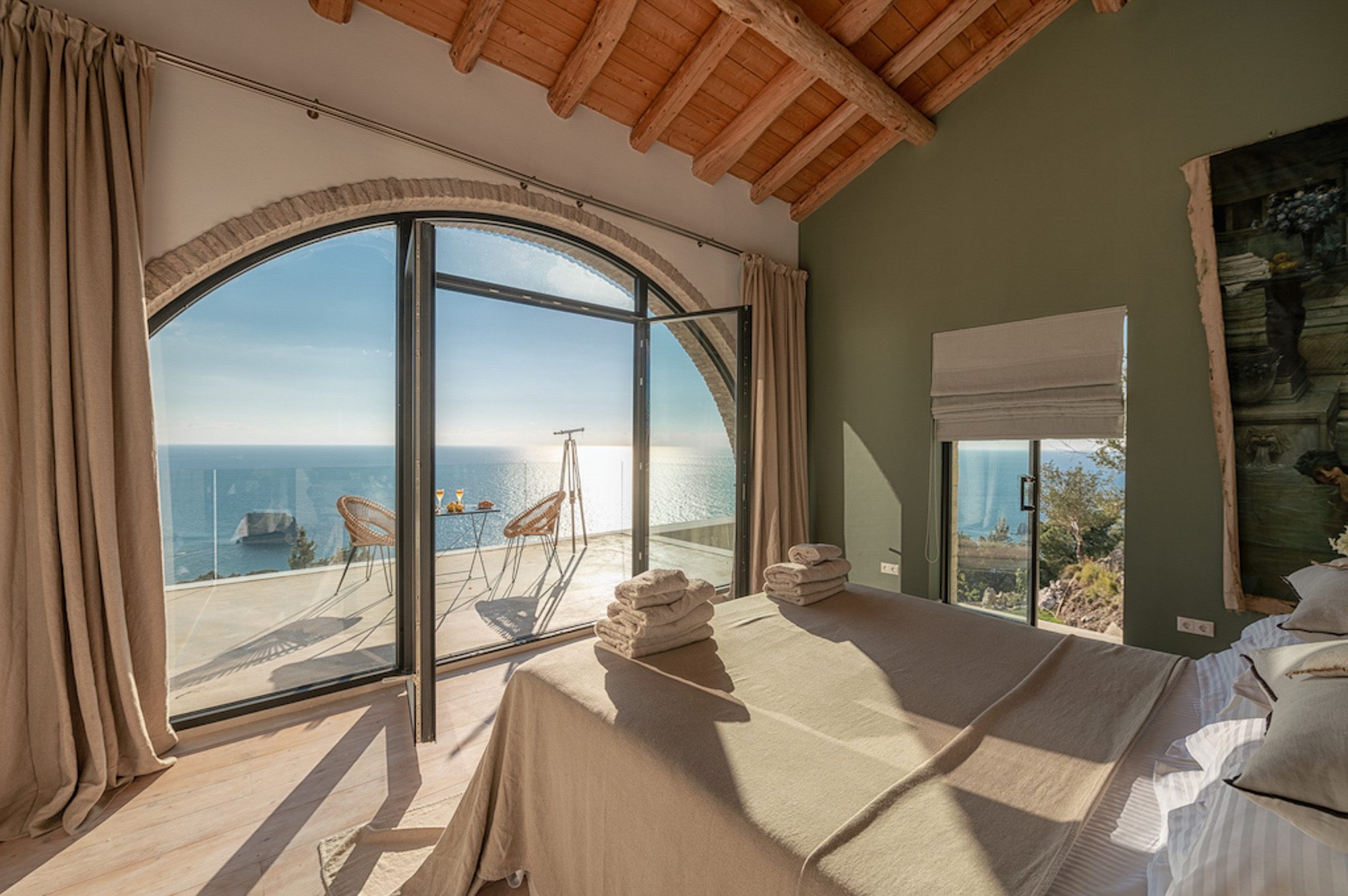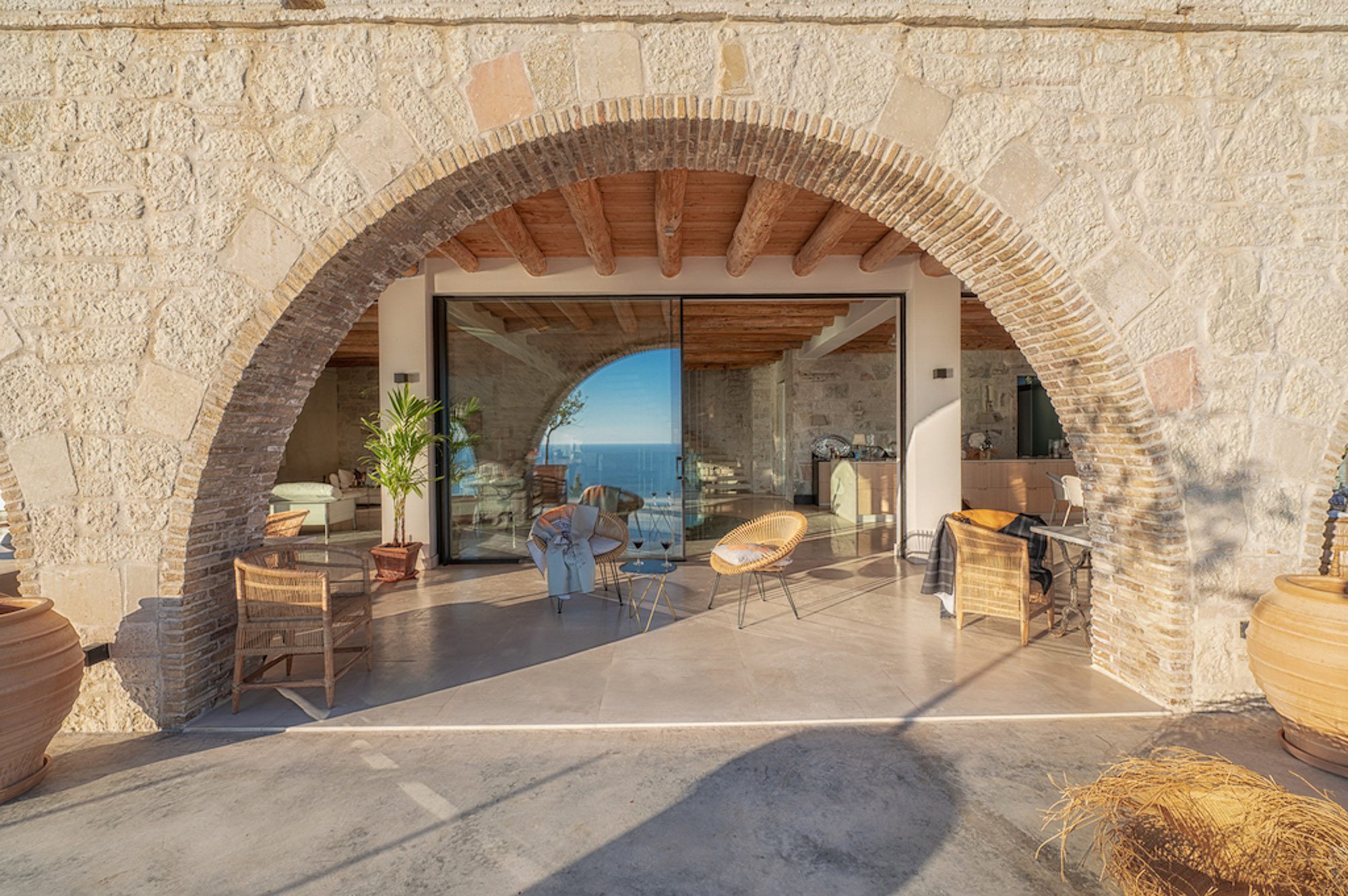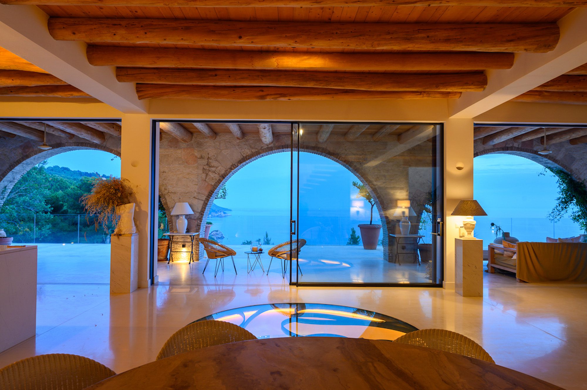 Villa Yaliskari is set within an 8-acre olive grove surrounded by green wilderness. The estate offers magical views of the sea, mountains, and the little island of Kyriadiki. The closest beach is a short walk away, and its event area makes it one of the best venues for weddings or other special celebrations in Corfu.