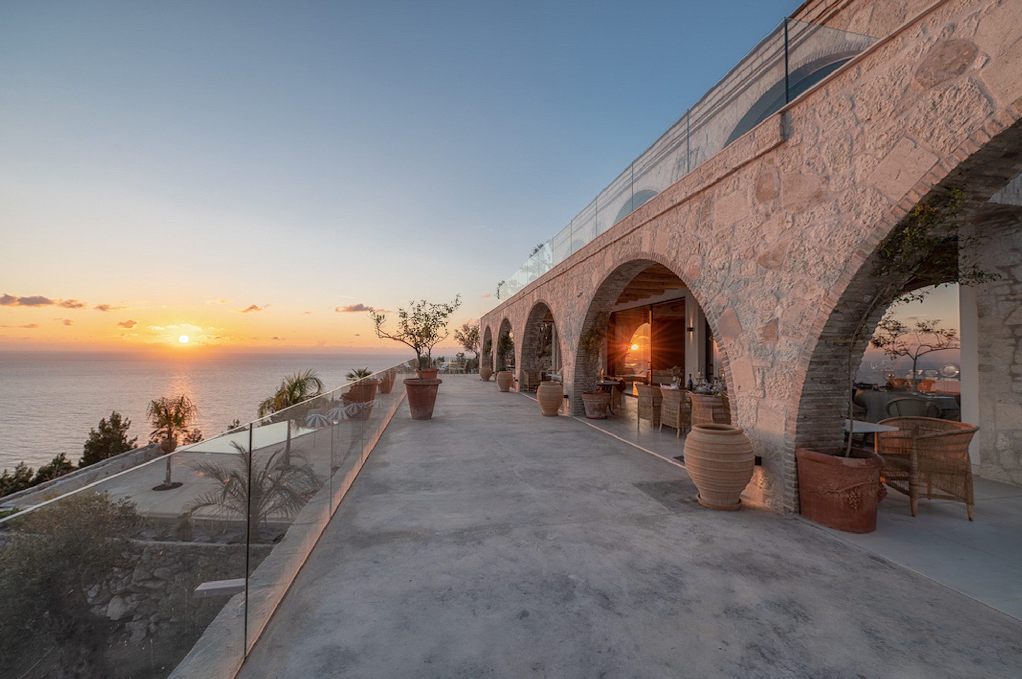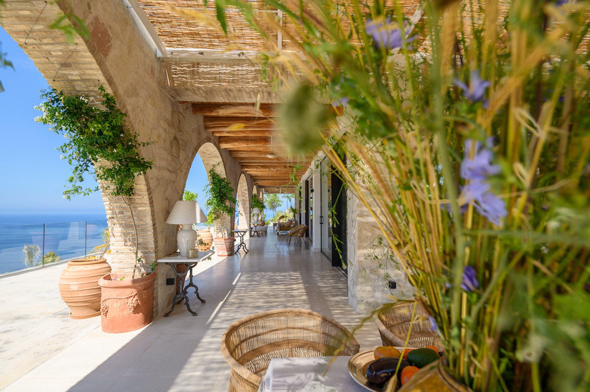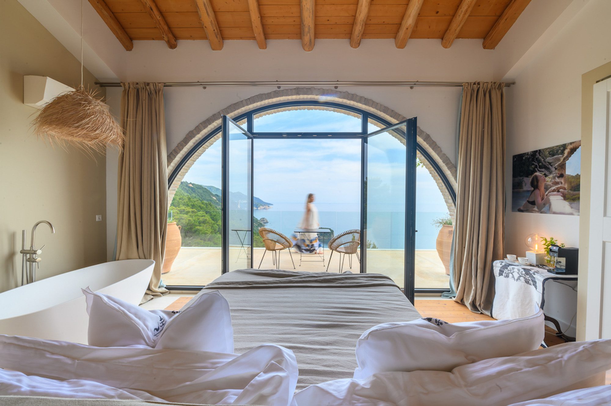 Villa Yaliskari is set within an 8-acre olive grove surrounded by green wilderness. The estate offers magical views of the sea, mountains, and the little island of Kyriadiki. The closest beach is a short walk away, and its event area makes it one of the best venues for weddings or other special celebrations in Corfu.