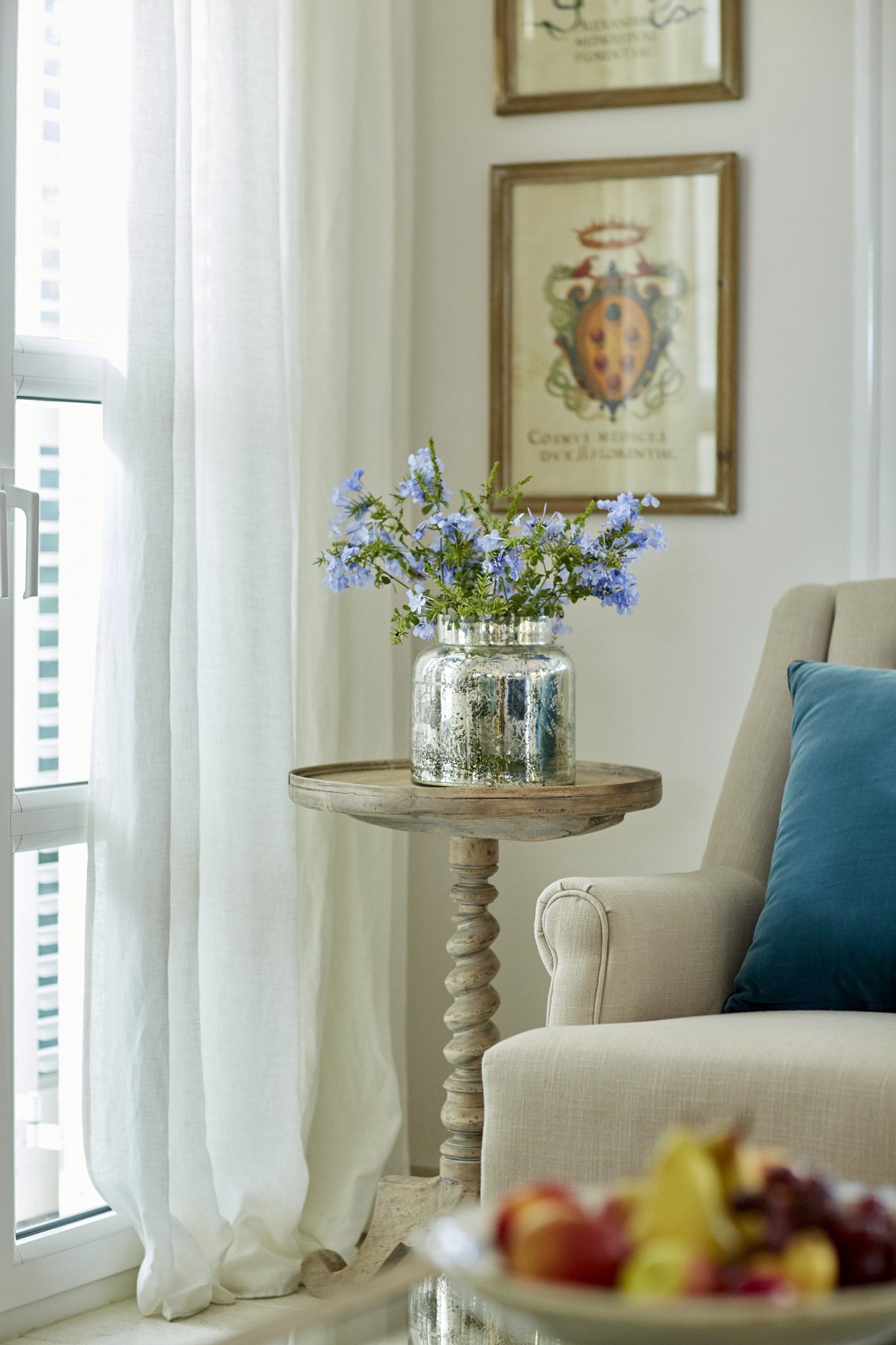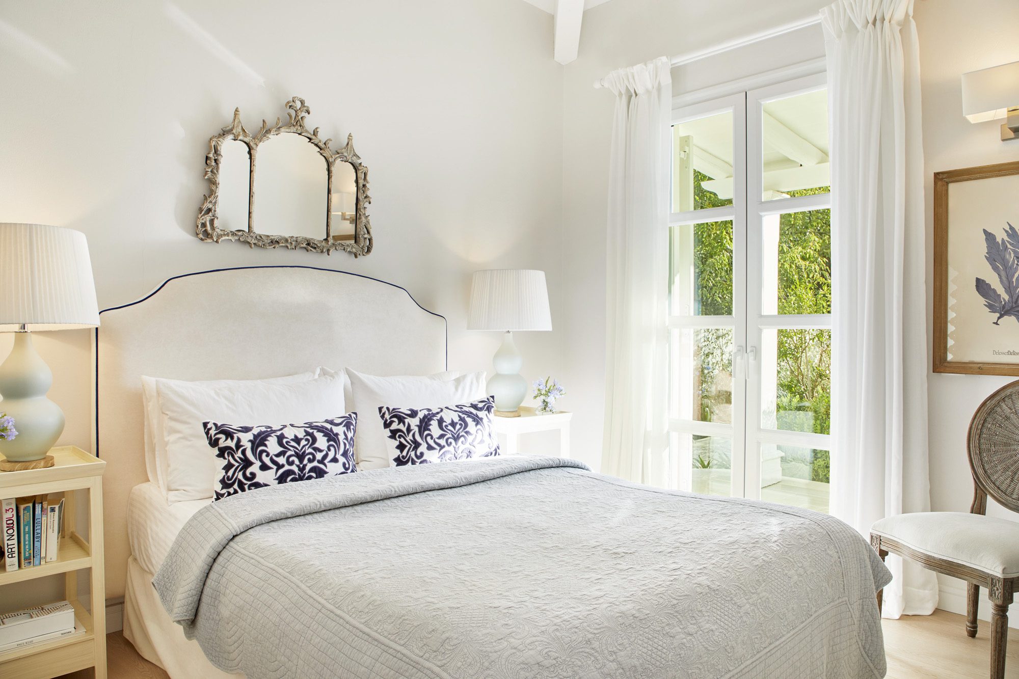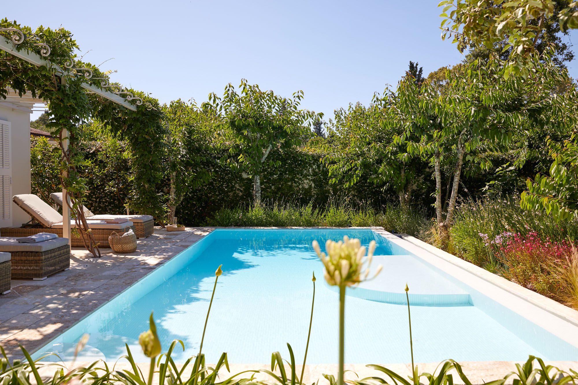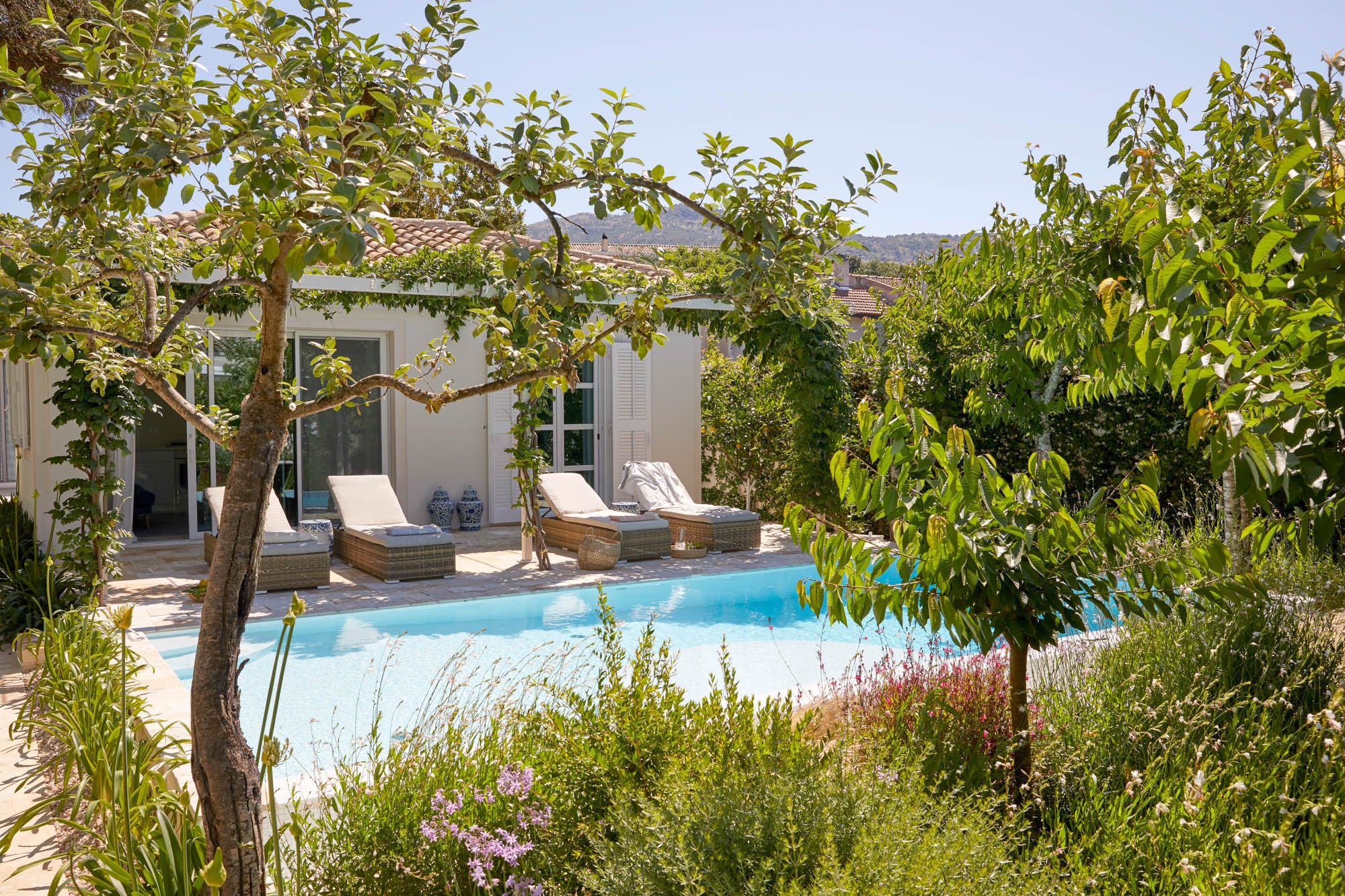 The comfortable, airy interiors have a classic, coastal style, beautifully decorated predominantly in blues and whites with exposed, bleached wood ceilings. The larger house has a chic, white sitting/dining room with French doors opening to a dreamy shaded terrace and steps to the gardens. The second cottage also has a kitchen and living room area, whilst the third has a good-sized ensuite bedroom. All feel nicely screened, nestled within the well-established gardens.