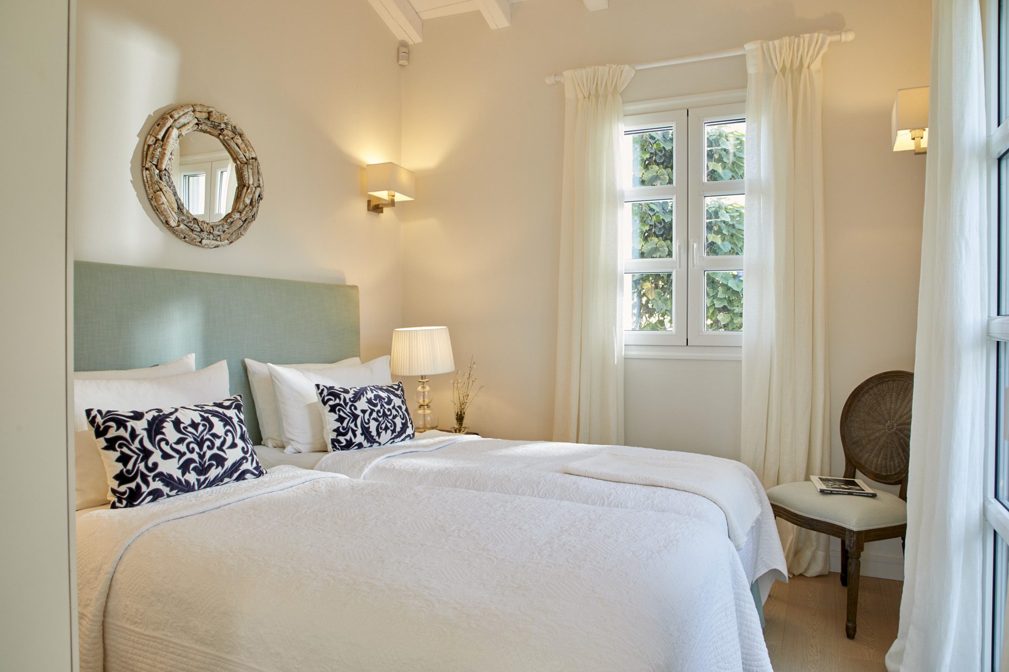 It’s centred around a charming harbour and has a range of facilities, including traditional tavernas, seafood restaurants, cafes, bars, little boutique shops, bakeries and supermarkets. Boat hire and organised boat trips are available. You can get to Avlaki beach in 15 minutes on foot or about 3 minutes by car, with two tavernas to choose from. The pretty fishing village of San Stephano is a 10-minute drive away and has some nice waterfront tavernas, several bars, and a boat hire.