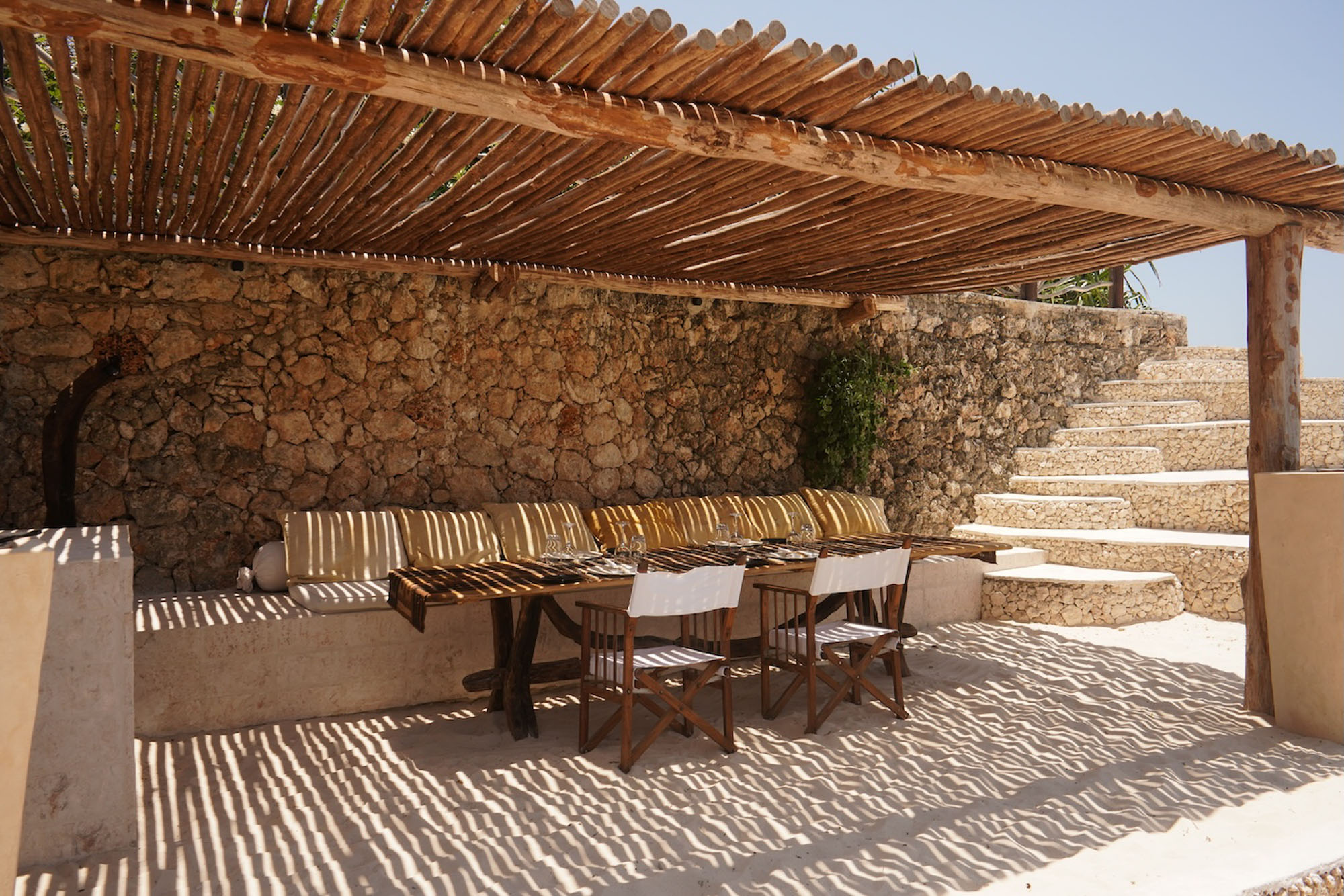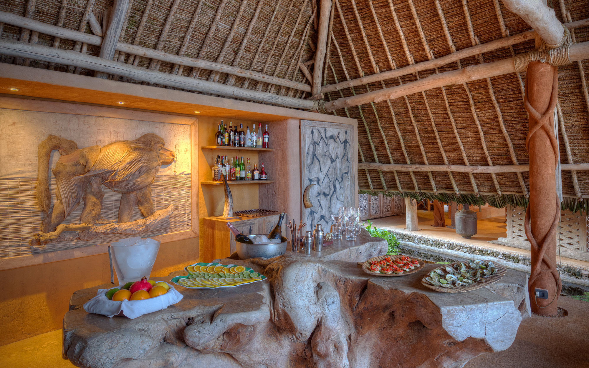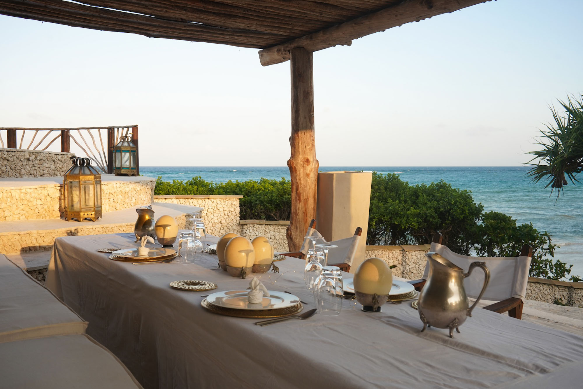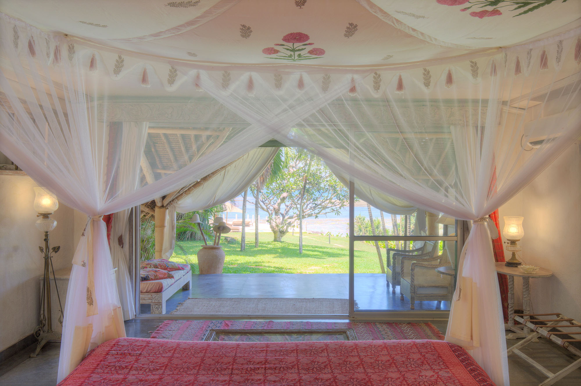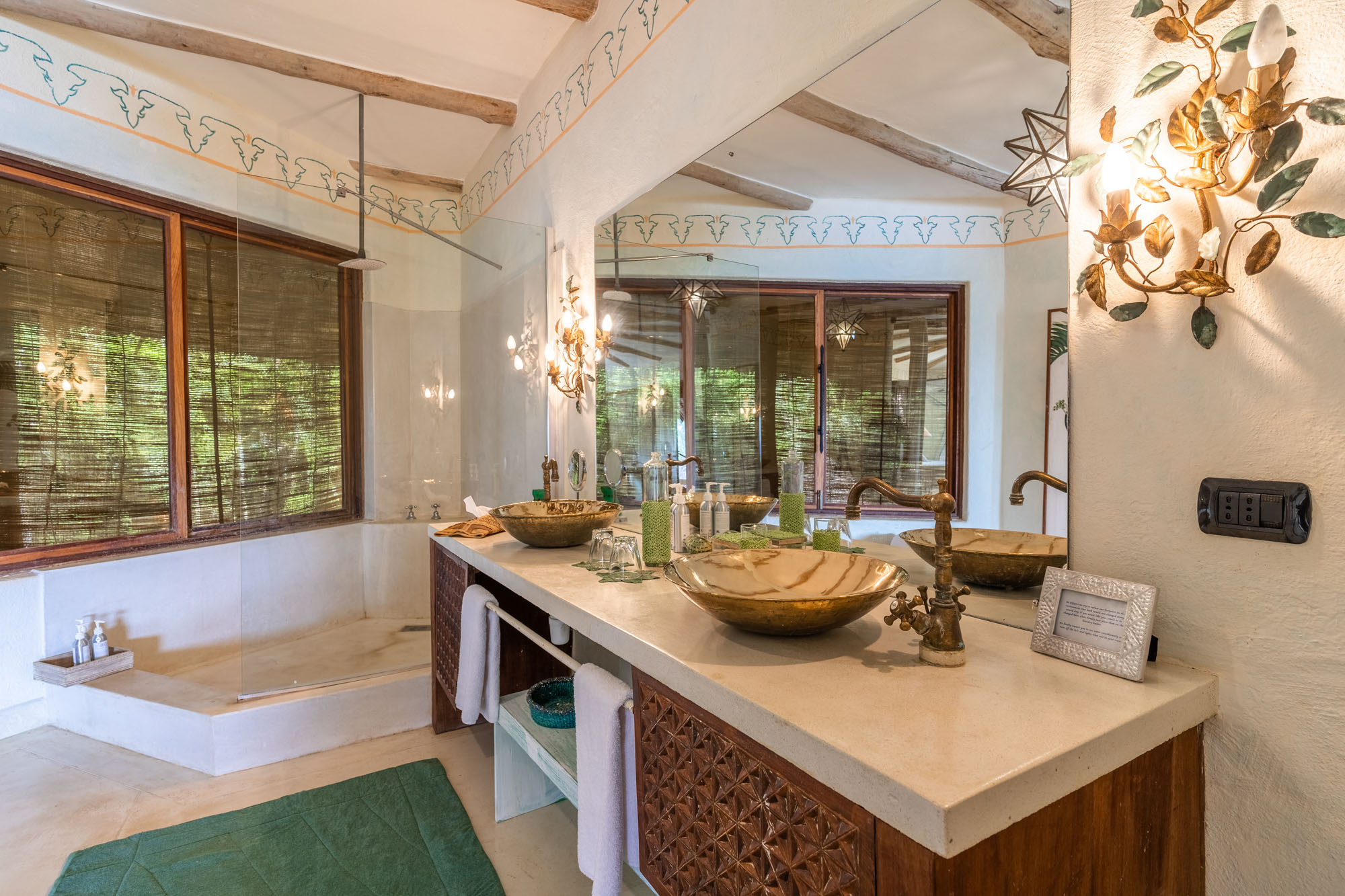 The expansive main veranda, beneath a grand Makuti roof, serves as the heart of the villa. Inside, the villa boasts okra flooring, wooden beams, and carefully selected artifacts that enhance its exceptional design. The living areas are open and inviting, with ample seating for socializing and enjoying the ocean views. The four spacious bedrooms, each with its own distinct interior style, offer both privacy and charm. All rooms are air-conditioned and equipped with mosquito nets, ensuring a comfortable stay.