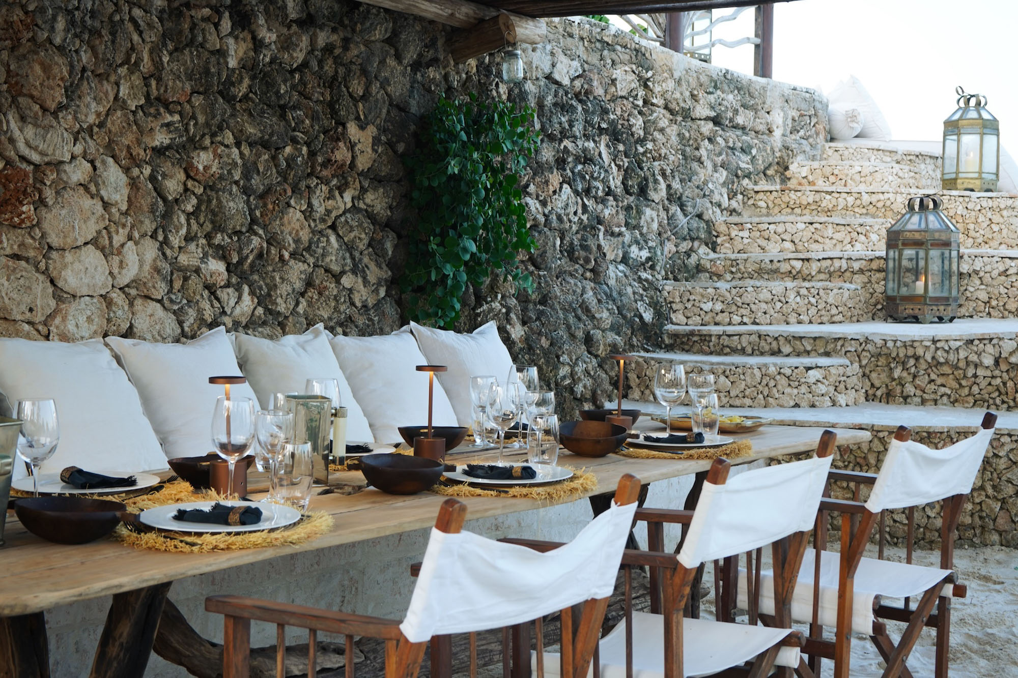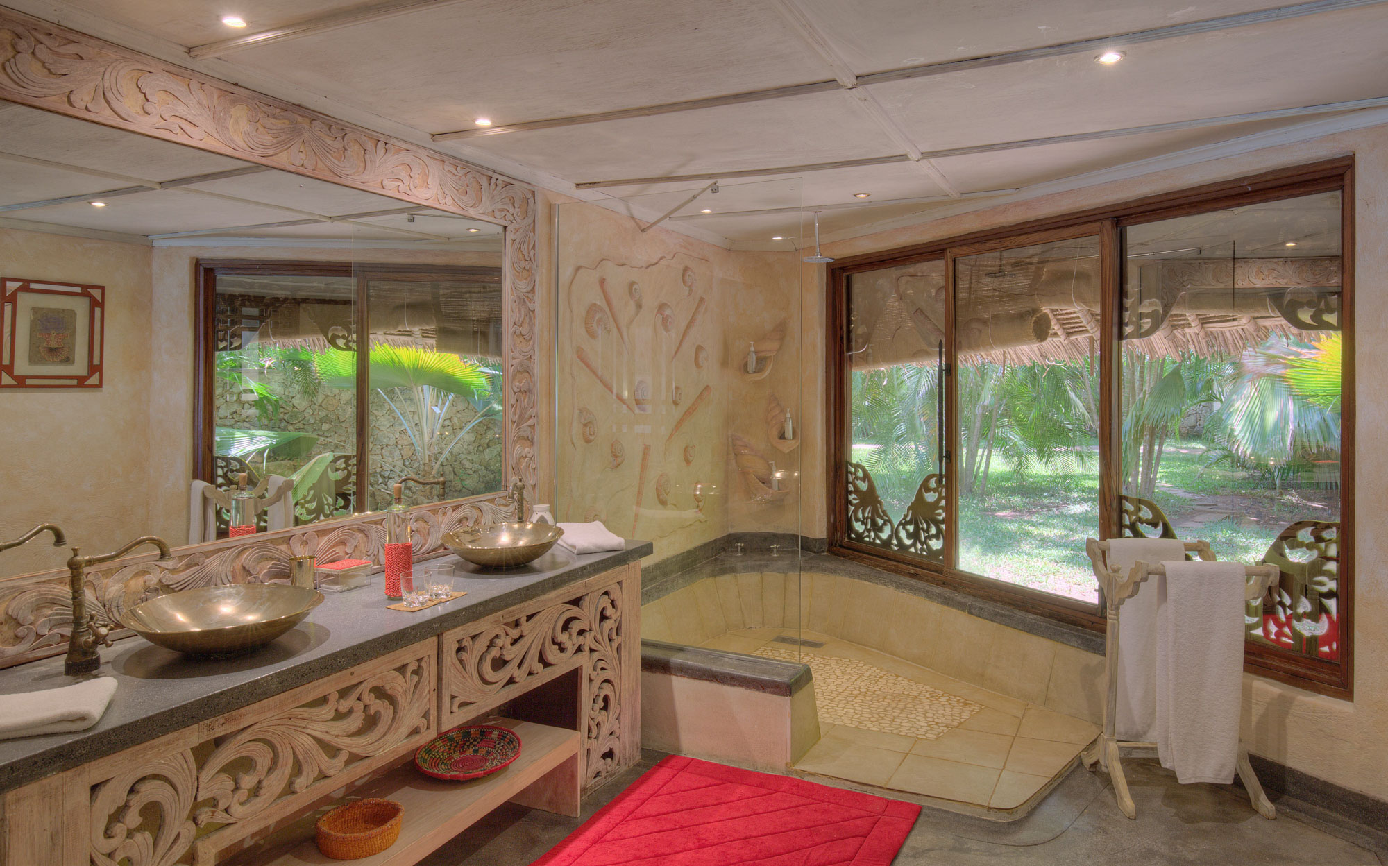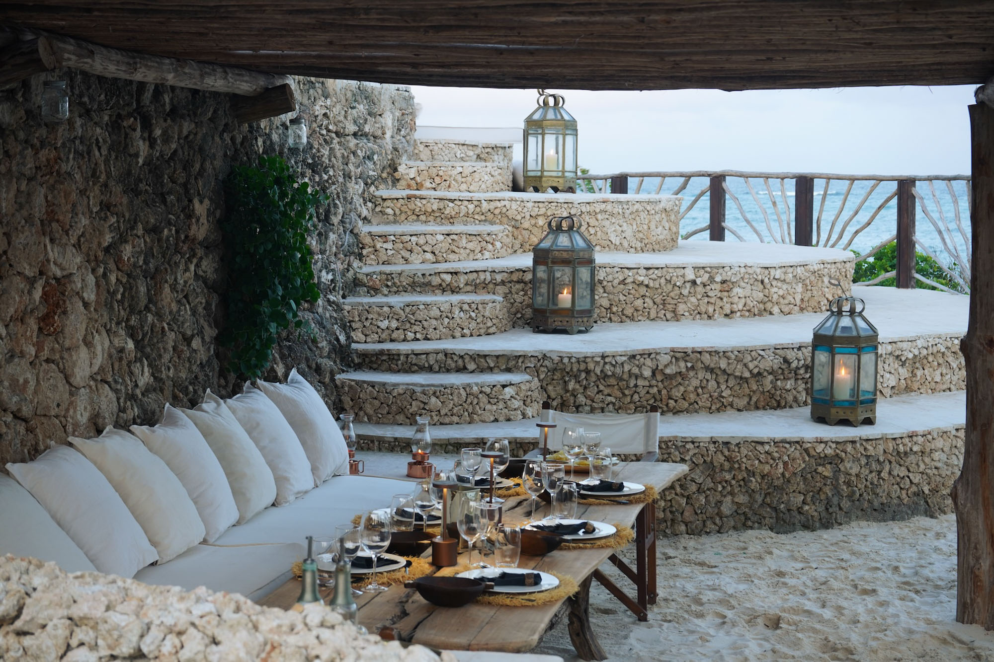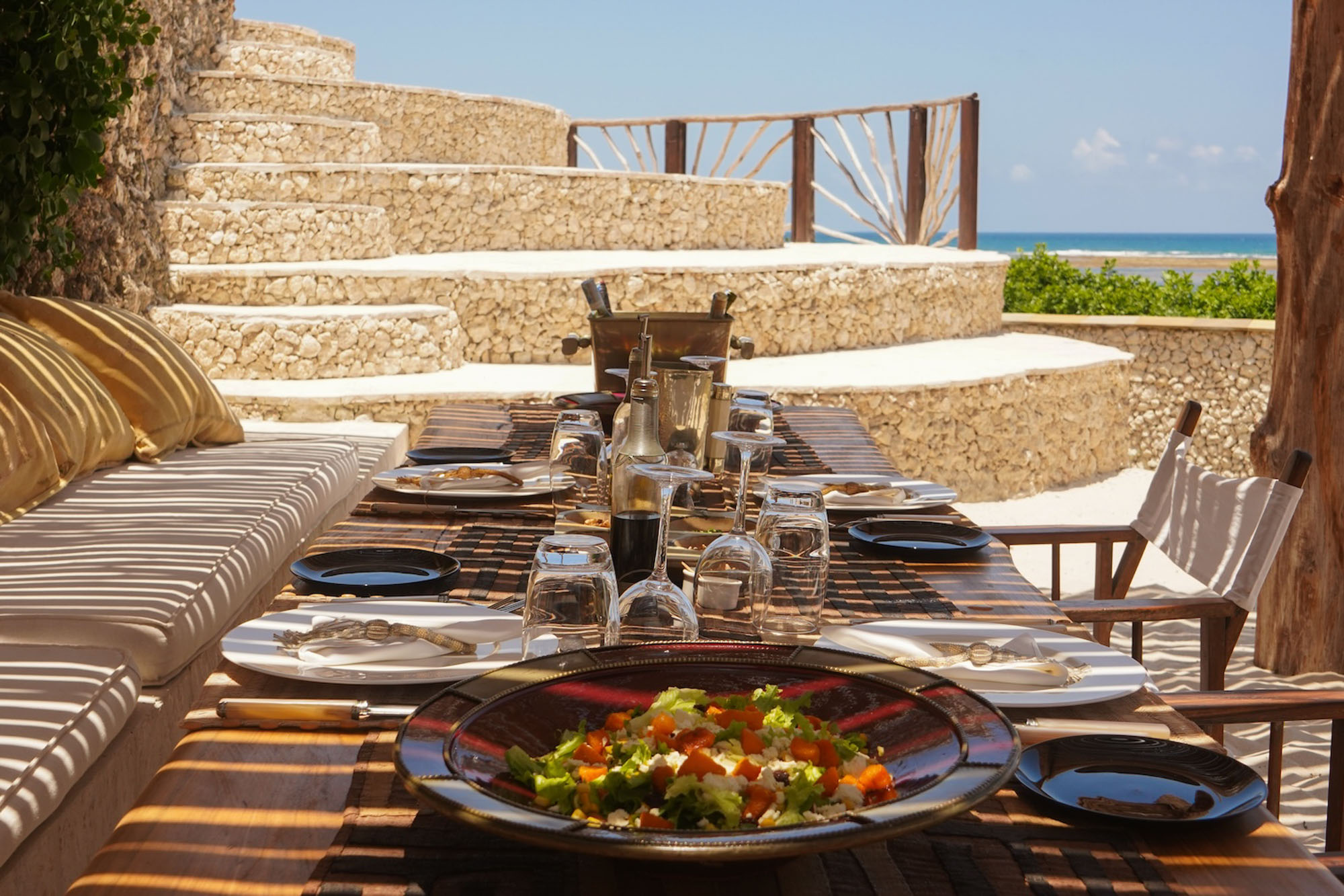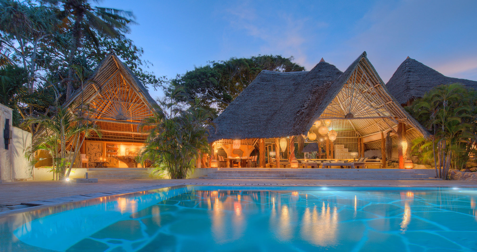The expansive main veranda, beneath a grand Makuti roof, serves as the heart of the villa. Inside, the villa boasts okra flooring, wooden beams, and carefully selected artifacts that enhance its exceptional design. The living areas are open and inviting, with ample seating for socializing and enjoying the ocean views. The four spacious bedrooms, each with its own distinct interior style, offer both privacy and charm. All rooms are air-conditioned and equipped with mosquito nets, ensuring a comfortable stay.