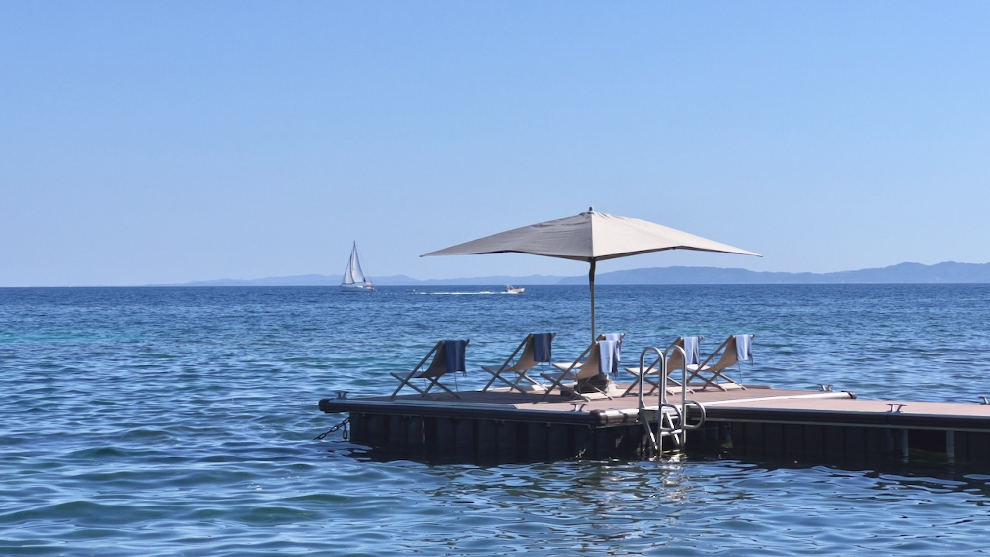 It's the most picturesque setting for summer meals, relaxation and a cool martini, lit by a backdrop of panoramic sea views. With five al fresco dining areas, a 200 square metre swimming pool, a pool house and direct access to the sea below, it is a winning combination for a convivial gathering.