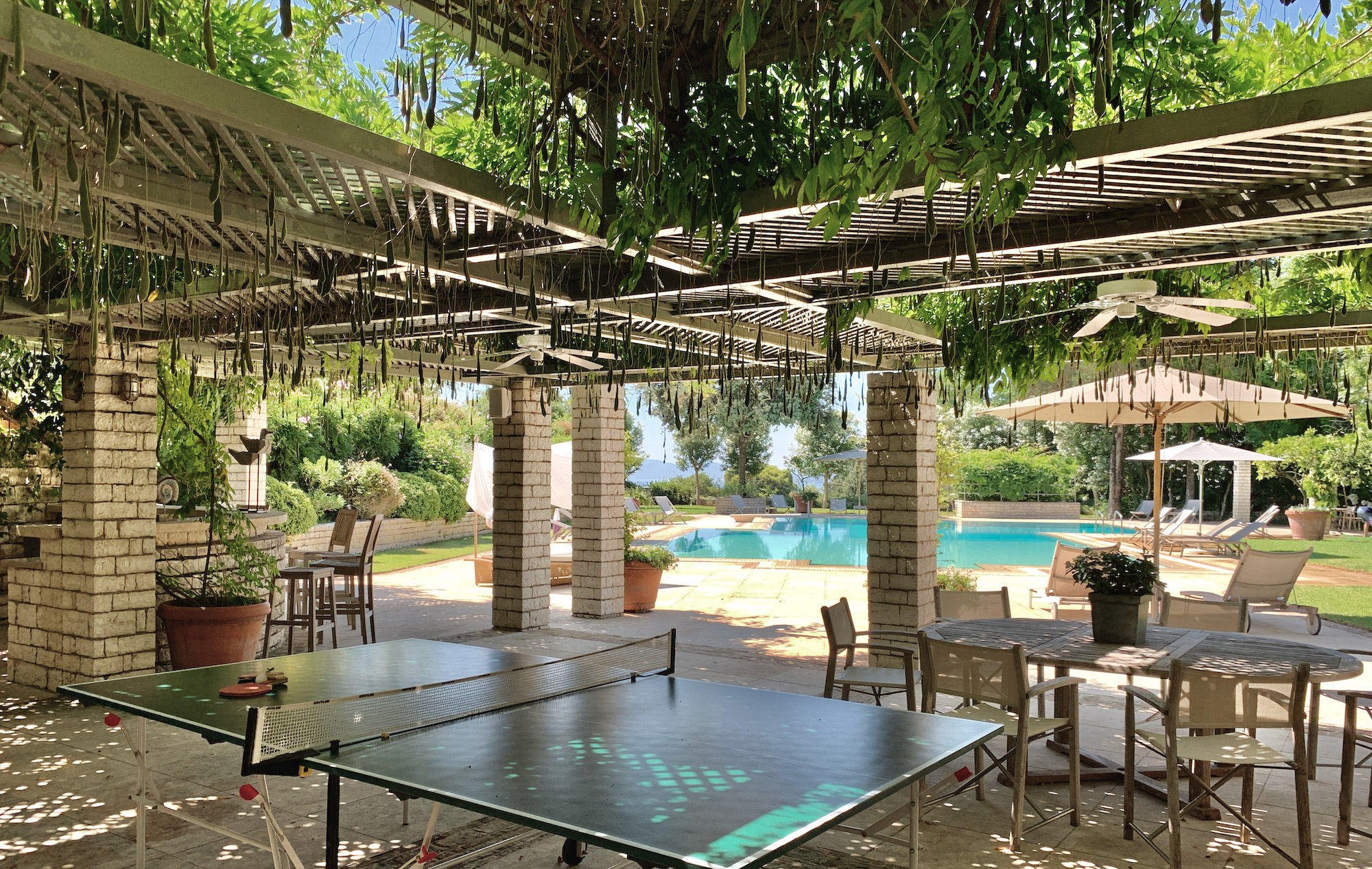 Wide, comfortable living areas and nine bedrooms spread across the main house, guest house, and studio, as well as a gym, chapel, and a staff flat, give everyone enough comfort and space for both privacy and entertaining.
