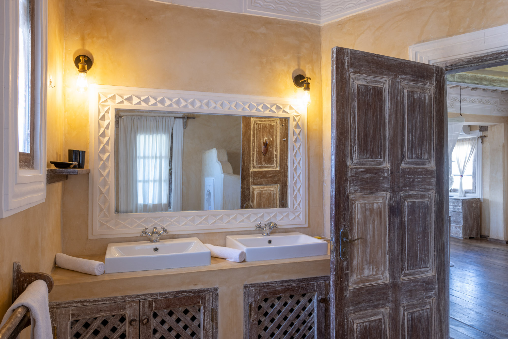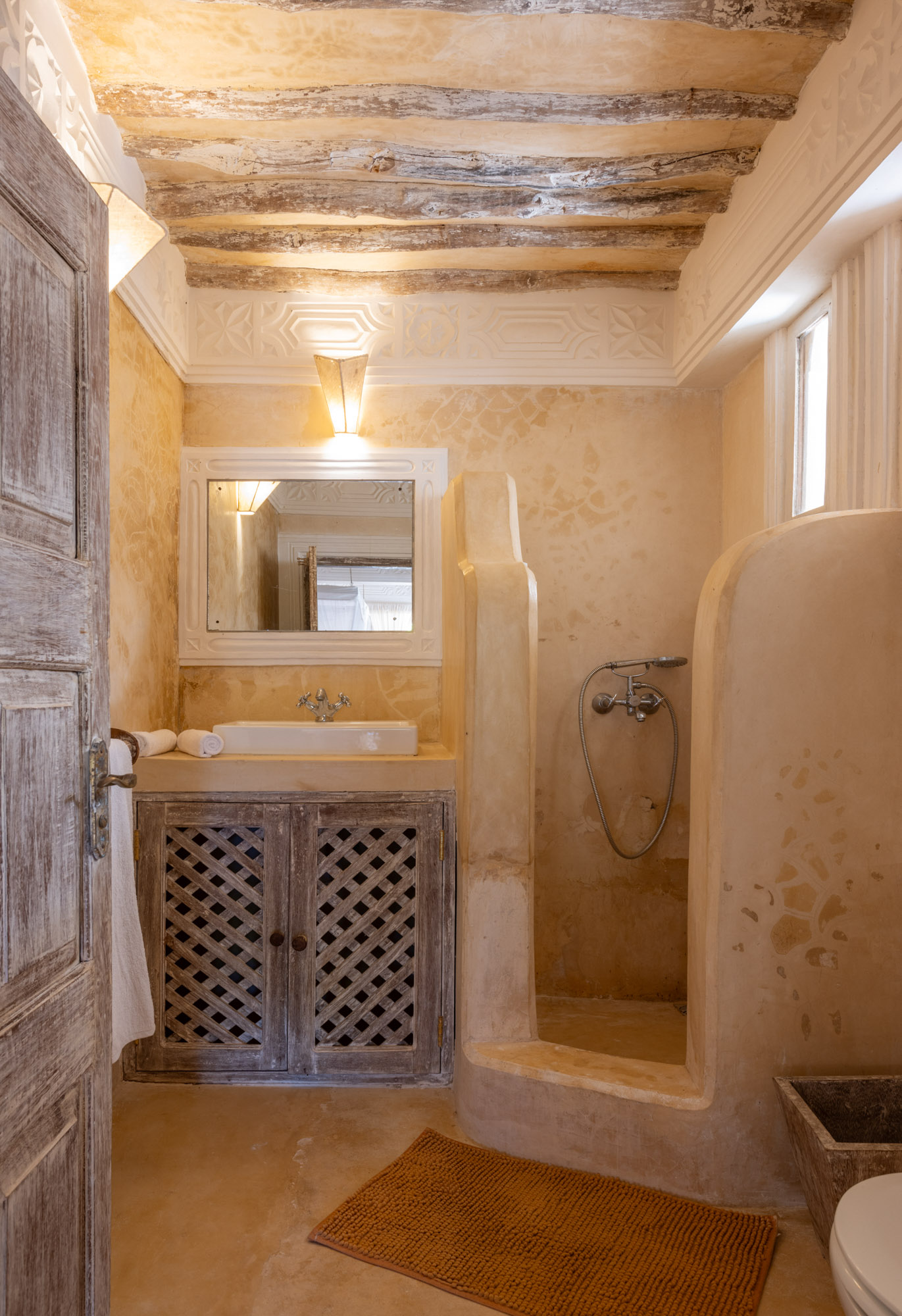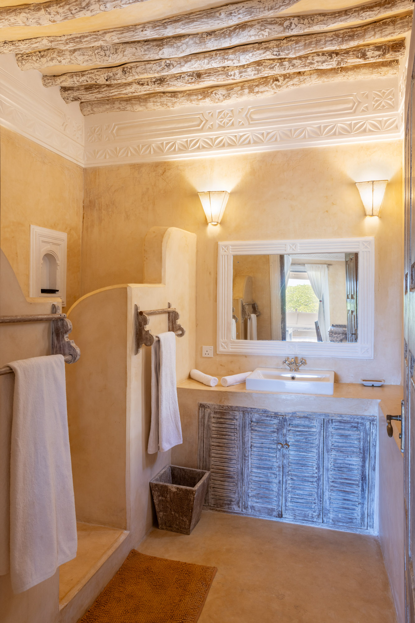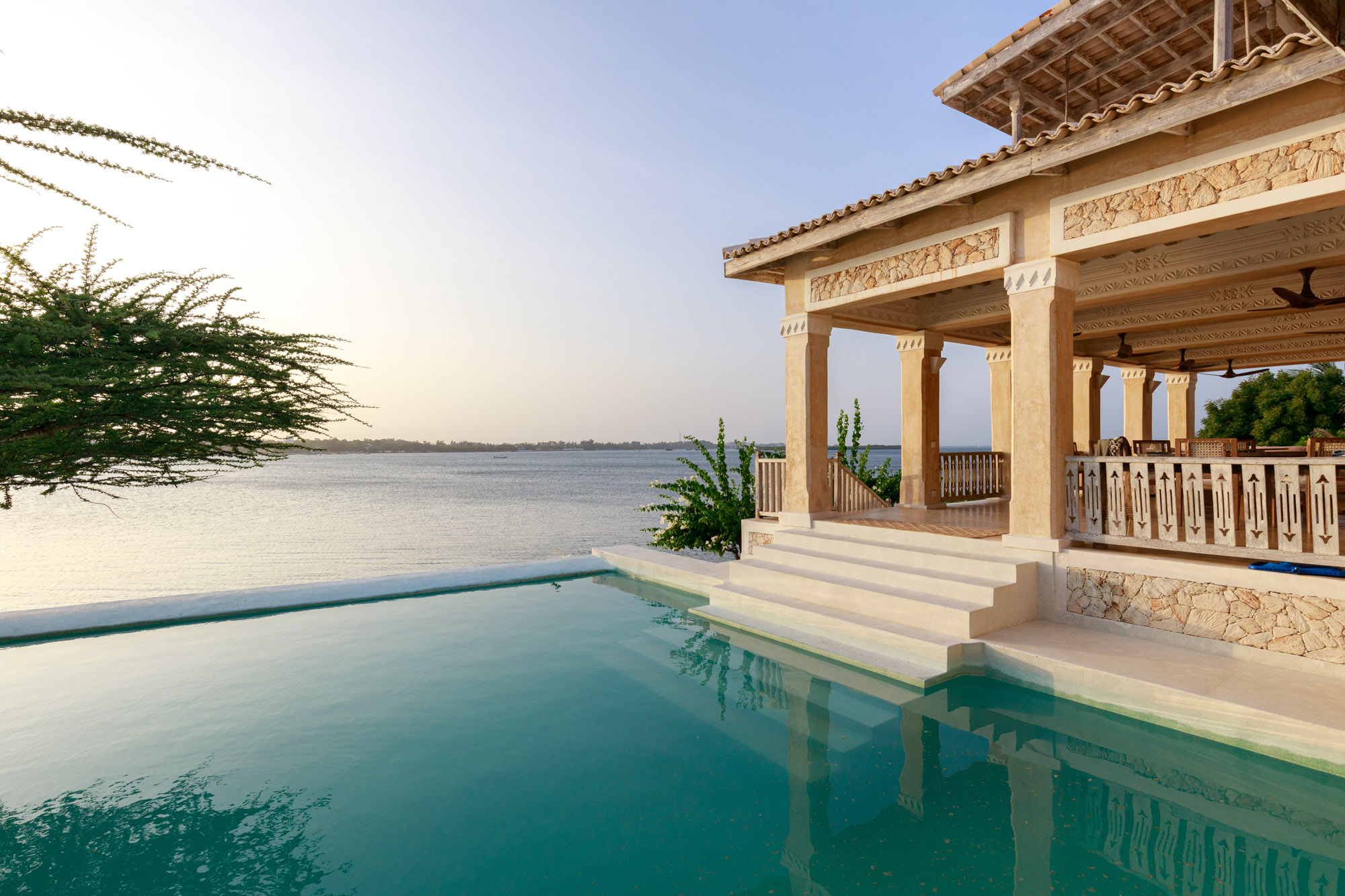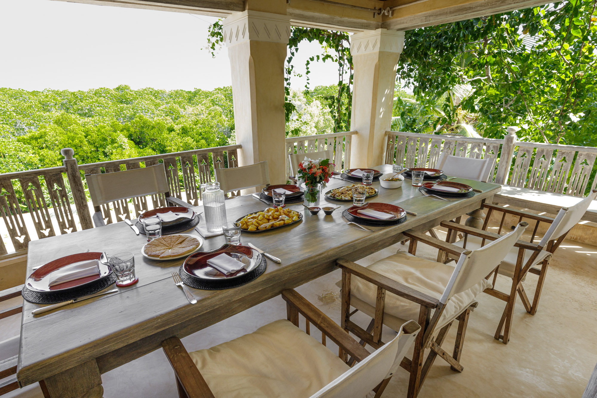 The swimming pool, framed by beachside pavilions, offers a refreshing spot for sun-soaked afternoons. Private terraces with daybeds and seating areas invite you to relax while taking in views of the Shela skyline or tranquil mangroves. A shaded terrace on the mangrove side serves as an intimate dining space for eight, ideal for breakfast as the sun rises. Every outdoor area is designed to immerse you in the natural beauty while ensuring moments of seclusion.