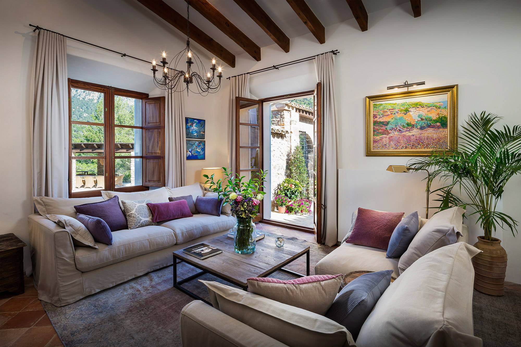 Set in the hills, surrounded by gardens, and views both of the mountains and the Mediterranean sea, it's very peaceful with its own gated driveway and a great place for family or group holiday. The charming town of Banyalbufar, picturesque Esporles and Son Bunyola beach are all within a half hour's drive.
