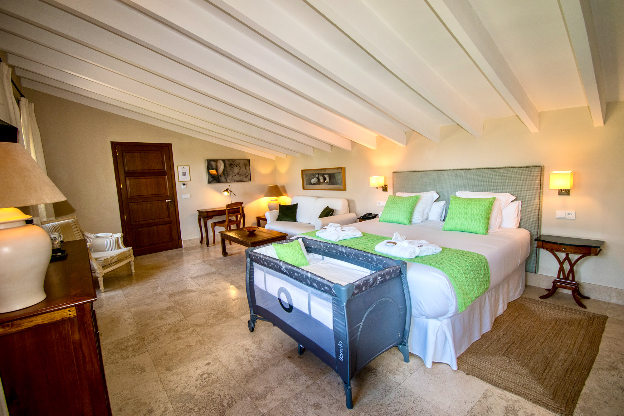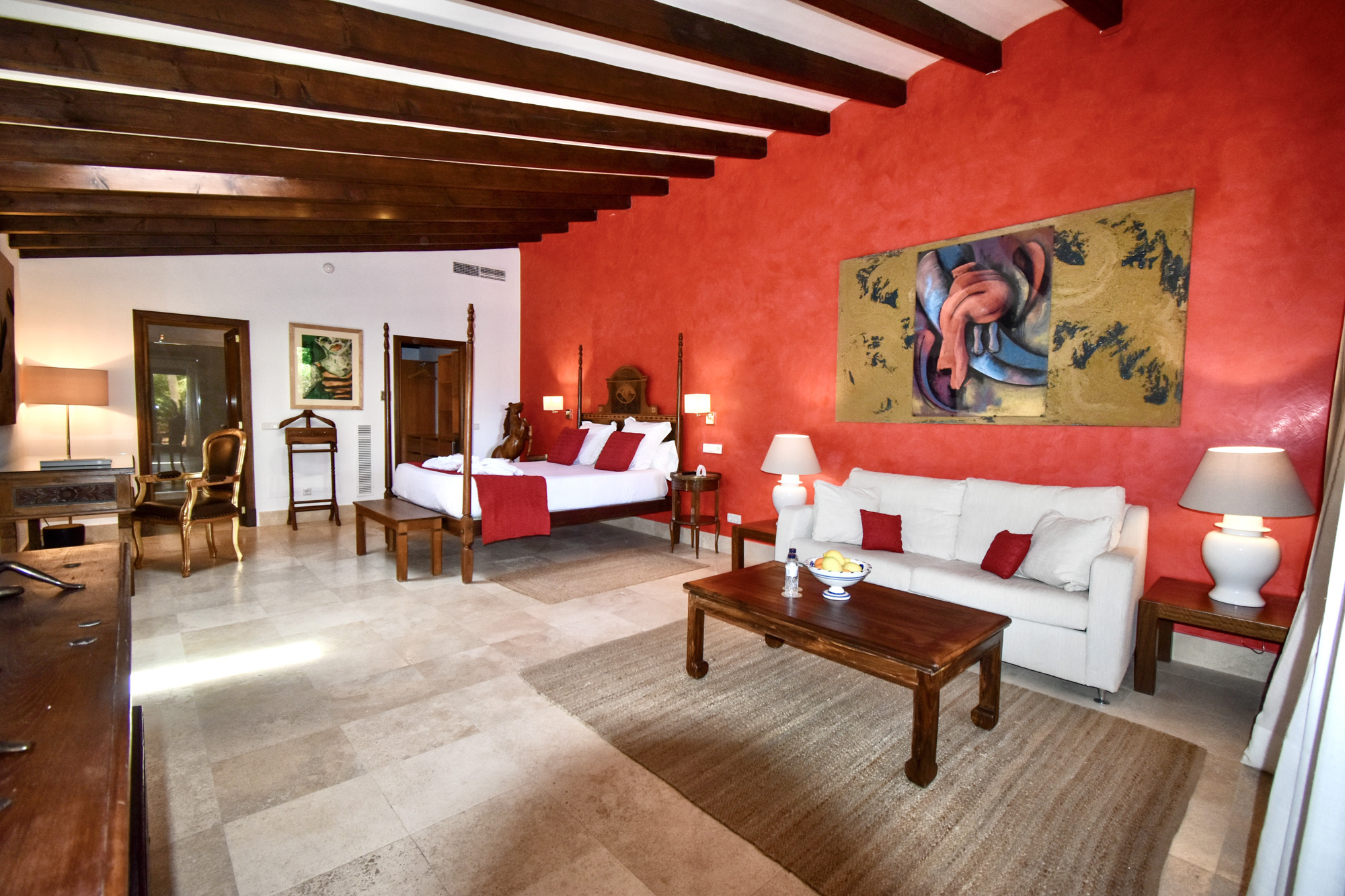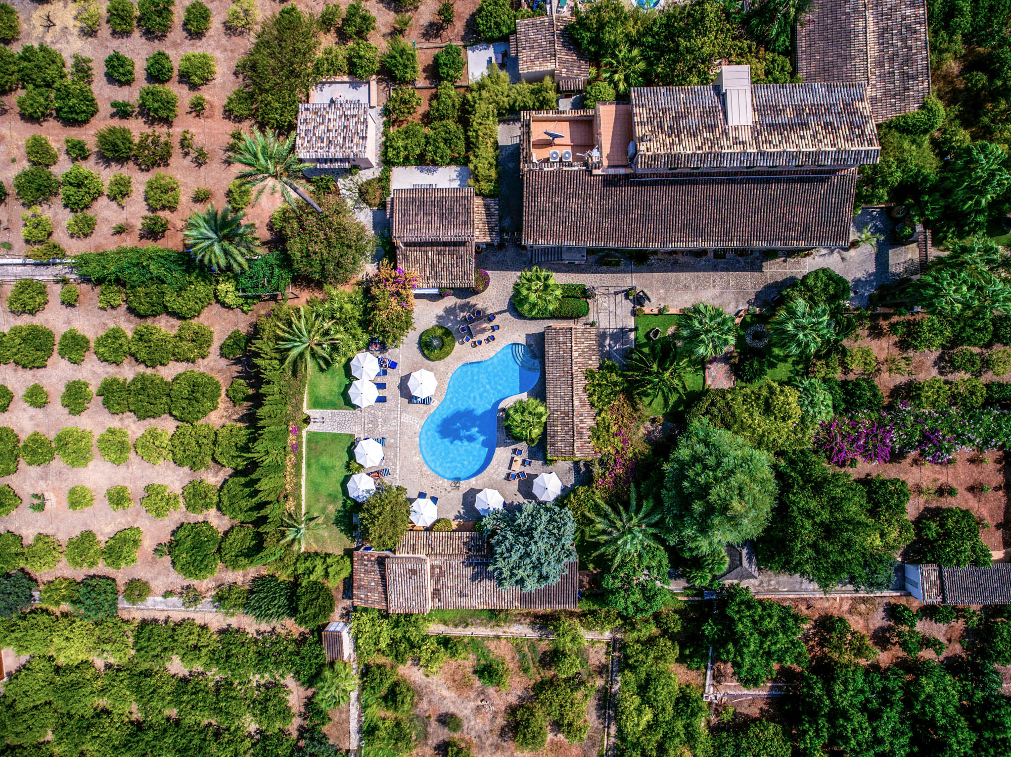 At Villa Son Grec, guests can truly have it all. This sweeping space has spacious suites, a private gym, and shady, lush green gardens that encircle a large pool surrounded by clusters of inviting sun loungers. It is peaceful and self-contained yet just a leisurely ten-minute stroll from Sóller’s bustling town square.