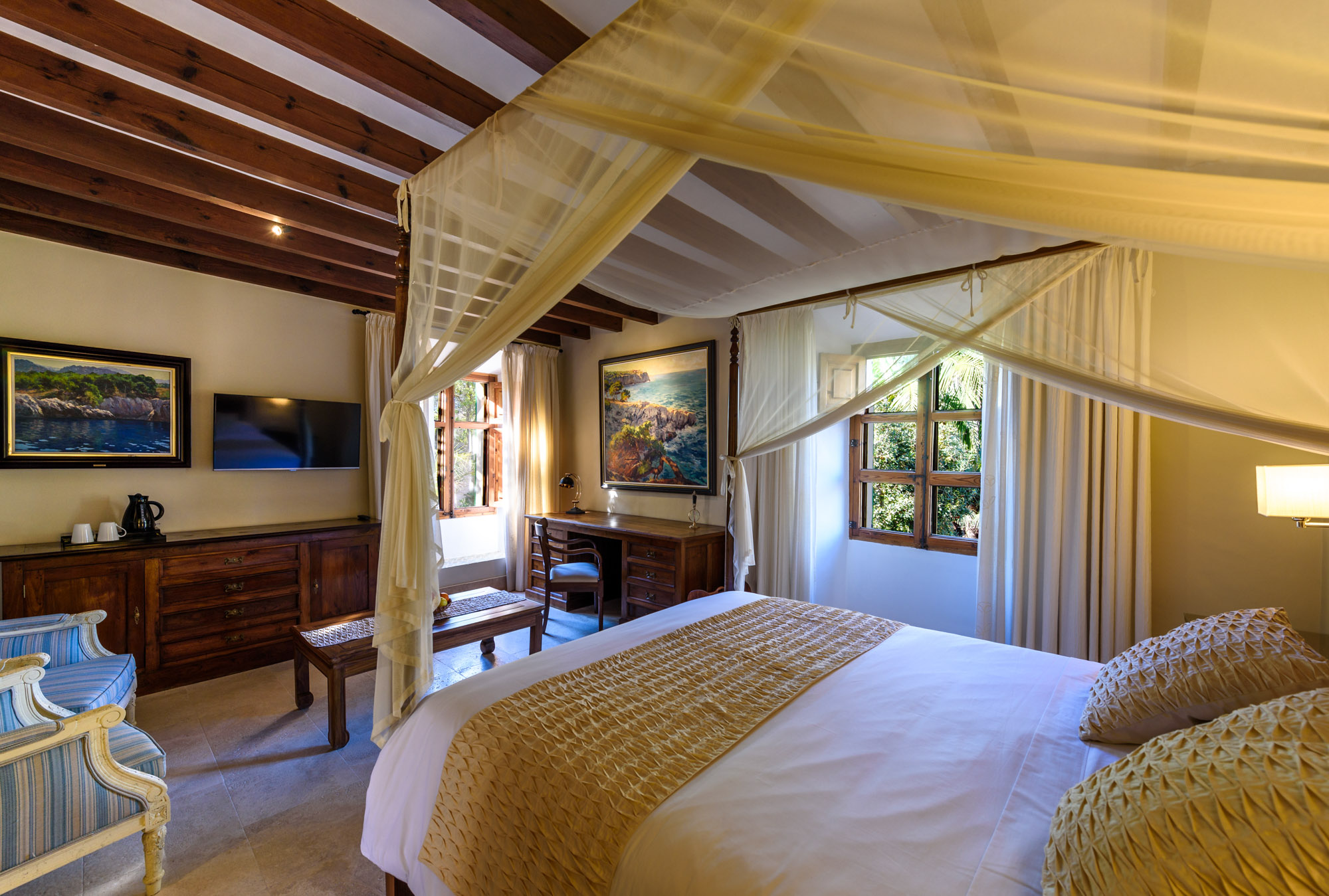 Here, you will find all manner of charming bars and restaurants that spill out onto stone streets and a local market on Saturdays. Sóller tennis club is also within walking distance, or you can take a short drive or tram to the Port de Sóller marina and lighthouse.