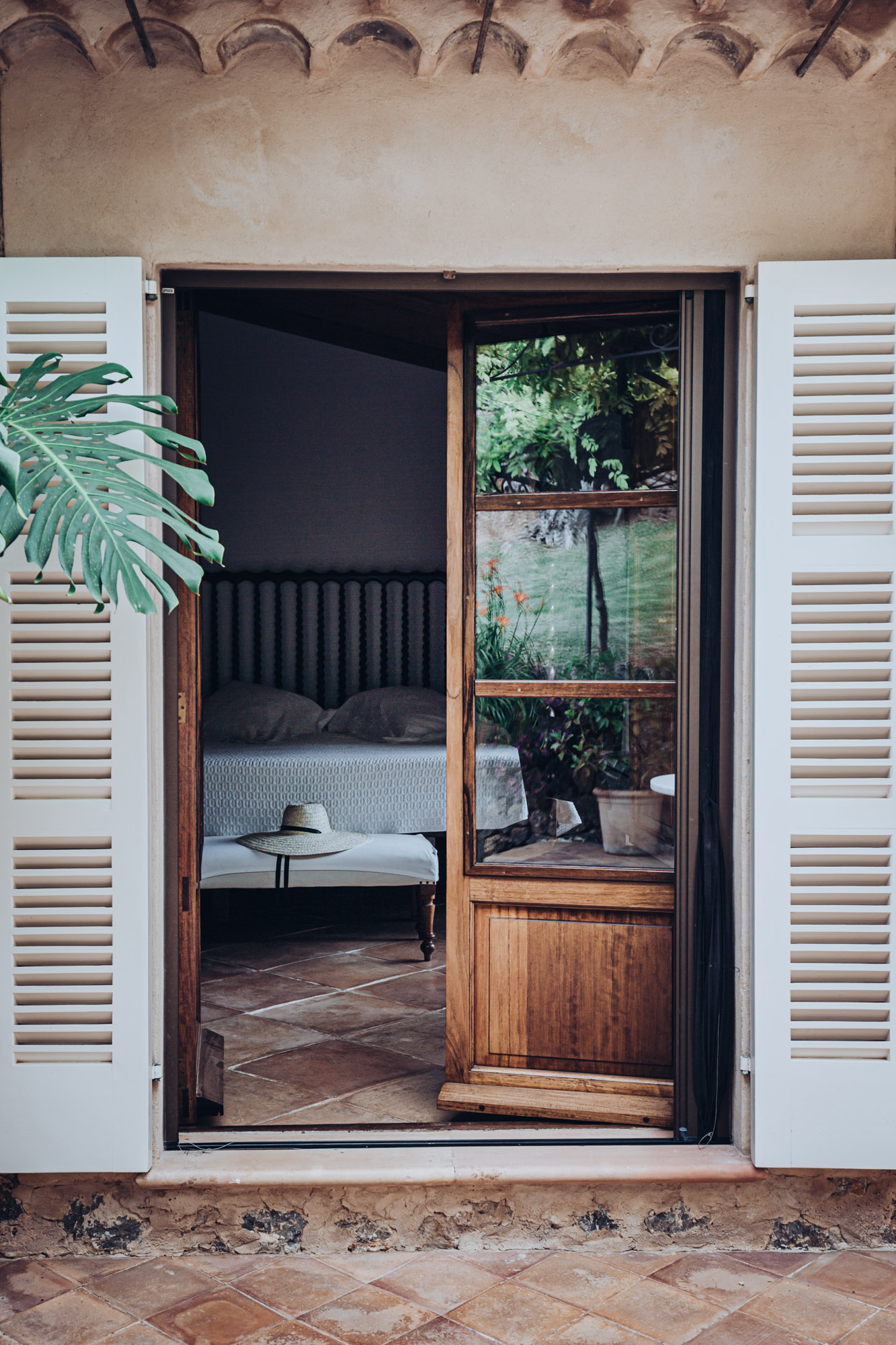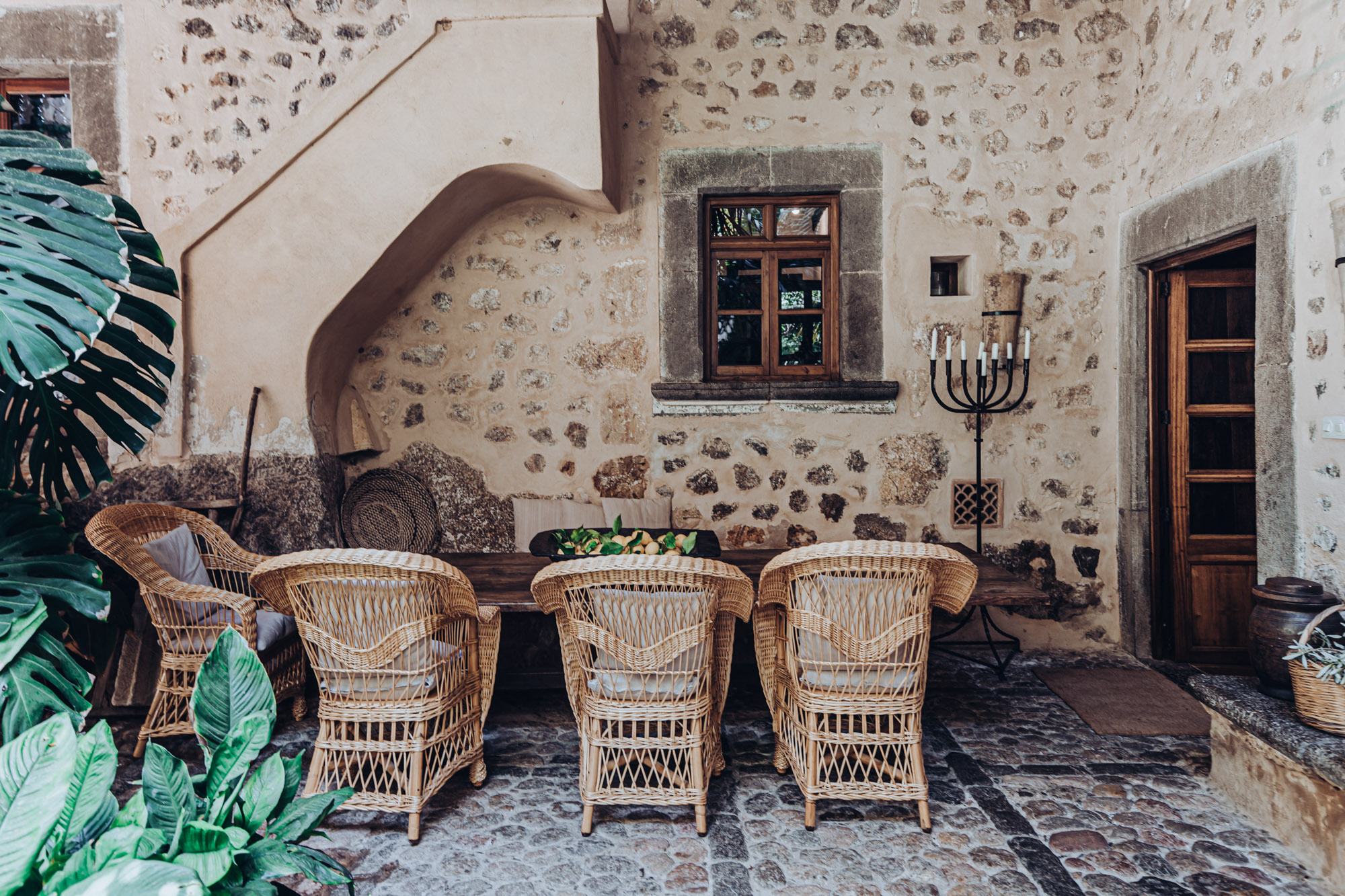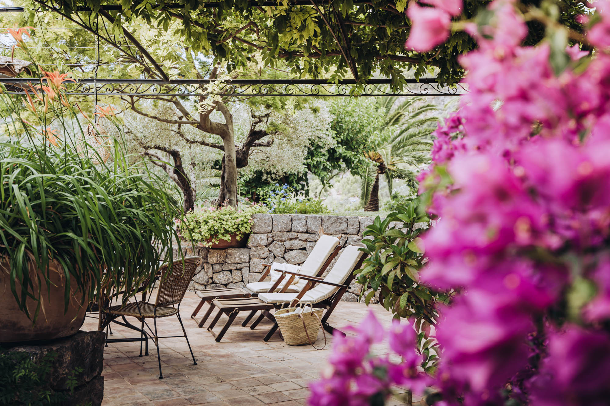 As the amber sun sets across the valley, you could watch the colours of the mountains turn pink from this privileged spot — nestled high in the hills, and far away from the crowds. Originally used to produce olive oil, Son Salas is now centred around a verdant courtyard, the heart of the home. The dining room still features large stone pieces from the original pressing system.