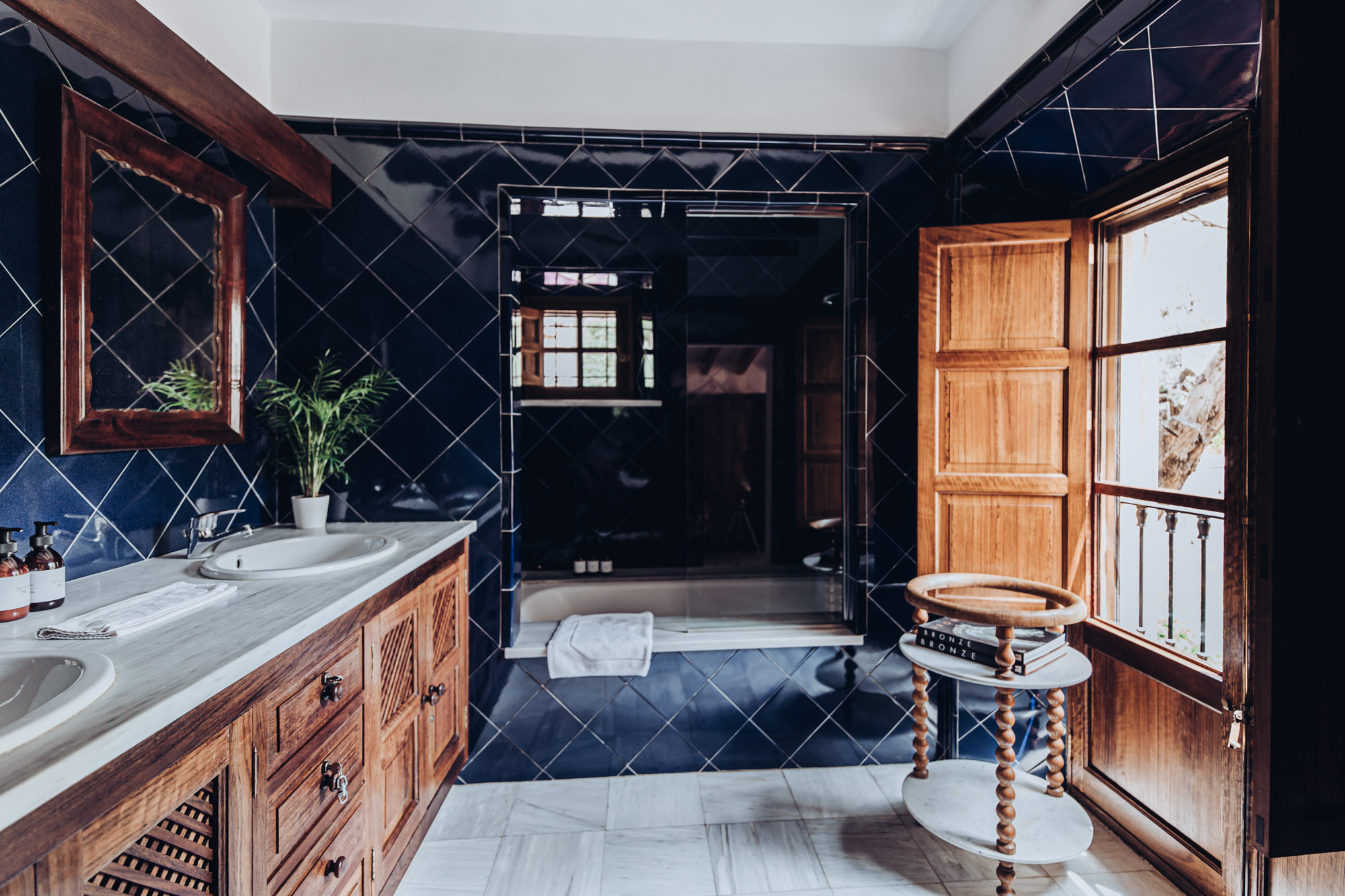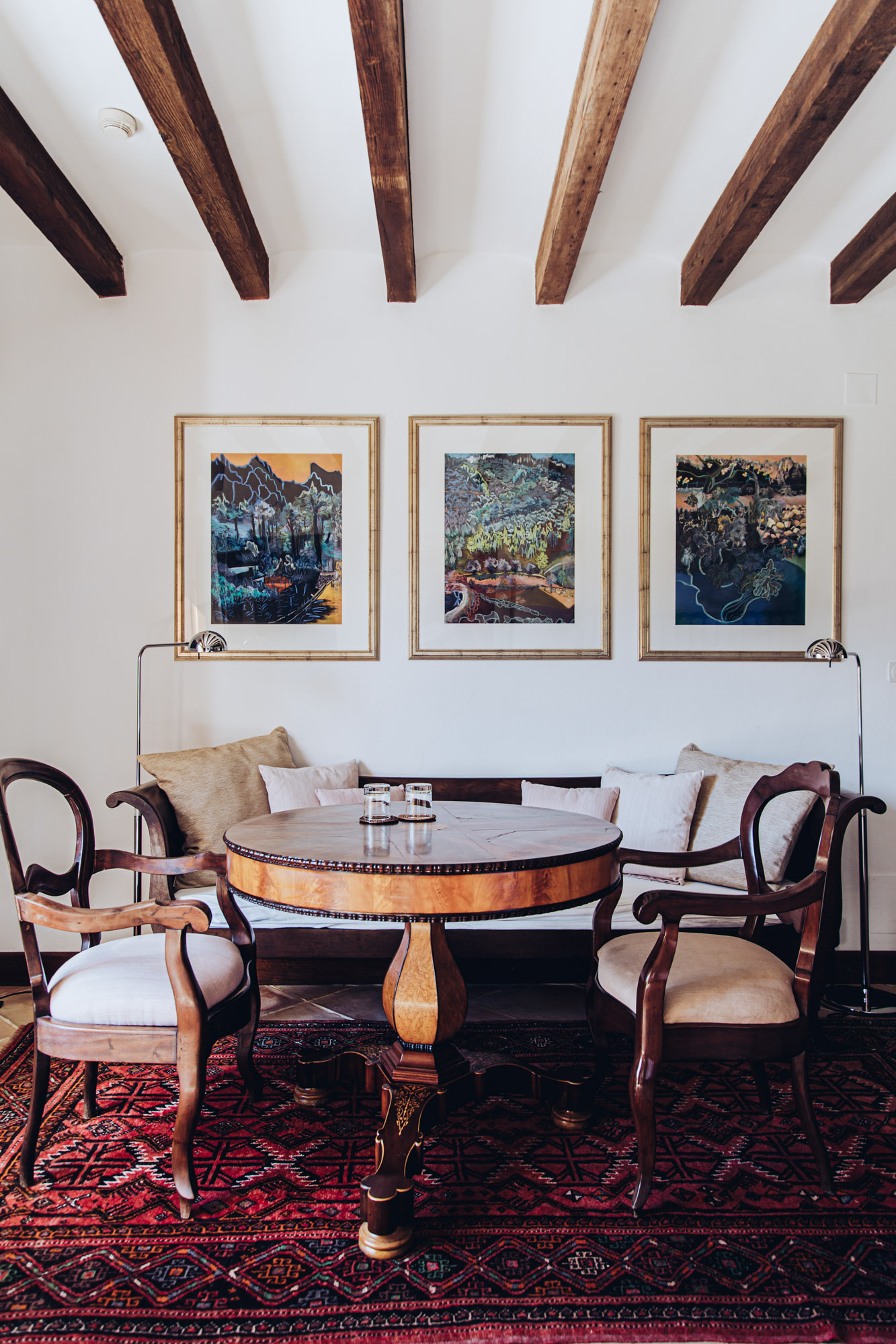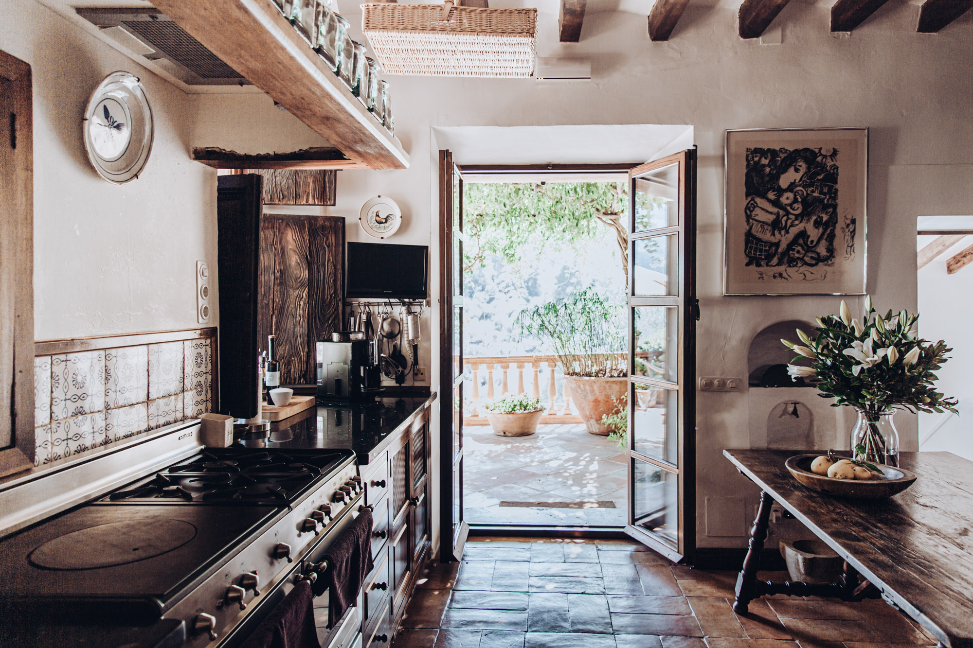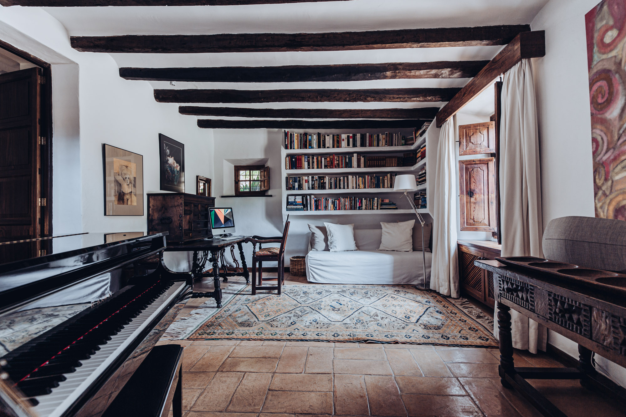 As the amber sun sets across the valley, you could watch the colours of the mountains turn pink from this privileged spot — nestled high in the hills, and far away from the crowds. Originally used to produce olive oil, Son Salas is now centred around a verdant courtyard, the heart of the home. The dining room still features large stone pieces from the original pressing system.