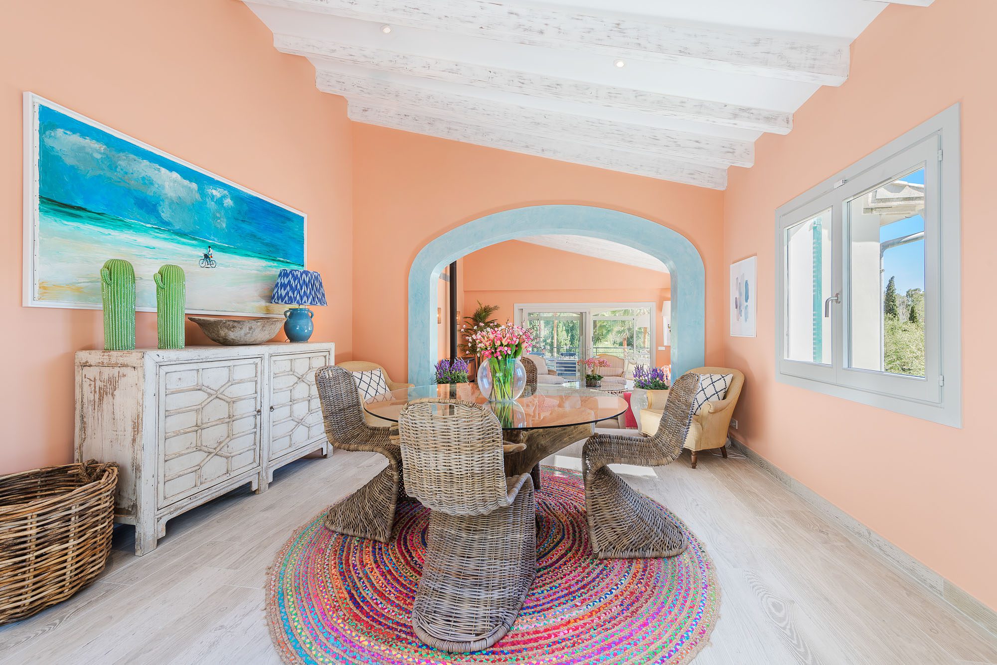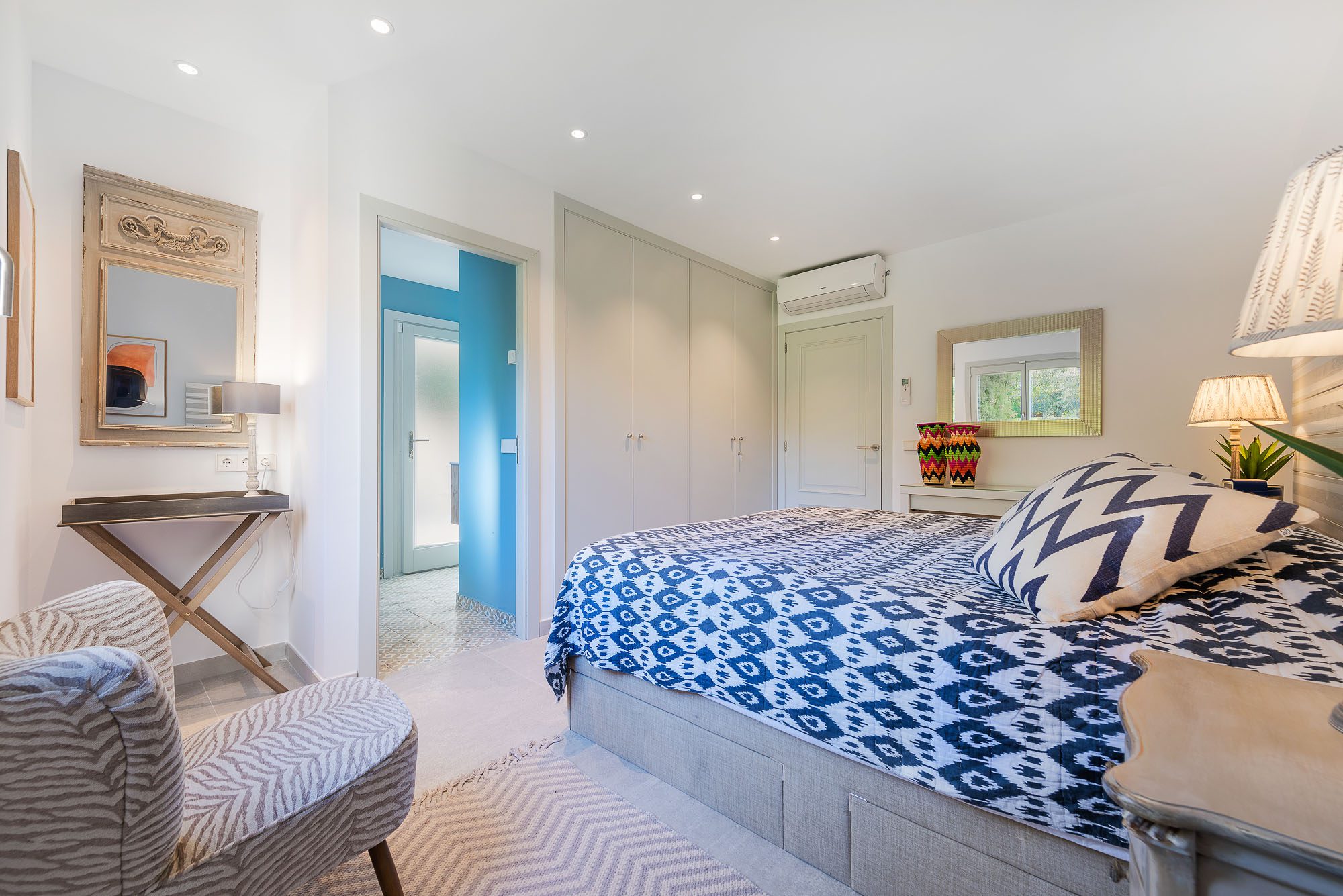 Surrounded by picturesque Spanish countryside, the villa is just a short stroll from the charming old town of Pollenca. Additionally, the famous turquoise waters and sandy beaches of Cala San Vicente and Puerto Pollenca are only five minutes away, making it a perfect location for peace and adventure.