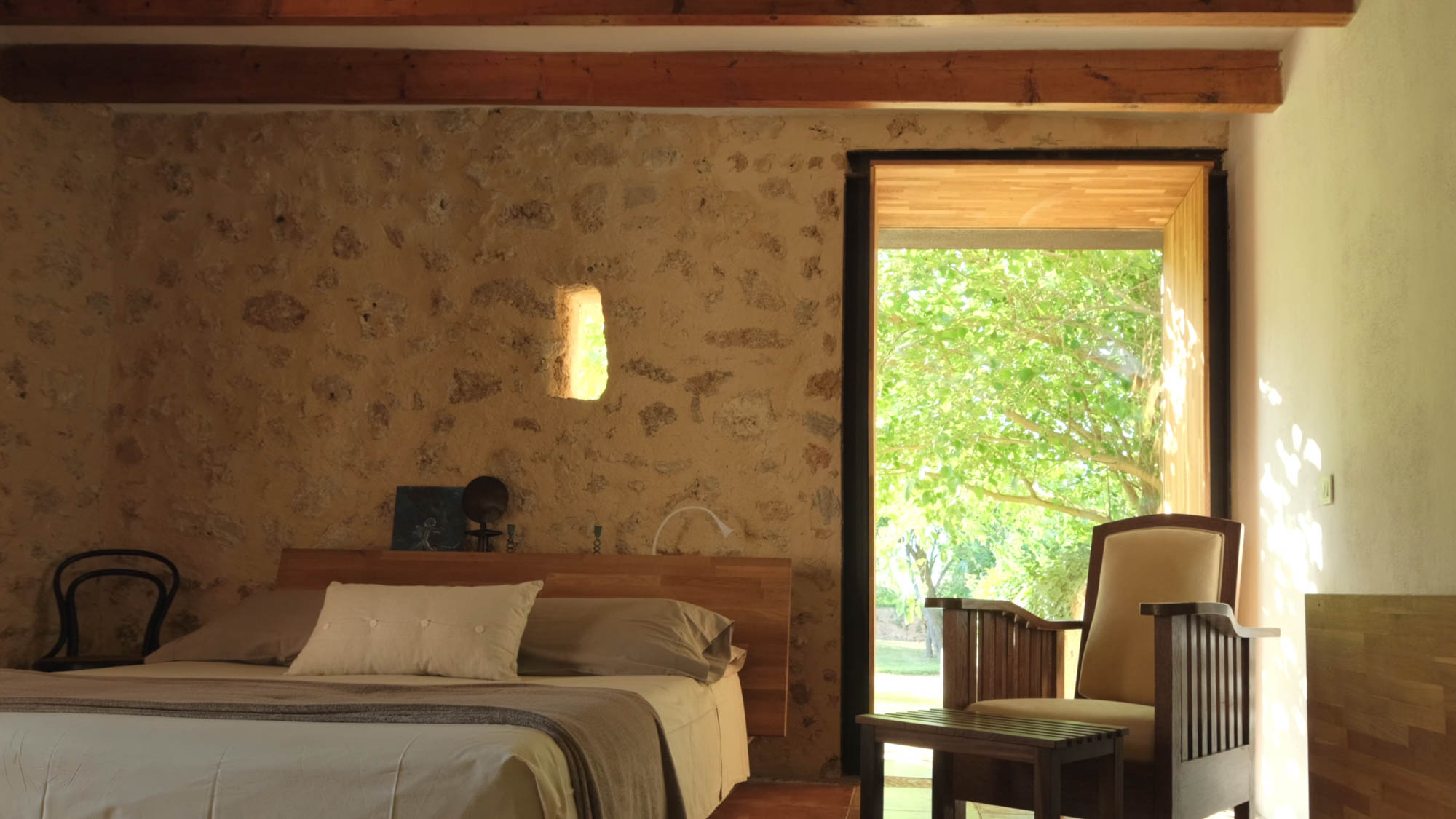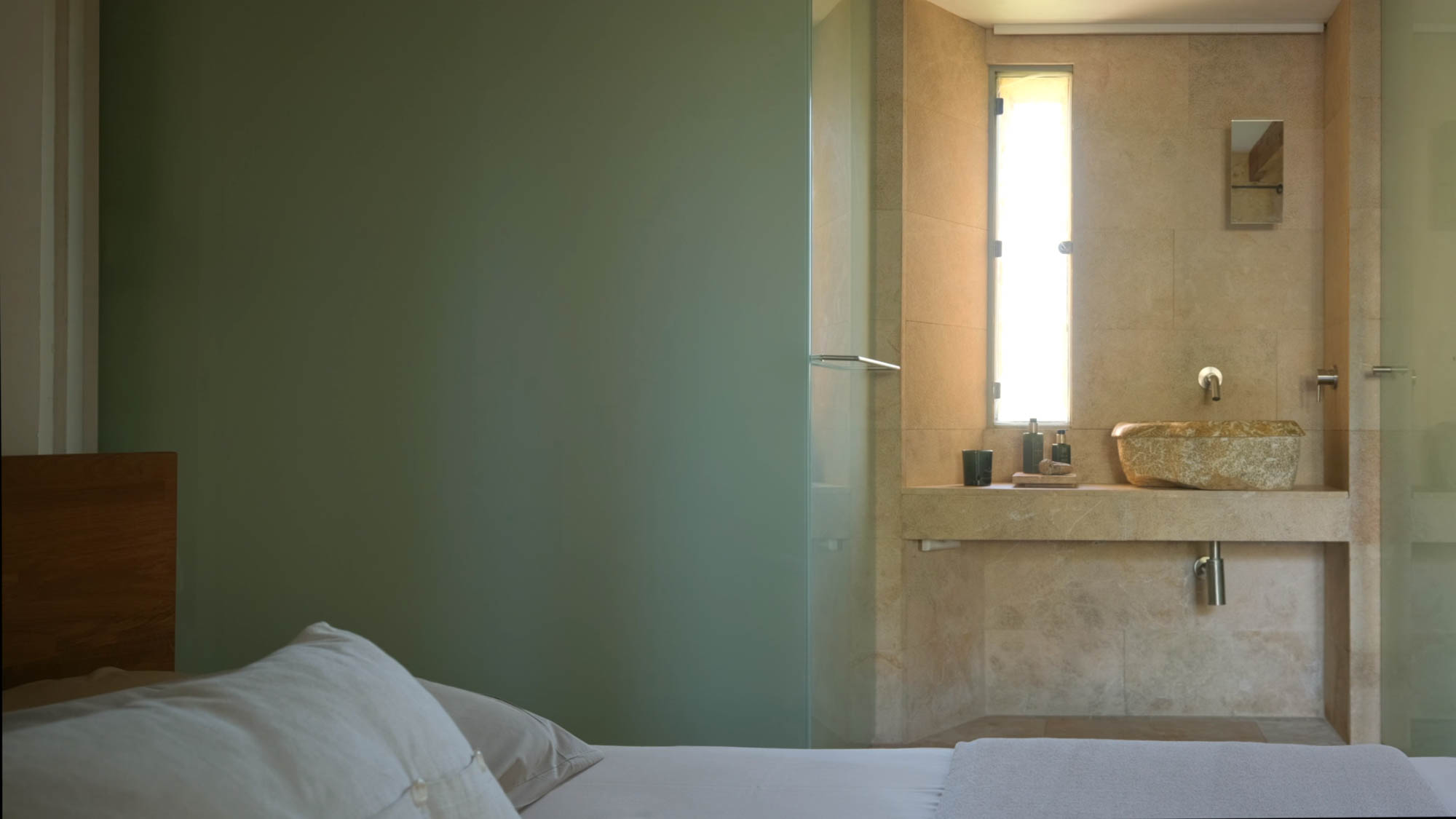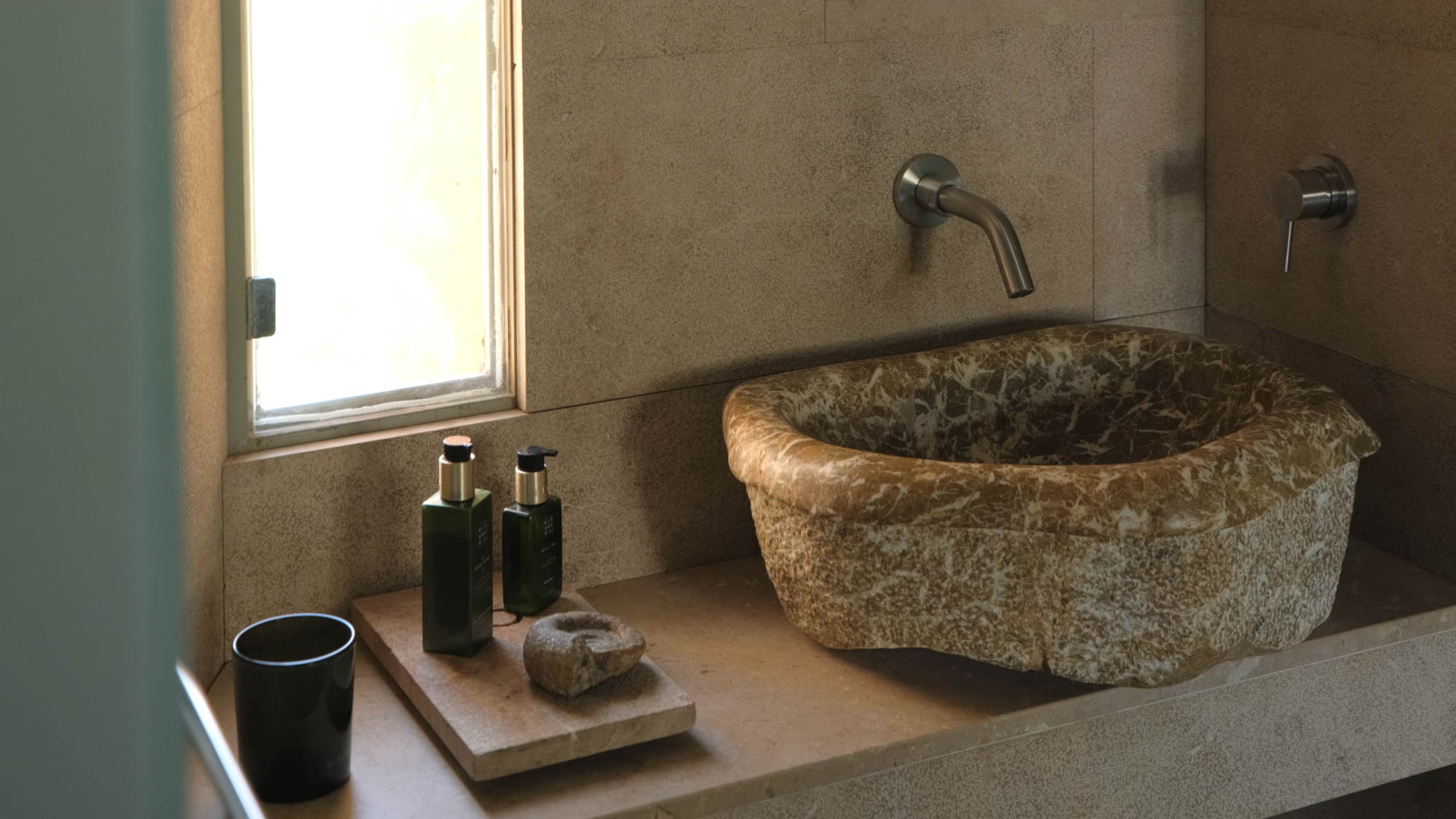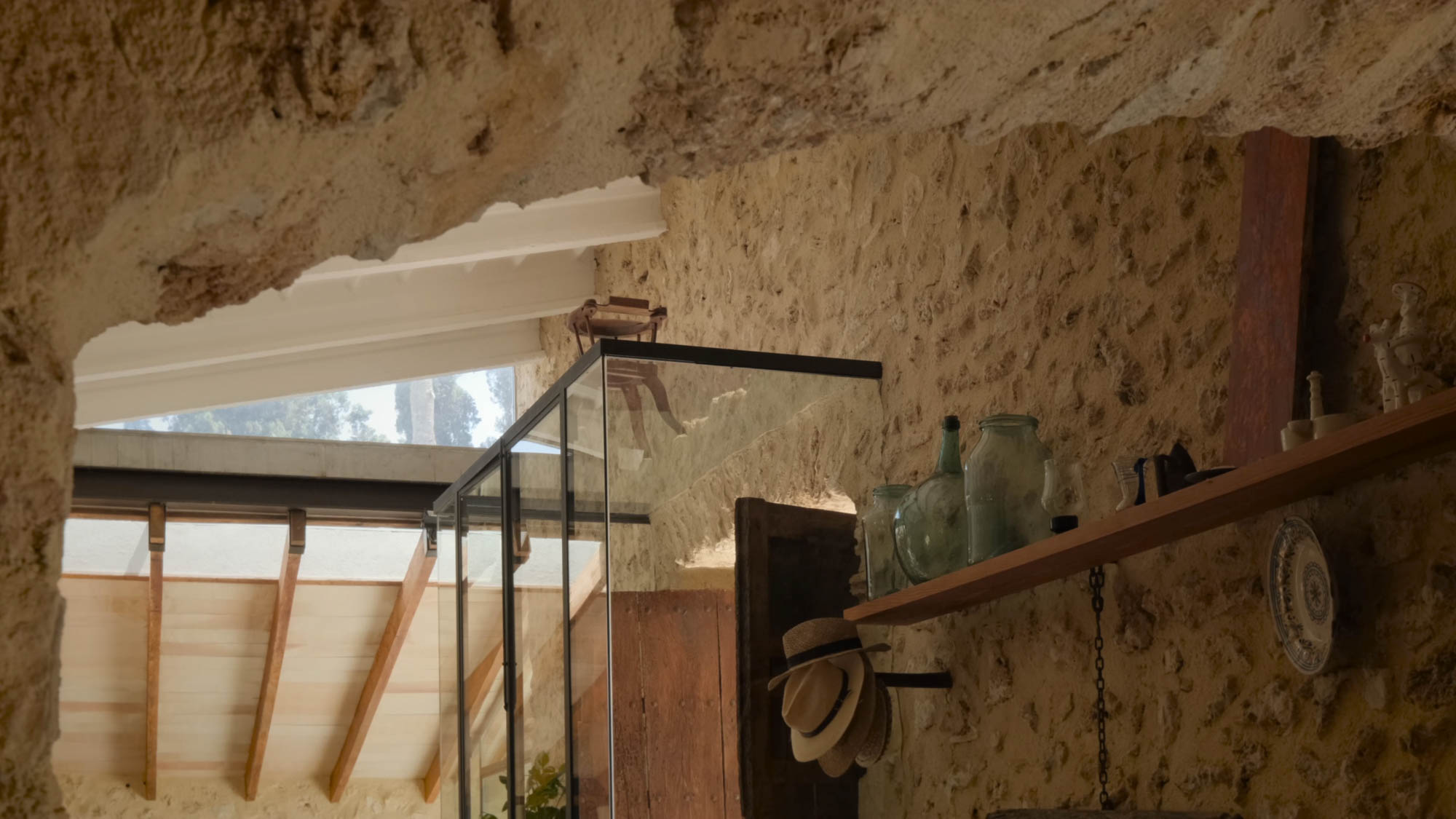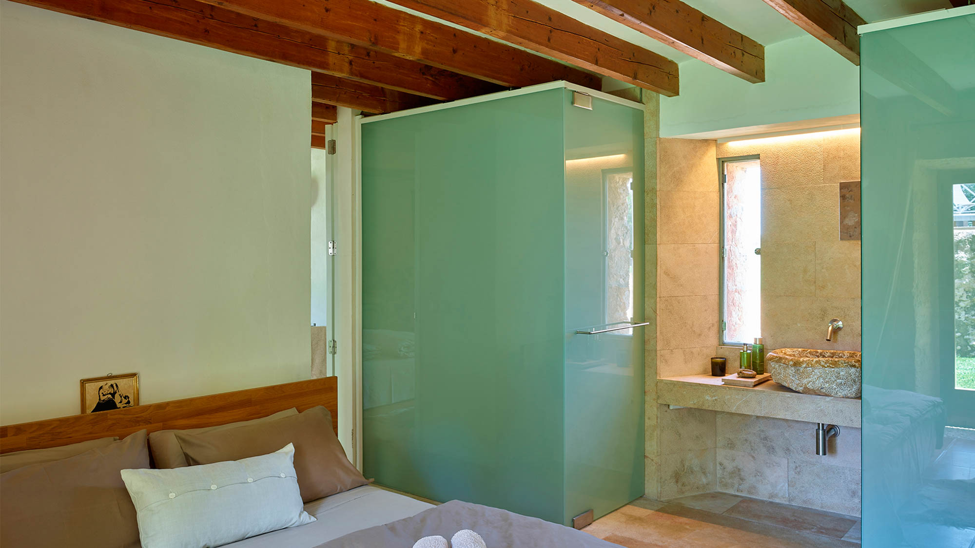 It's an architecturally interesting house created from the restoration of rustic farm buildings. The innovative use of old and new materials is evident; the waterwheel survives, and the original irrigation pool has been transformed into a spectacular swimming pool. It's a place of both great style and wonderful tranquillity.