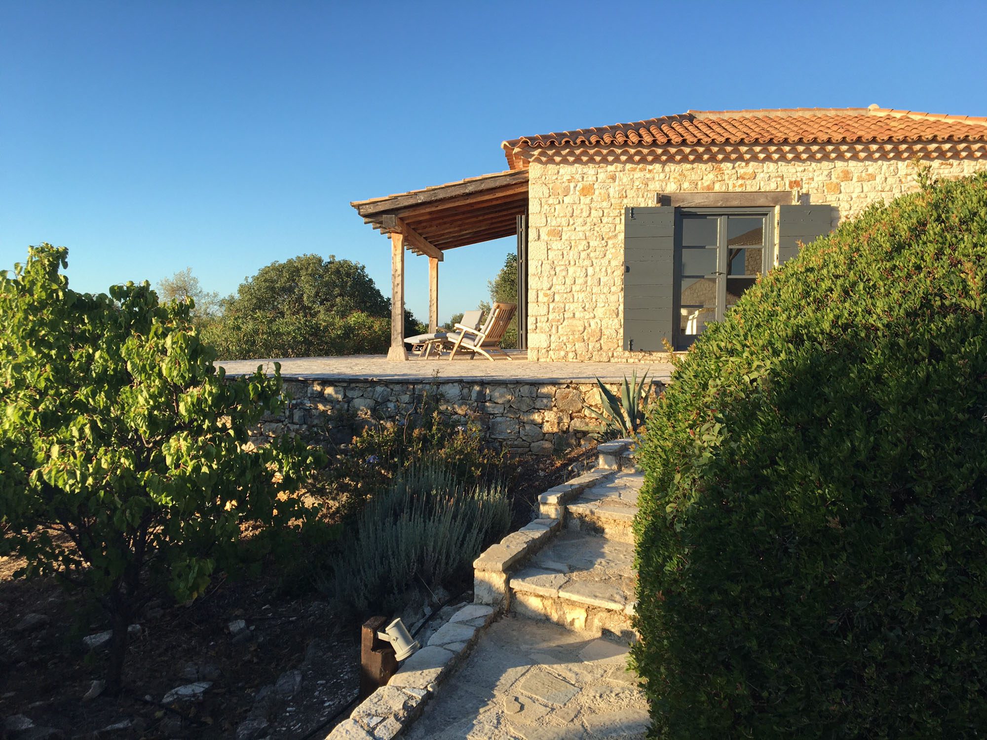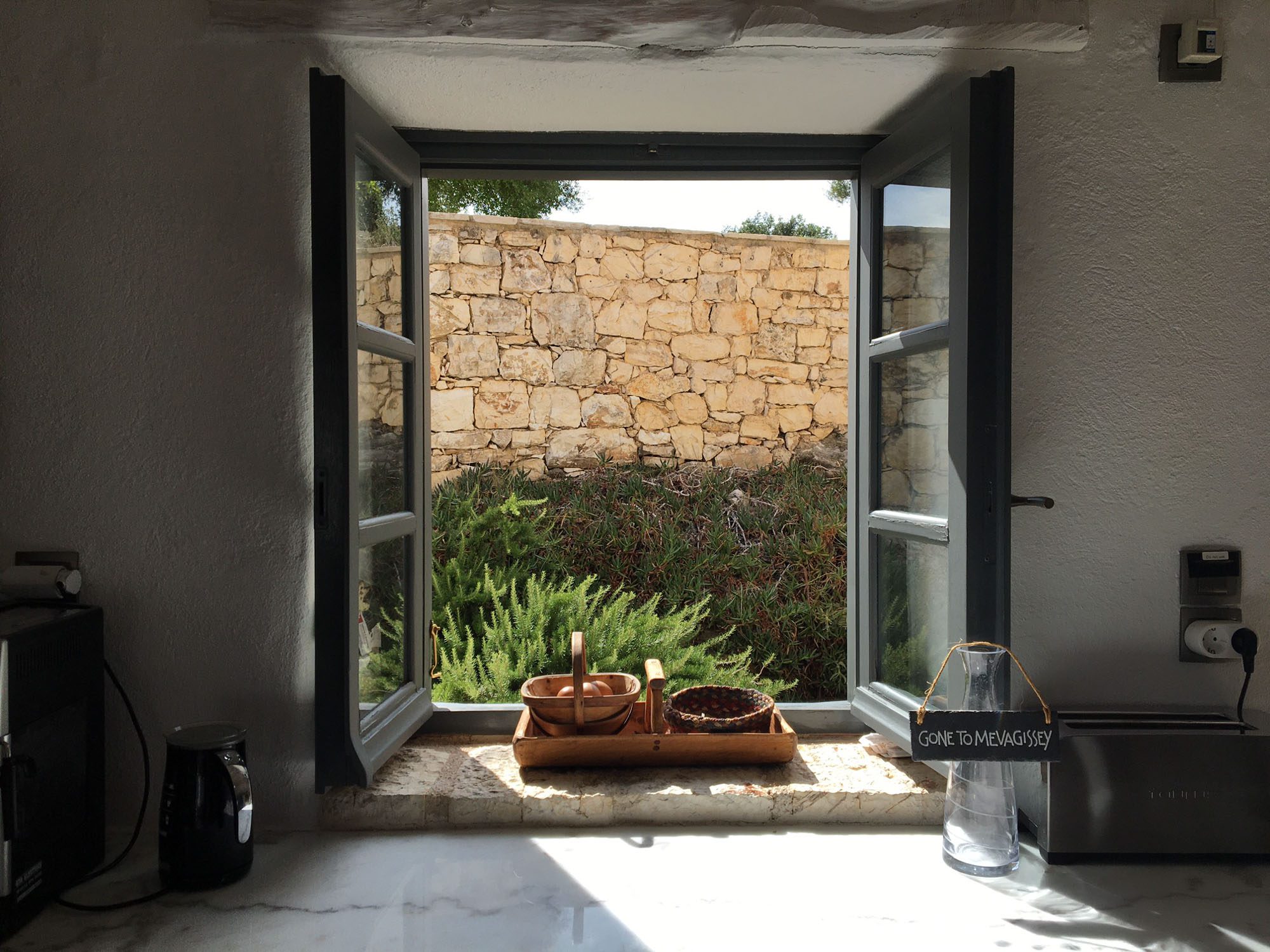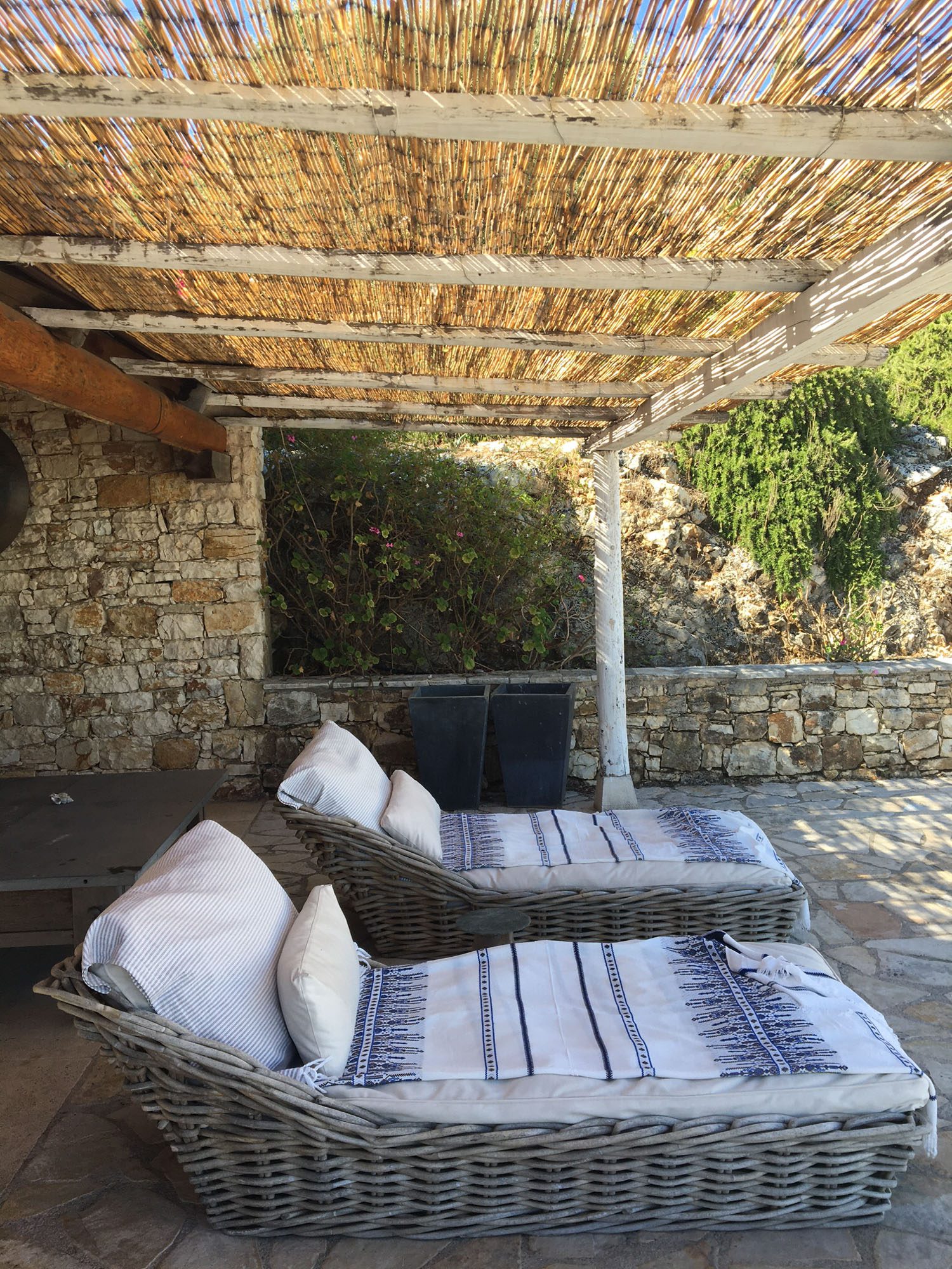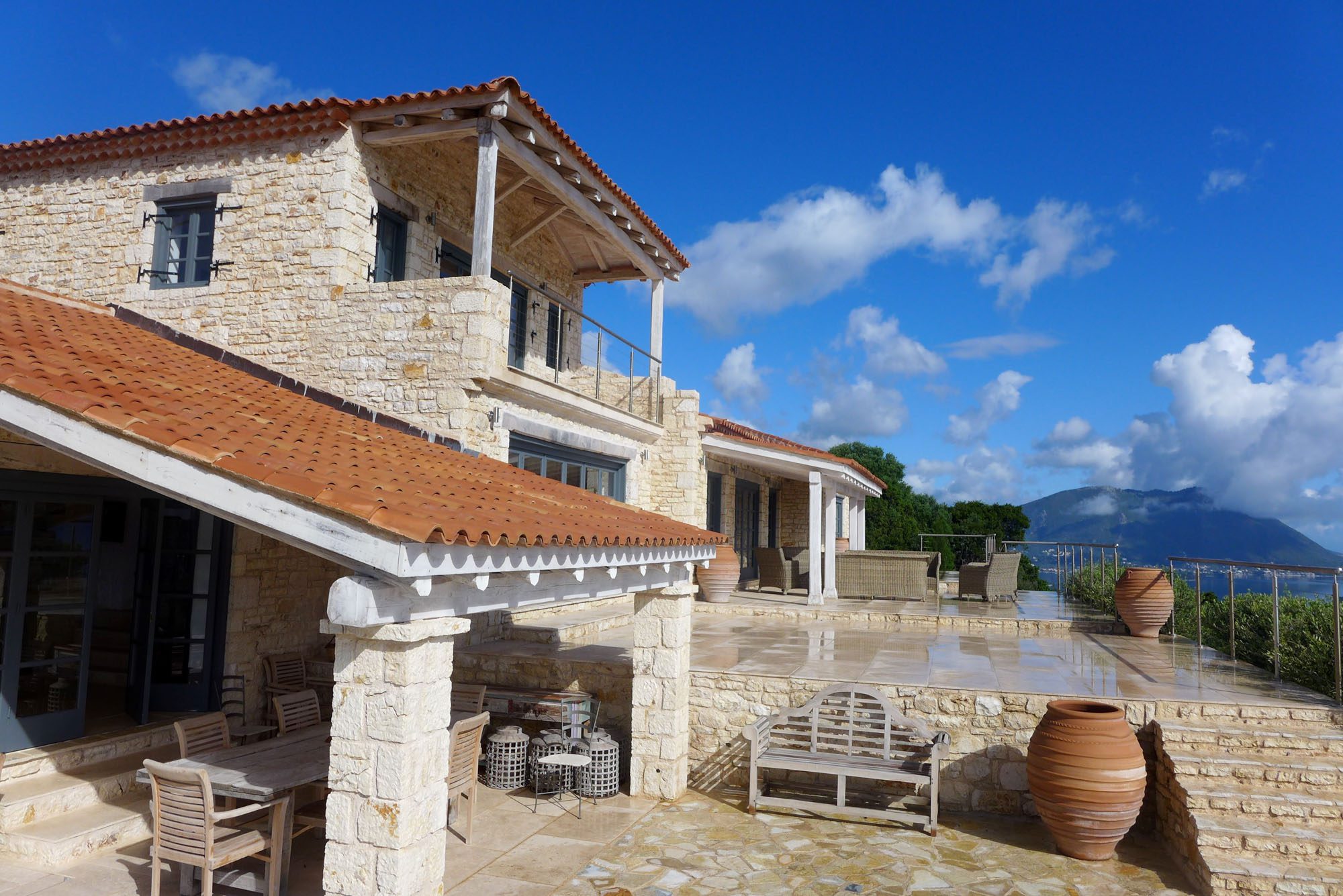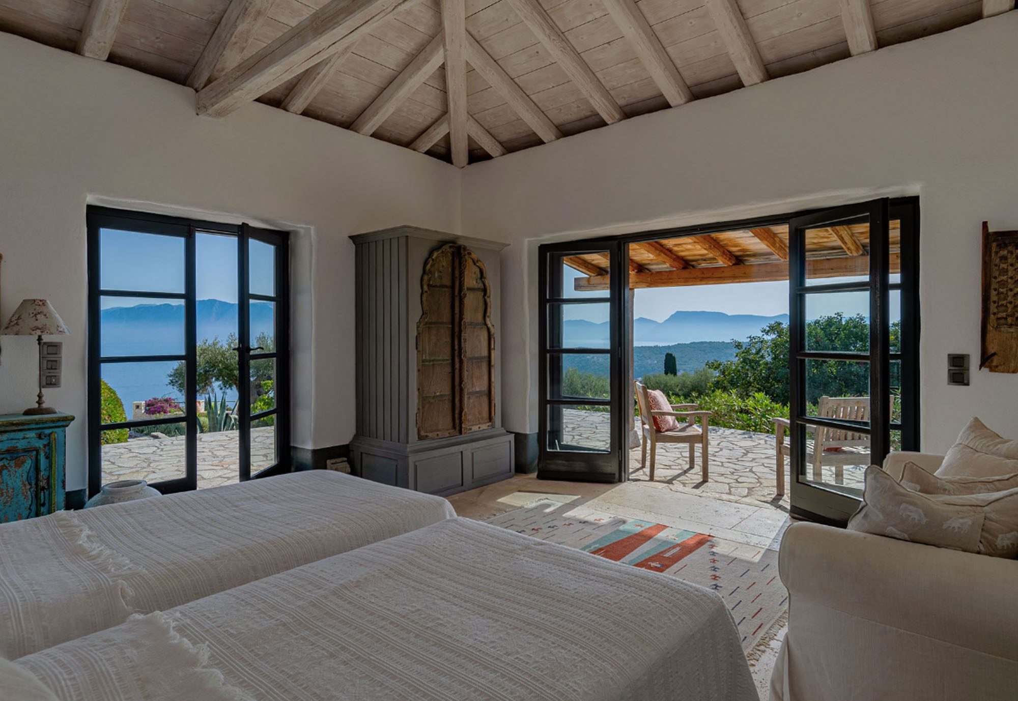 Featuring whitewashed walls, hewn stone windowsills, pebble mosaic bathroom floors, handcrafted wooden headboards, and a unique mix of furnishings. The living space in the main house is generous, with wide glass doors open from the living/dining area to the terrace. The spacious and comfortable bedrooms are all en suite, with two in the main house (split across two floors) and a further two in the guest house. Two pull-out beds can be added to any room for an additional two guests.