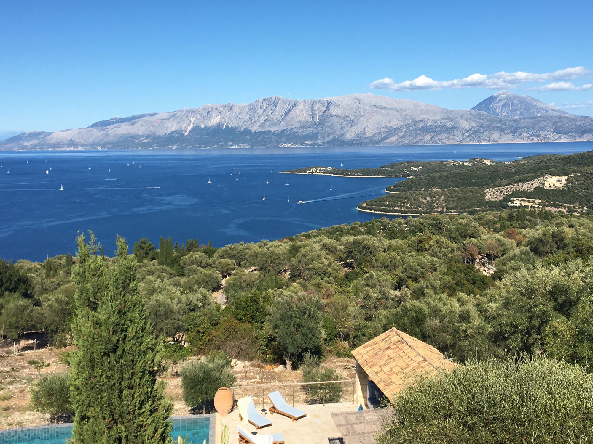 The nearest village, Spartochori, is less than five minutes away, with inviting shops and traditional restaurants. At the same time, Vathi, the island’s lively capital with a wider variety of dining options, is a 10-15 minute drive. For beach days, Agrilia on the west coast is ideal for snorkelling, with sandy stretches and abundant fish, while nearby Loutrolimni offers a quiet, expansive beach often frequented only by locals. Korokofolia, just beyond Fanari Cape, is another lovely option. In this part of the Ionian, boating is a dream, with countless islands to explore and hidden bays perfect for anchoring and swimming. Local tavernas and sophisticated lunch spots are scattered along the coast, ensuring a delightful mix of options wherever you sail.