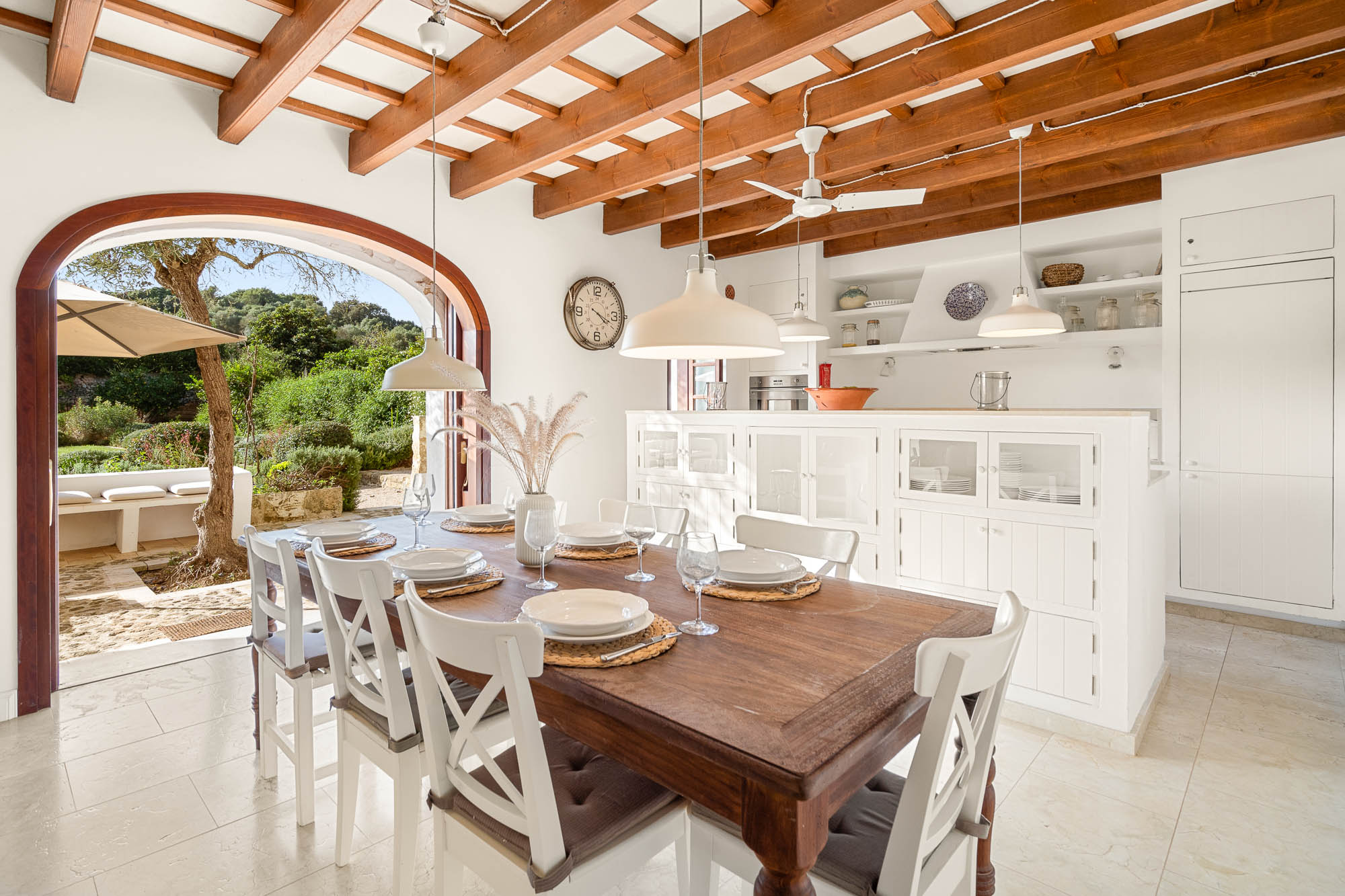 Its central location makes the many attractions of this small island easily accessible, from the beaches on the north and south coasts to the towns of Ciutadella and Mahón and the Hauser & Wirth gallery on Isla del Rey.