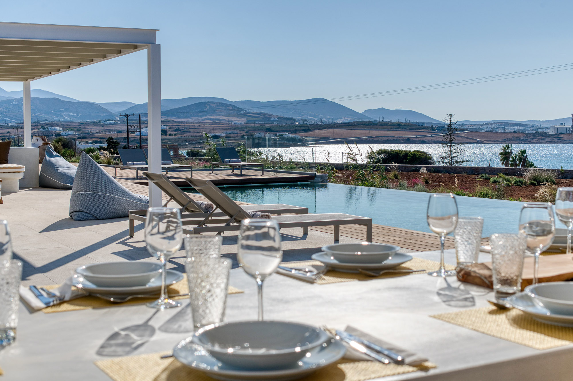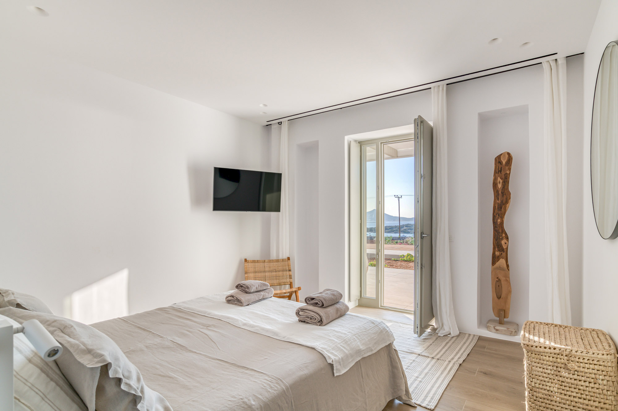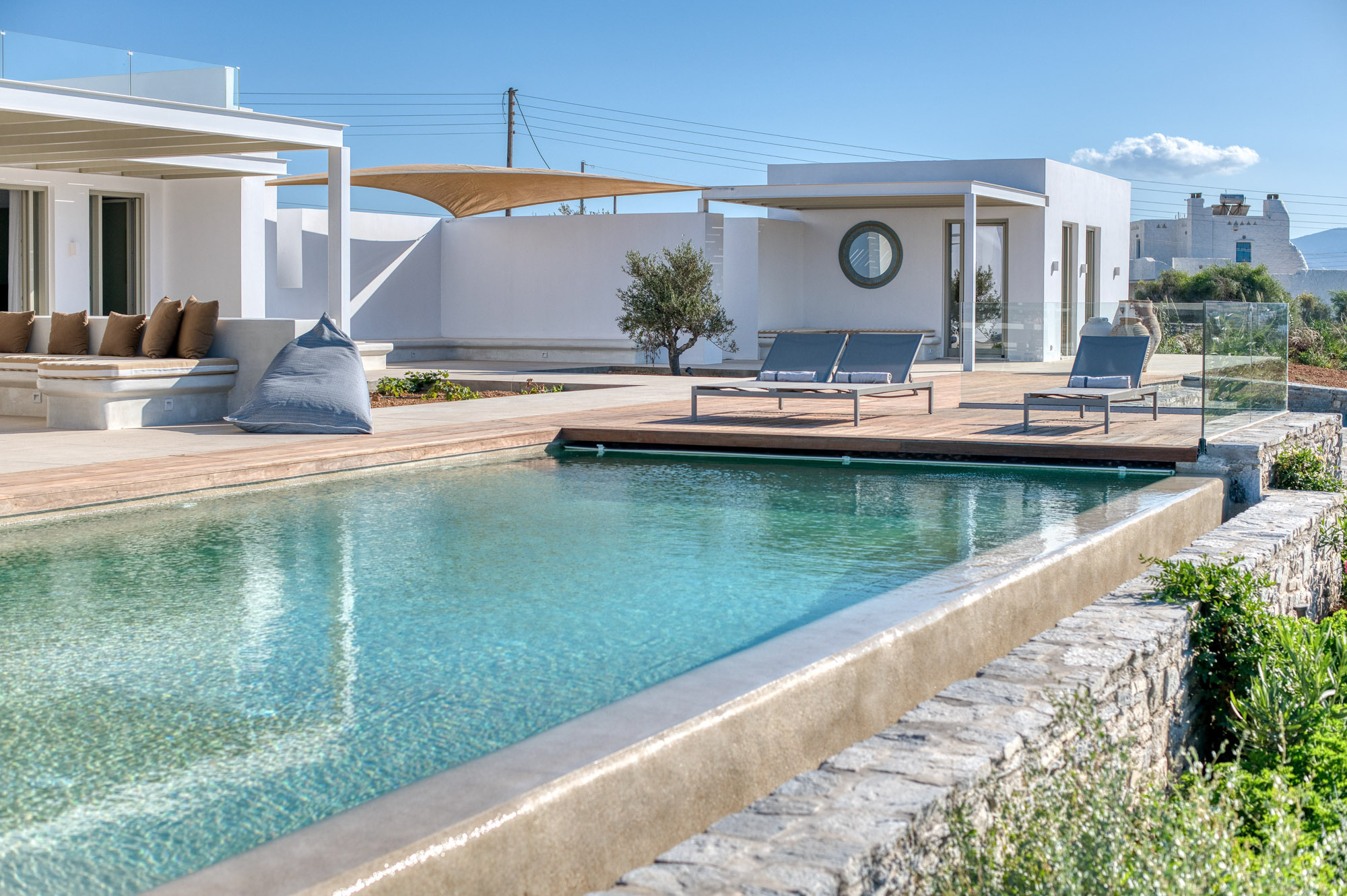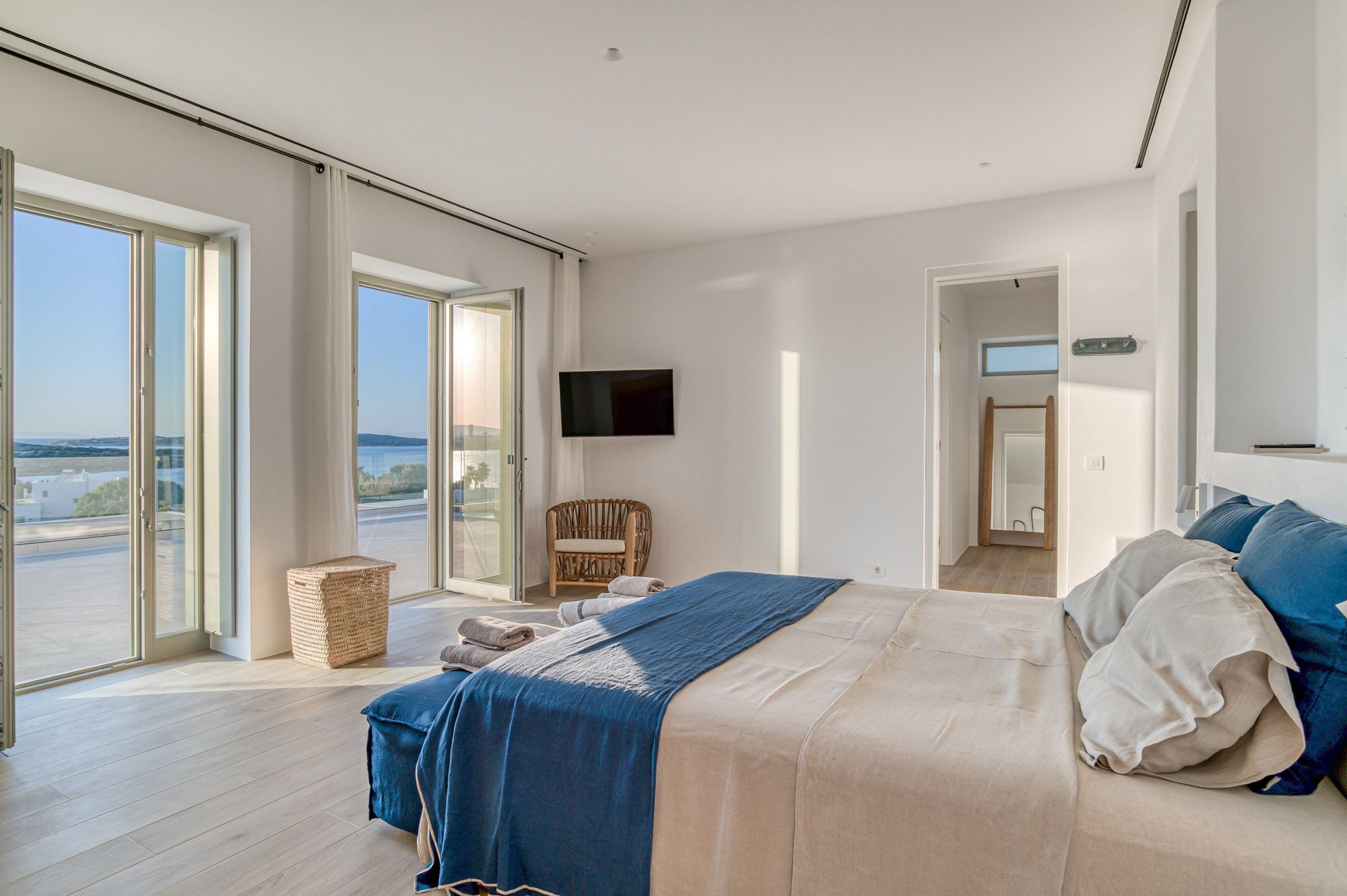 Xifara’s calm shoreline, known for its golden sands and clear waters, is ideal for swimming or windsurfing just moments from the villa. A short drive leads to Naoussa’s lively town centre, where restaurants, nightlife, and boutiques await. At the same time, nearby Santa Maria is known for its striking beaches and laid-back resort atmosphere, offering a seamless blend of quiet and local vibrancy.