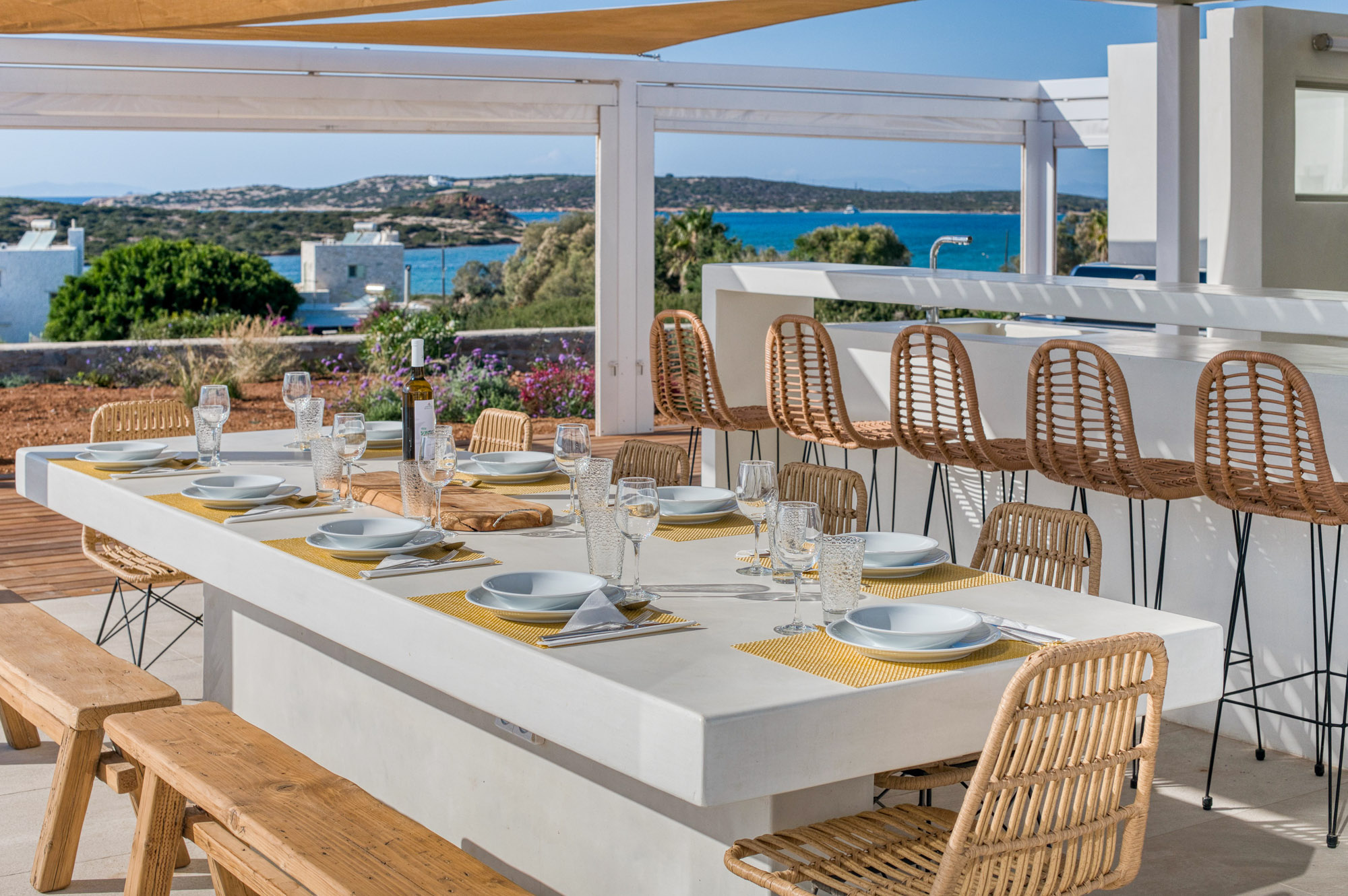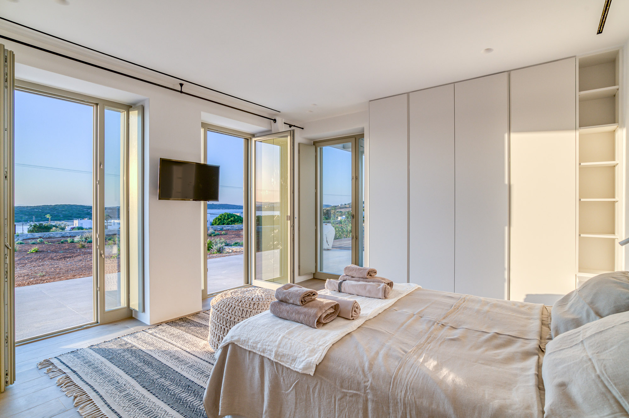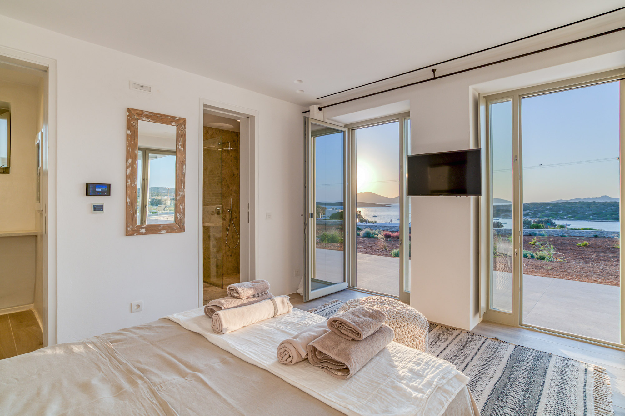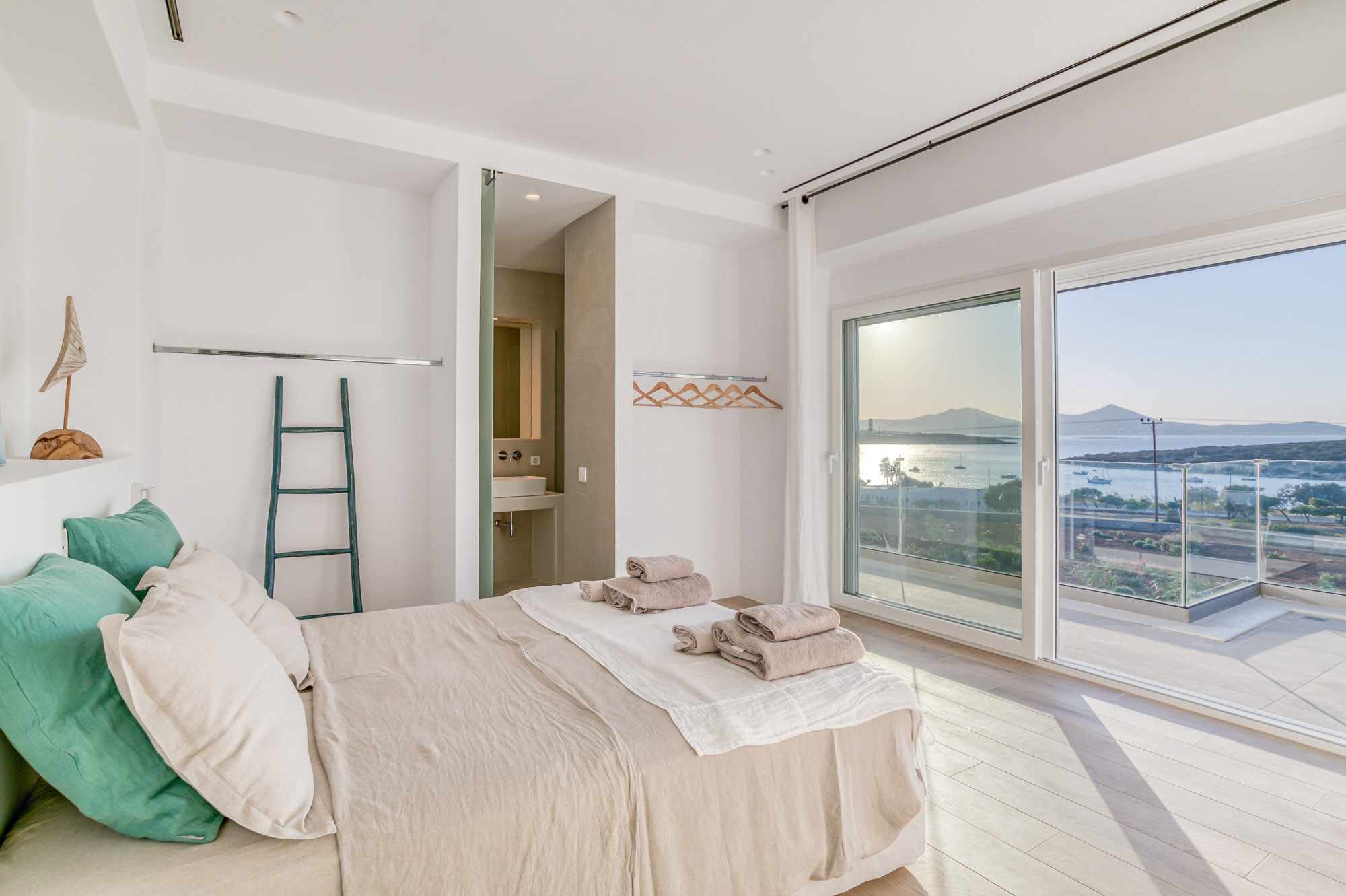 Xifara’s calm shoreline, known for its golden sands and clear waters, is ideal for swimming or windsurfing just moments from the villa. A short drive leads to Naoussa’s lively town centre, where restaurants, nightlife, and boutiques await. At the same time, nearby Santa Maria is known for its striking beaches and laid-back resort atmosphere, offering a seamless blend of quiet and local vibrancy.