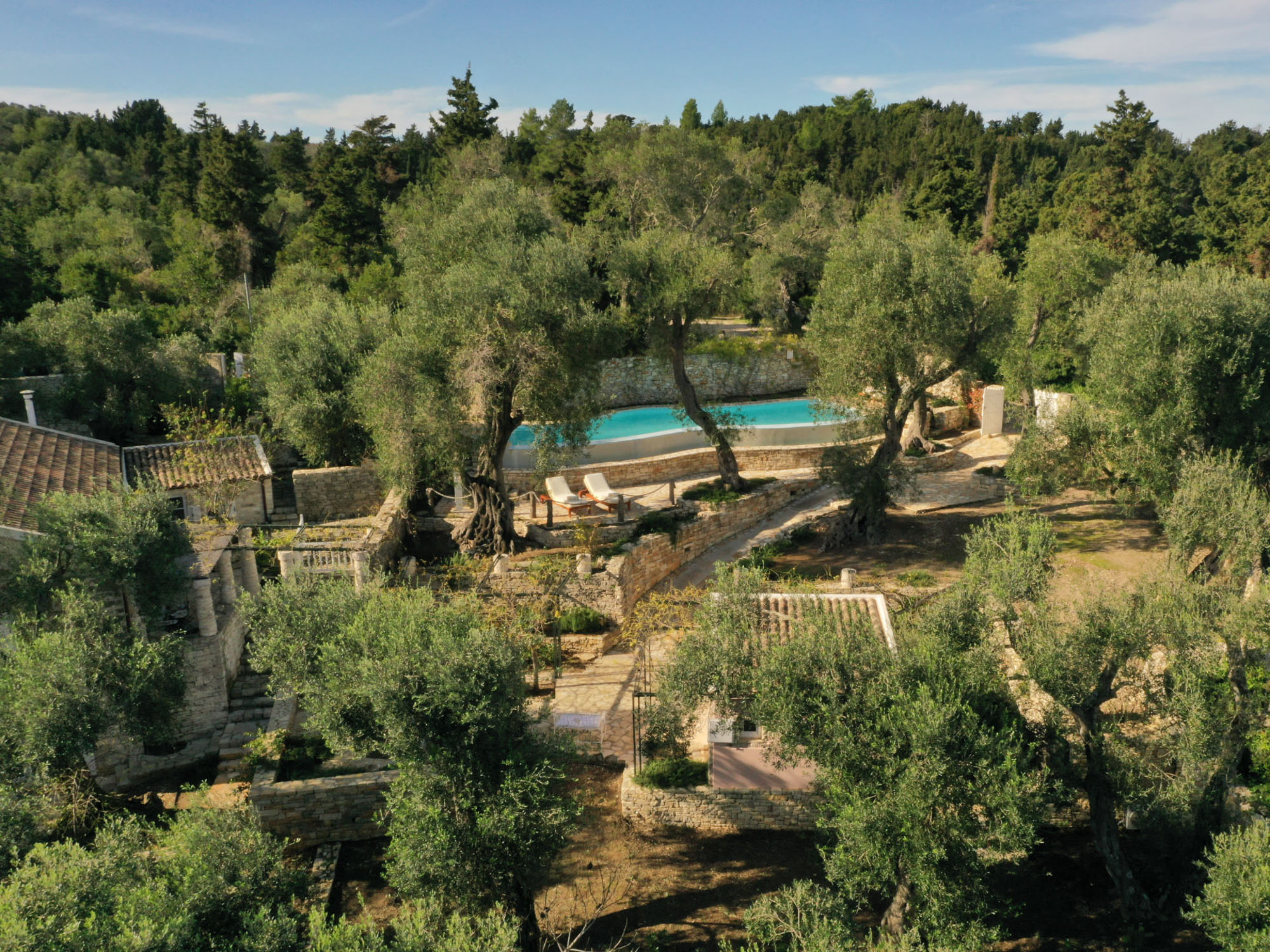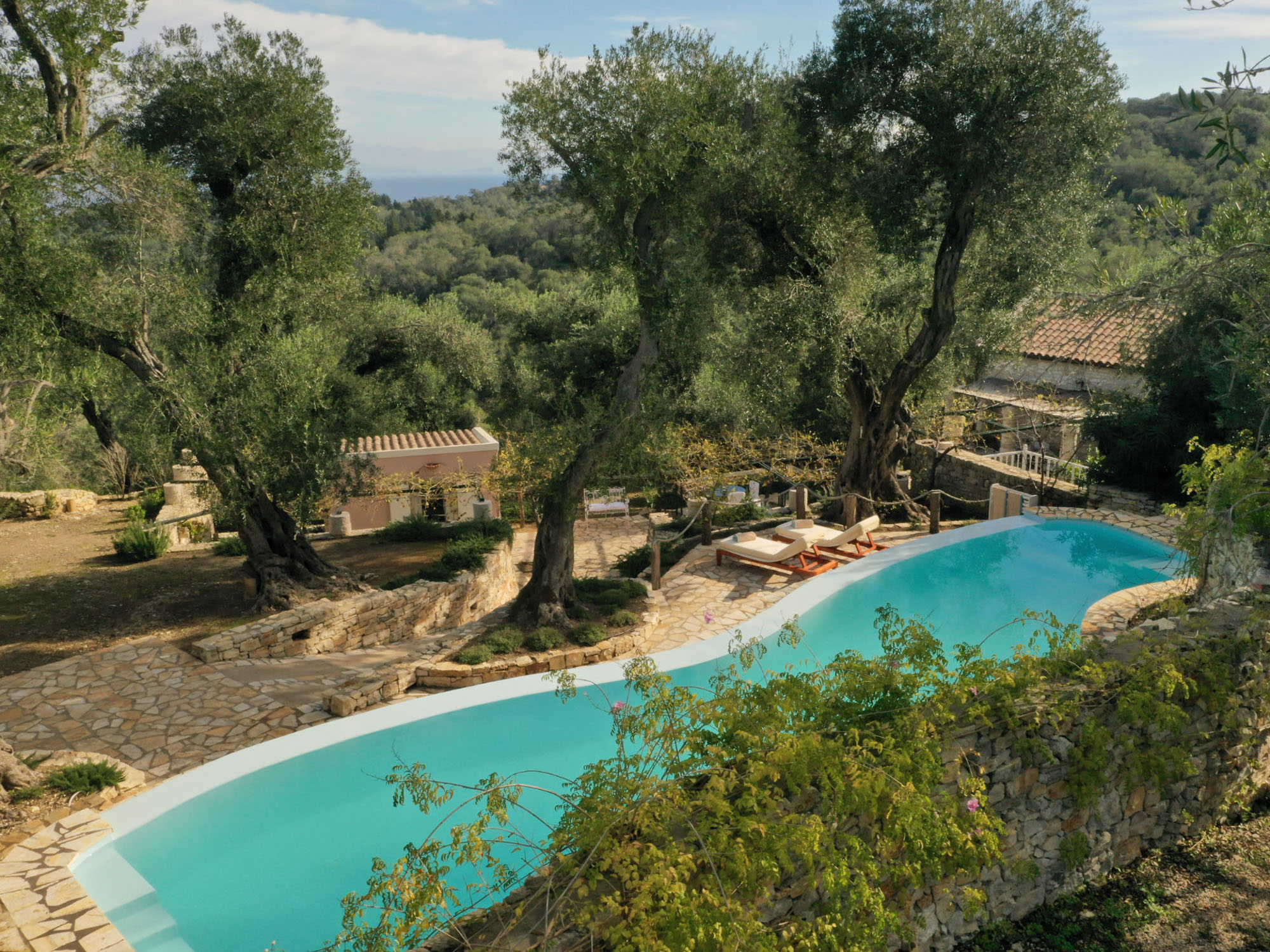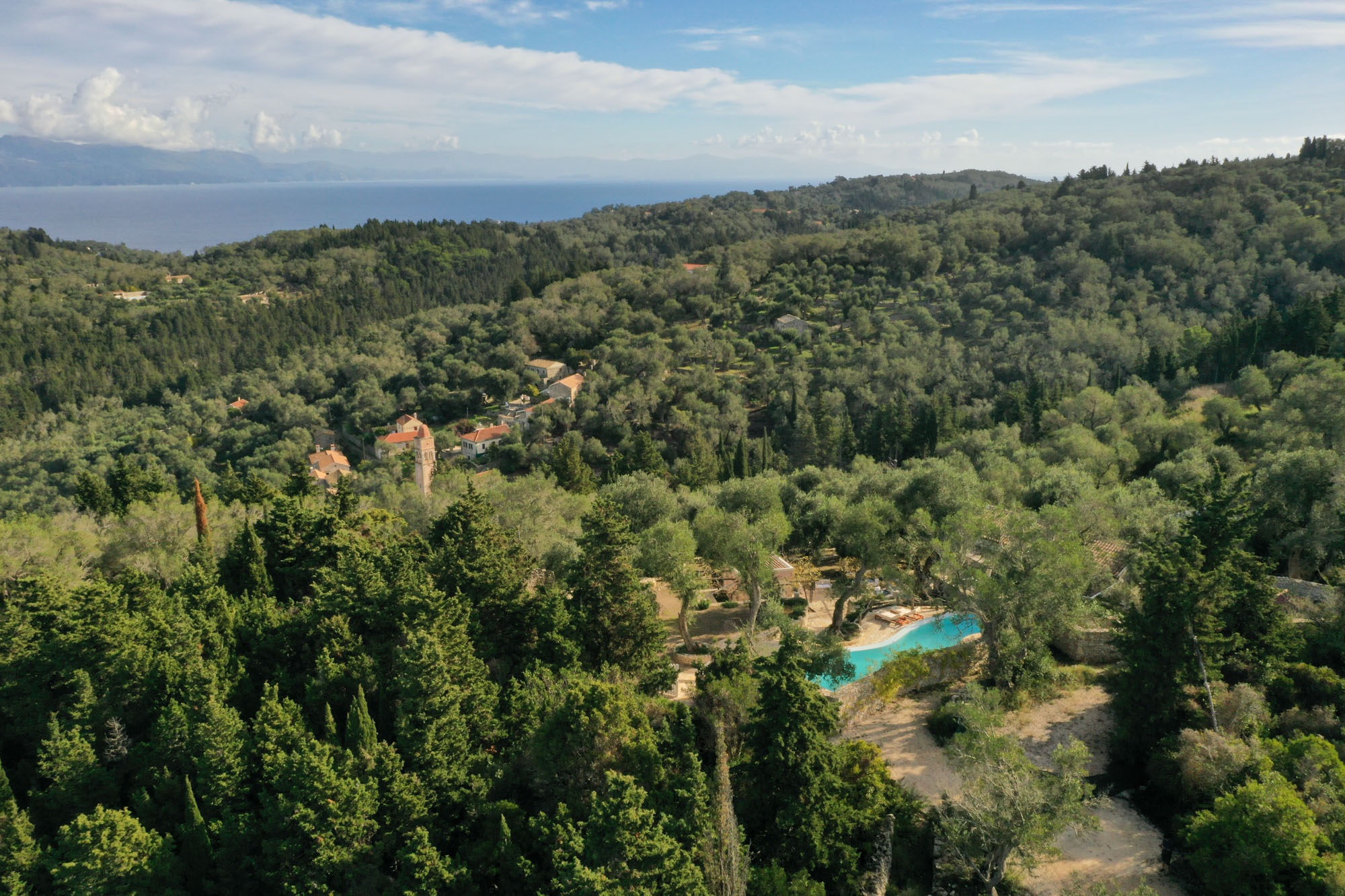 The villa takes its name from the nearby ancient family church and boasts 180-degree views of the island’s countryside, the sea, and the distant mountains of Epirus. Perched above the west coast cliffs, just a short walk from stunning sunsets, the villa offers breathtaking scenery and is a perfect retreat for those seeking a peaceful escape.