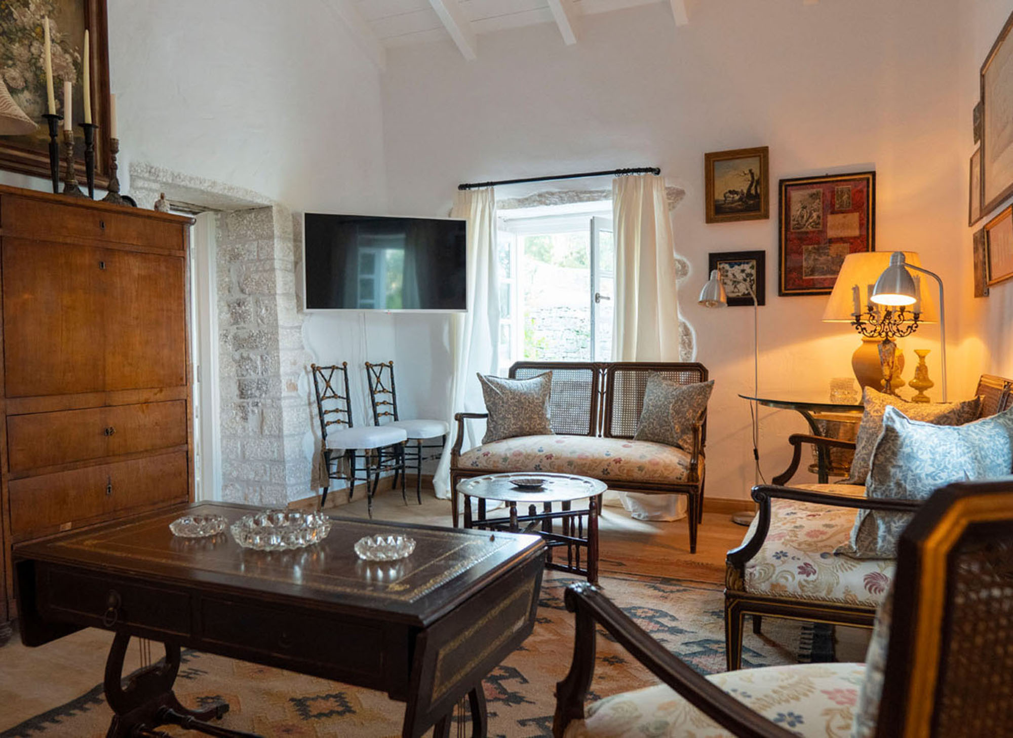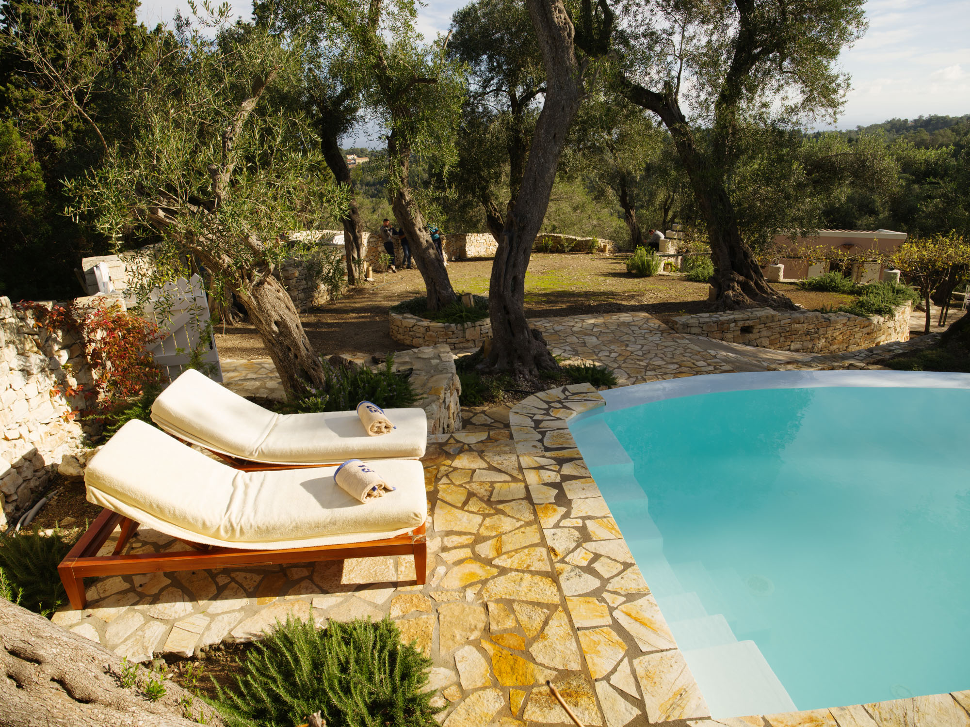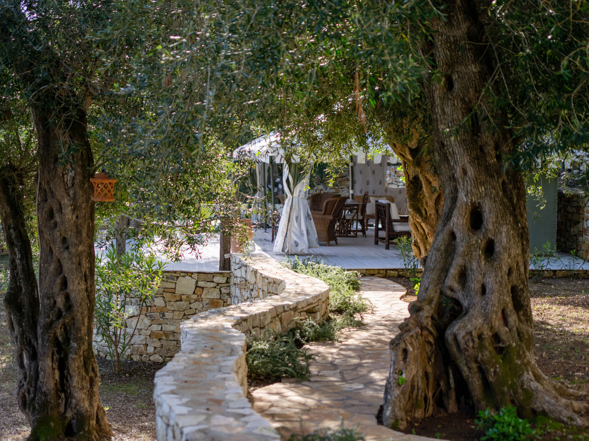 The villa takes its name from the nearby ancient family church and boasts 180-degree views of the island’s countryside, the sea, and the distant mountains of Epirus. Perched above the west coast cliffs, just a short walk from stunning sunsets, the villa offers breathtaking scenery and is a perfect retreat for those seeking a peaceful escape.