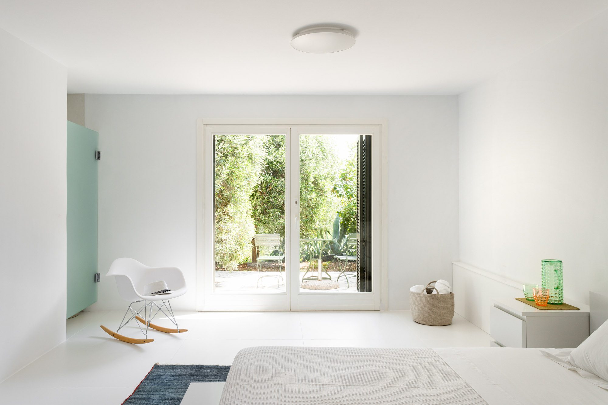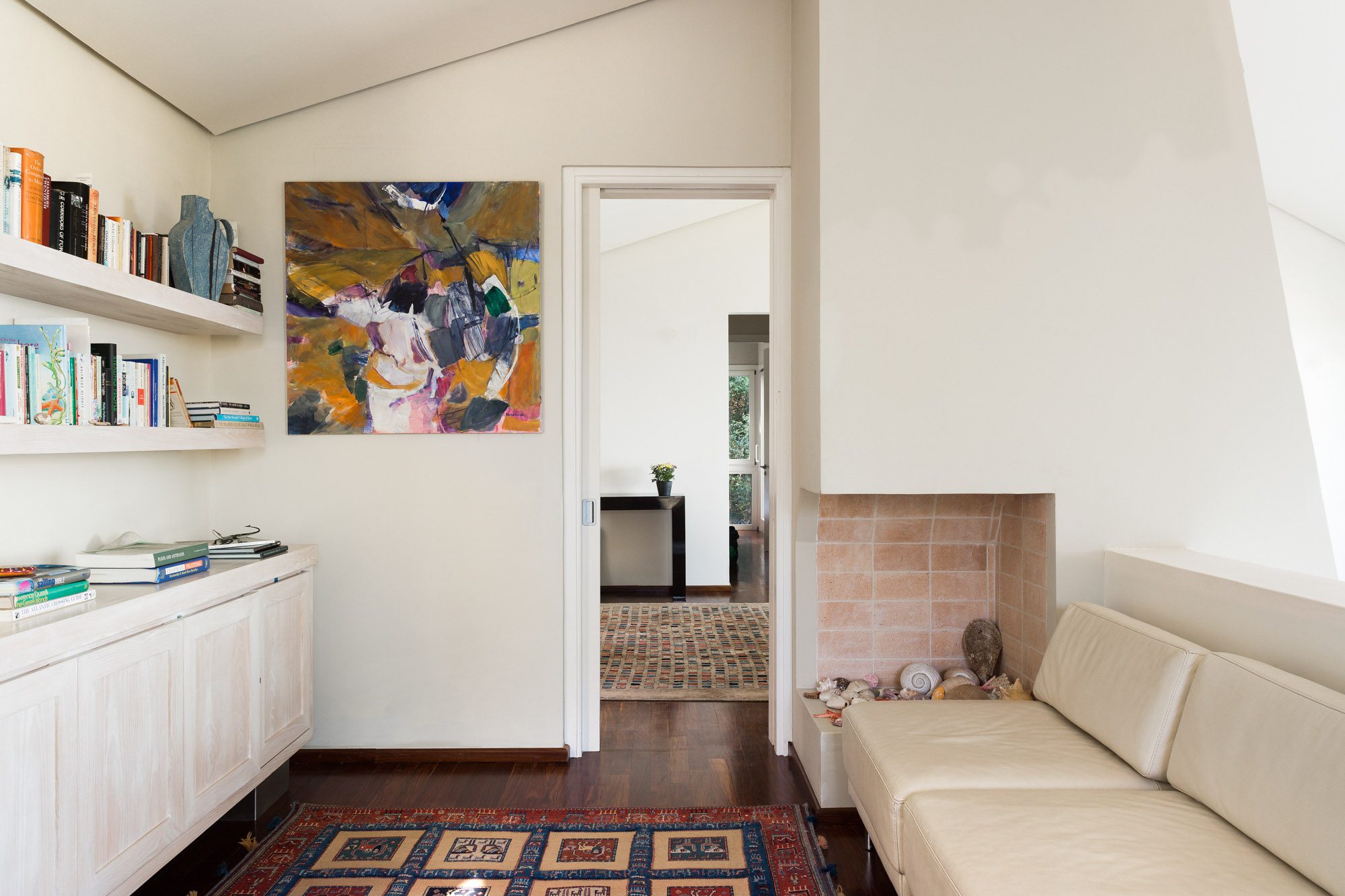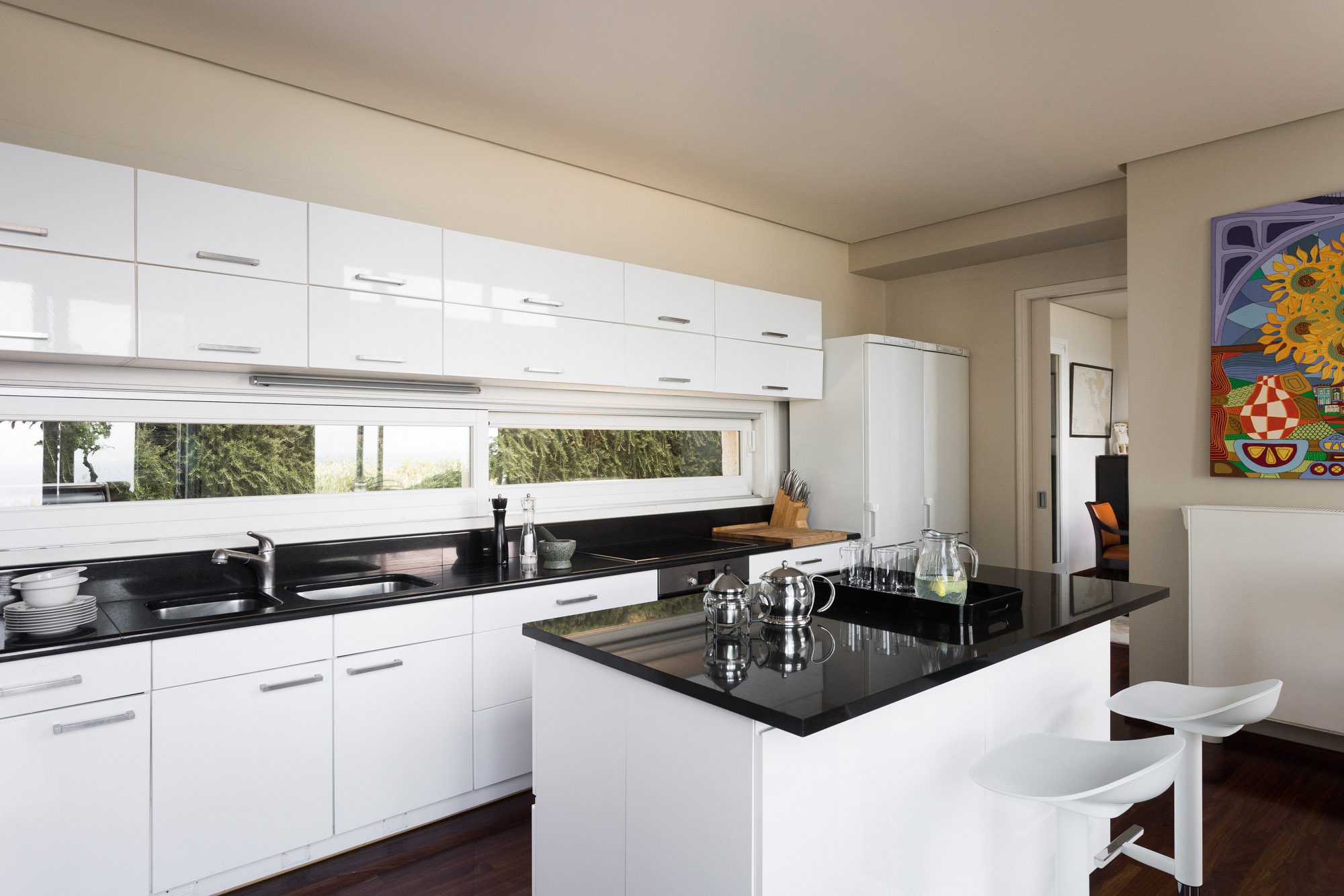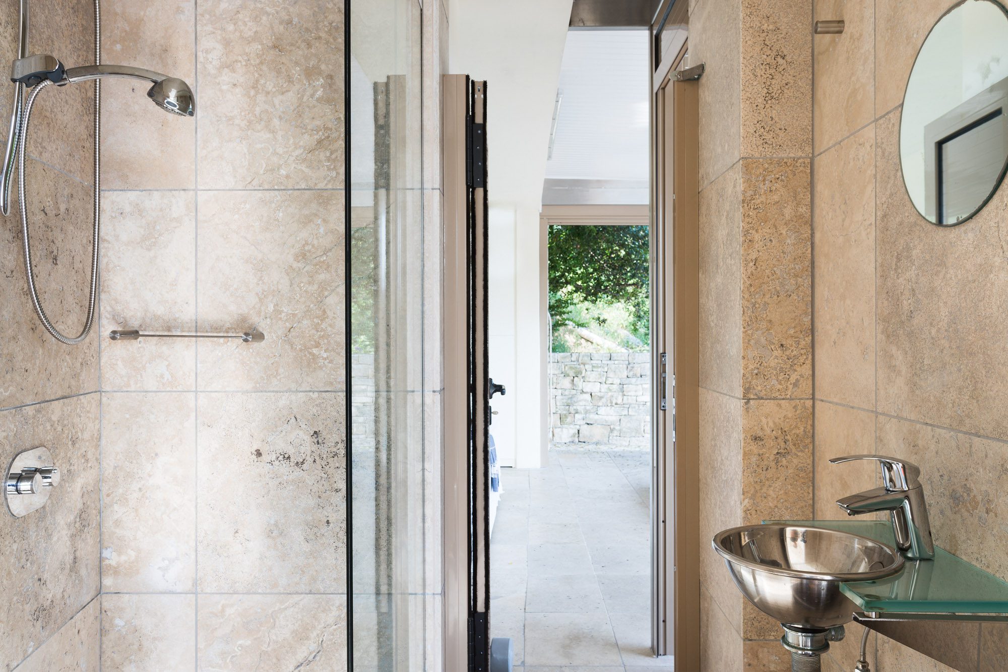 The interiors are chic and minimalist, decorated in neutral colours, with modern art adorning the walls and sleek contemporary furniture. The bedrooms are split across the main house and annexe; below the house is a gym, and one of the bedrooms is perfect for teenagers. There's also a study and a well-equipped kitchen.