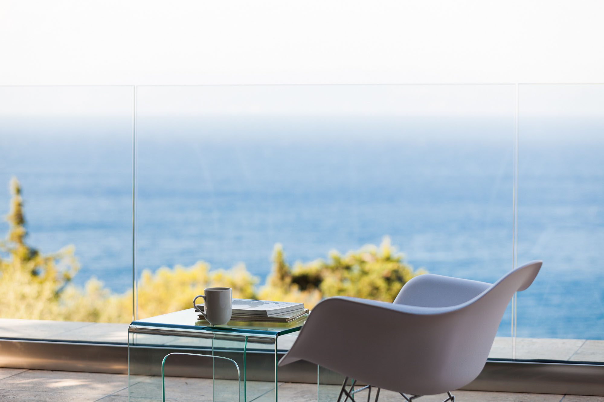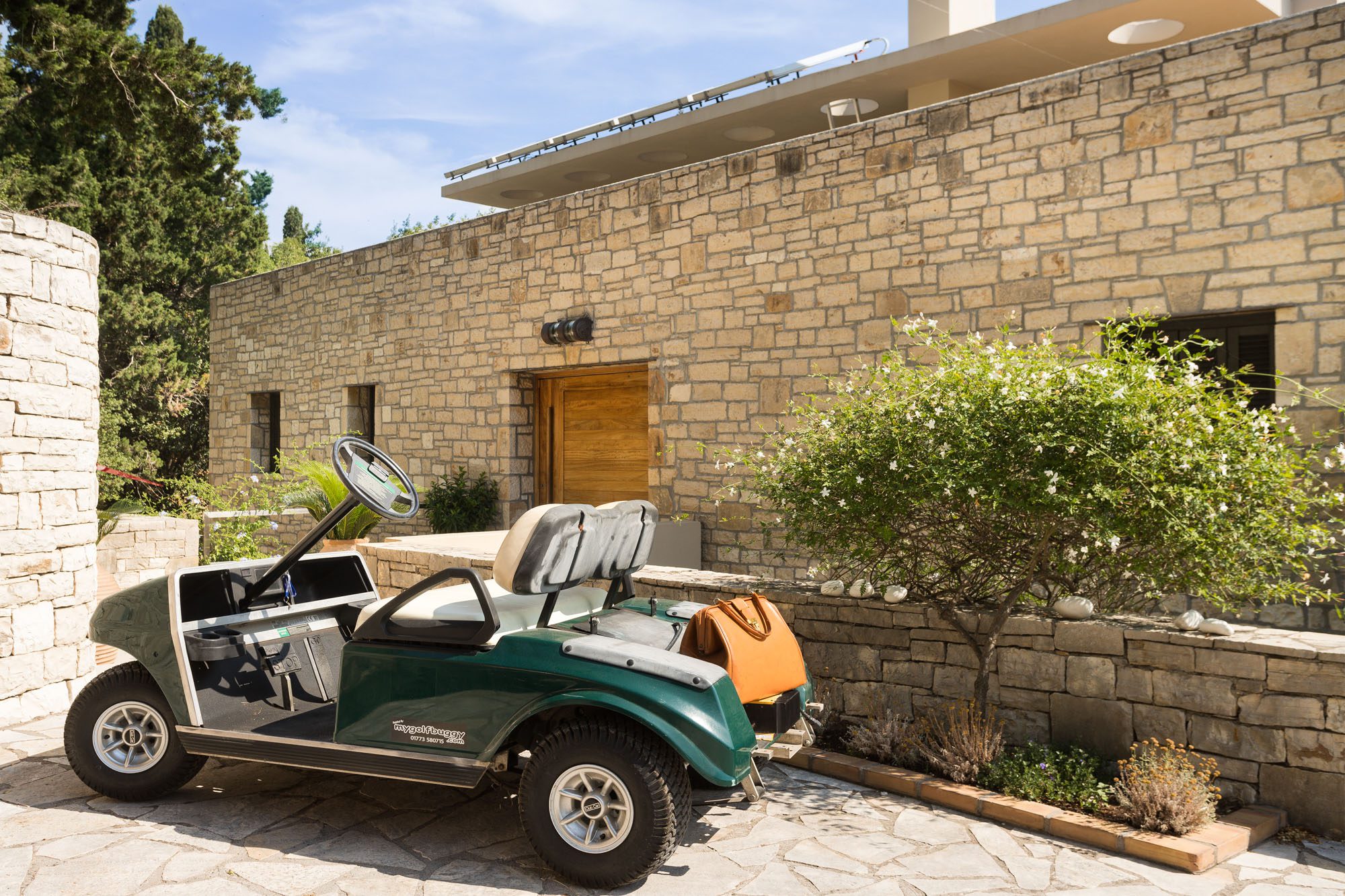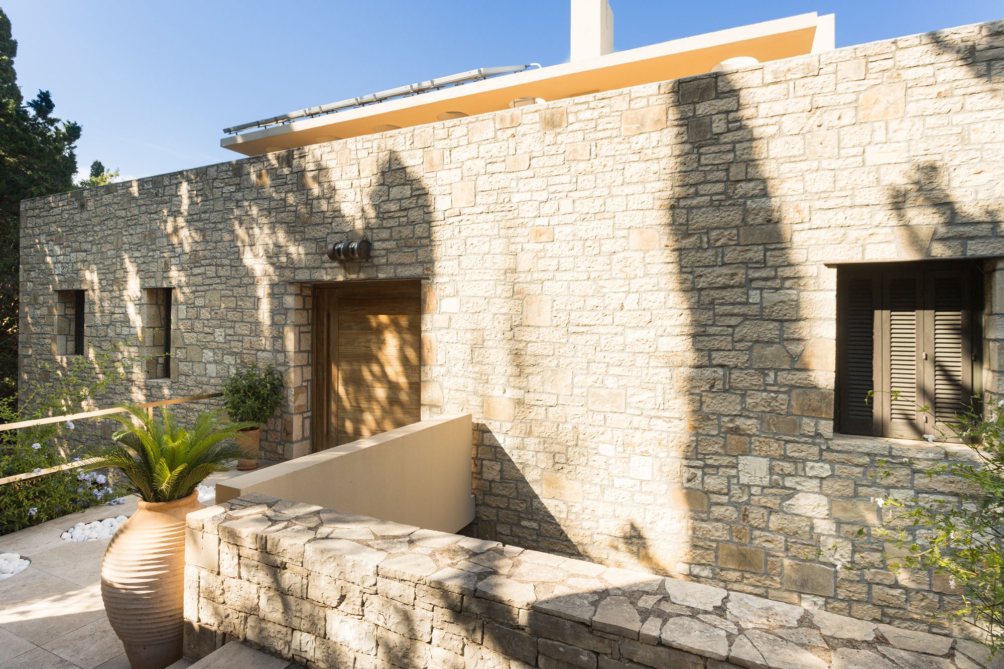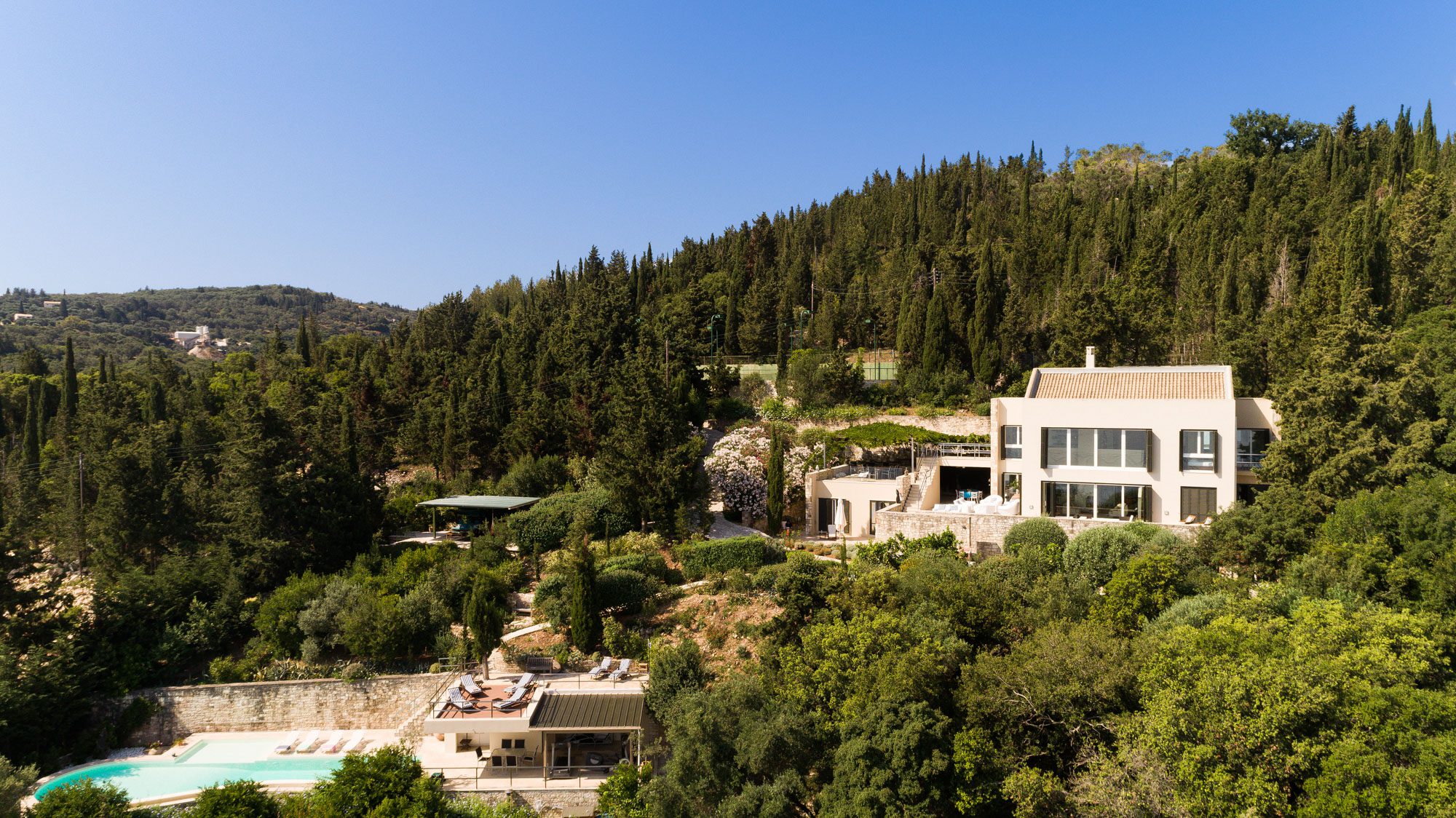 It's in a secluded spot on the east coast of Paxos but just a short drive to the villages of Loggos and Lakka. You can wander down the hillside path, ending in steps, to your own secluded cove with crystal blue waters and a little beach.