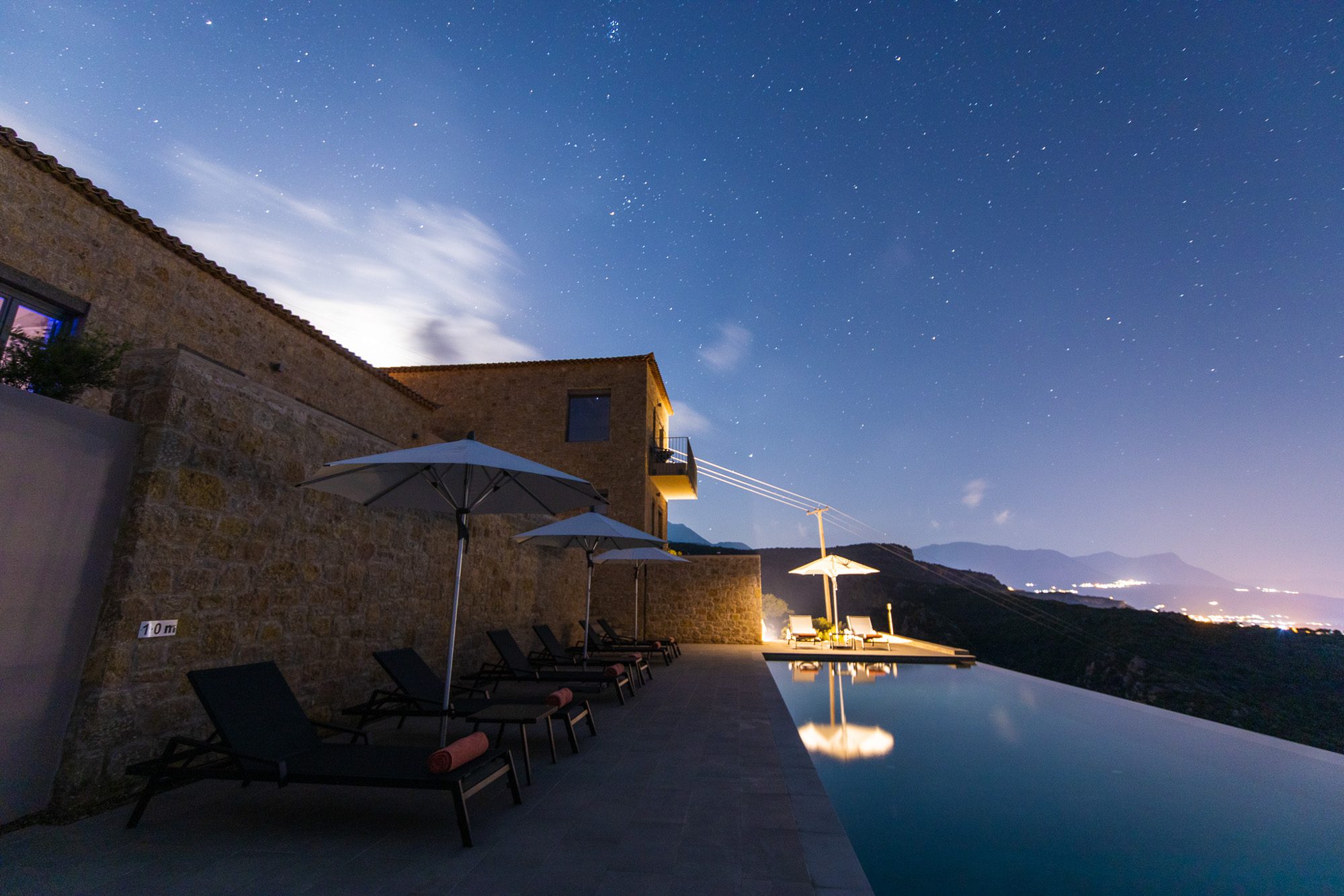 Just a five-minute drive from Kardamyli, one of the Peloponnese's most picturesque villages, guests can enjoy charming local shops and traditional tavernas in an inviting, authentic Greek setting. Each October, the Kardamyli Literary Festival adds a unique cultural draw, attracting writers and readers from around the world. For beachgoers, the nearest beaches—Kalamitsiou and Foneas—are within five minutes by car, offering crystal-clear waters and scenic spots to unwind.