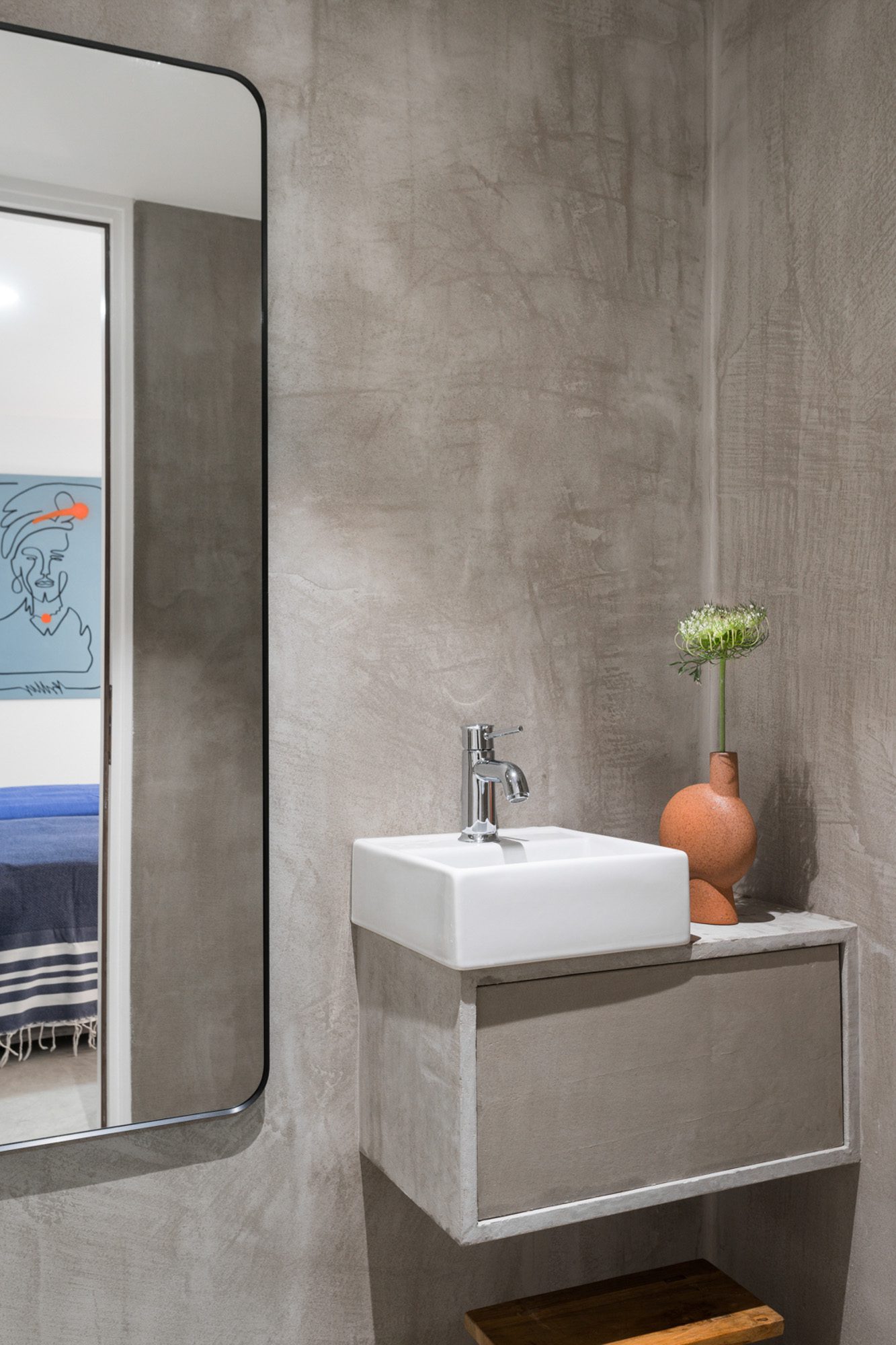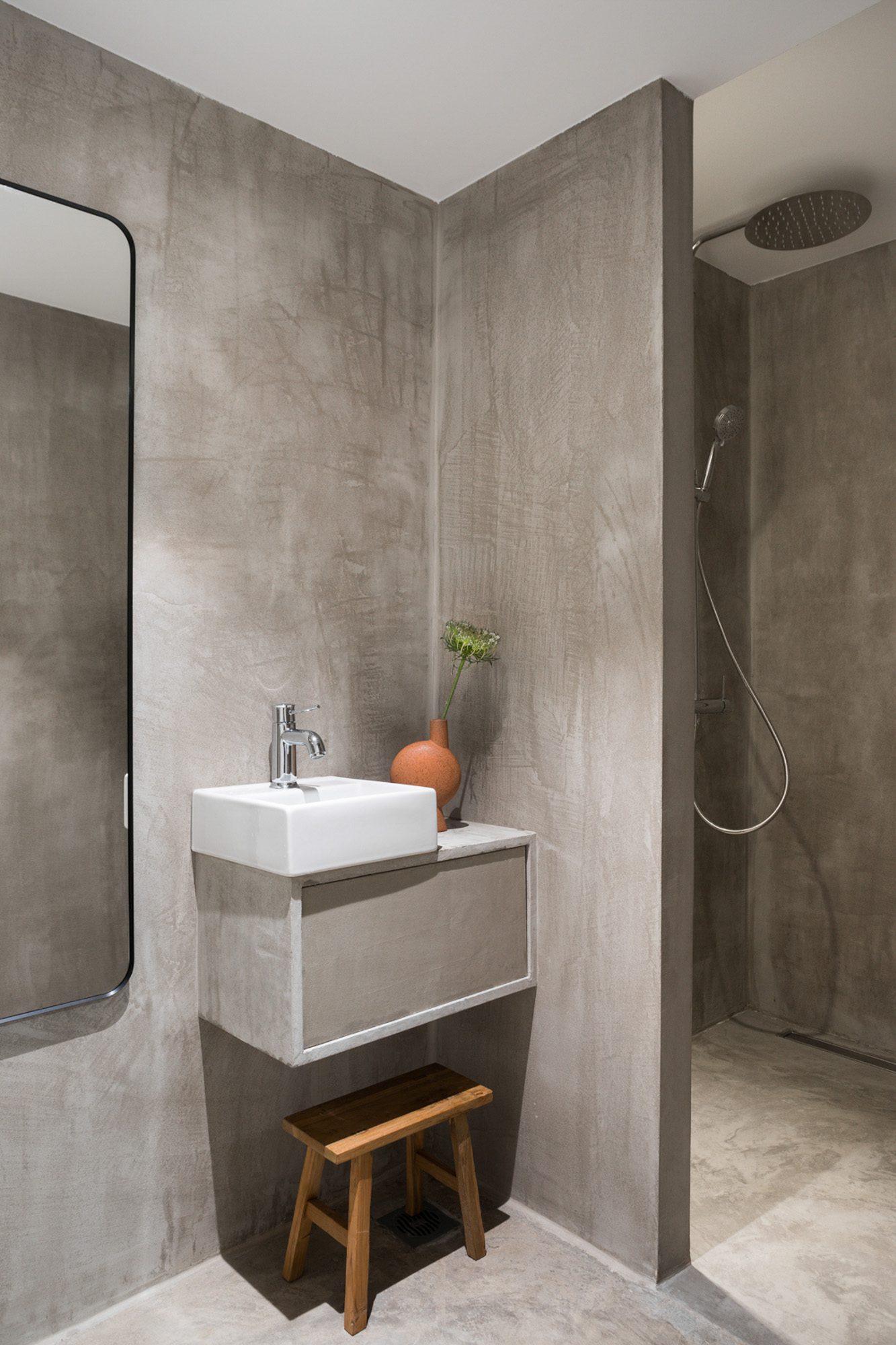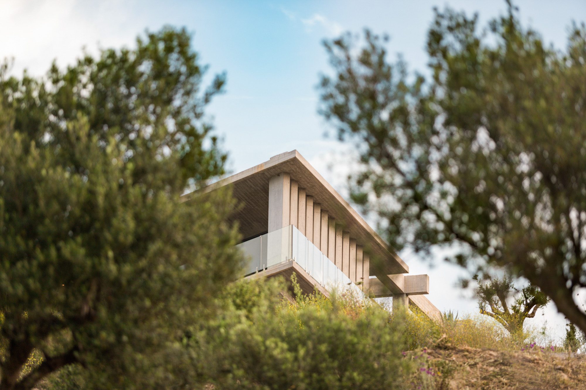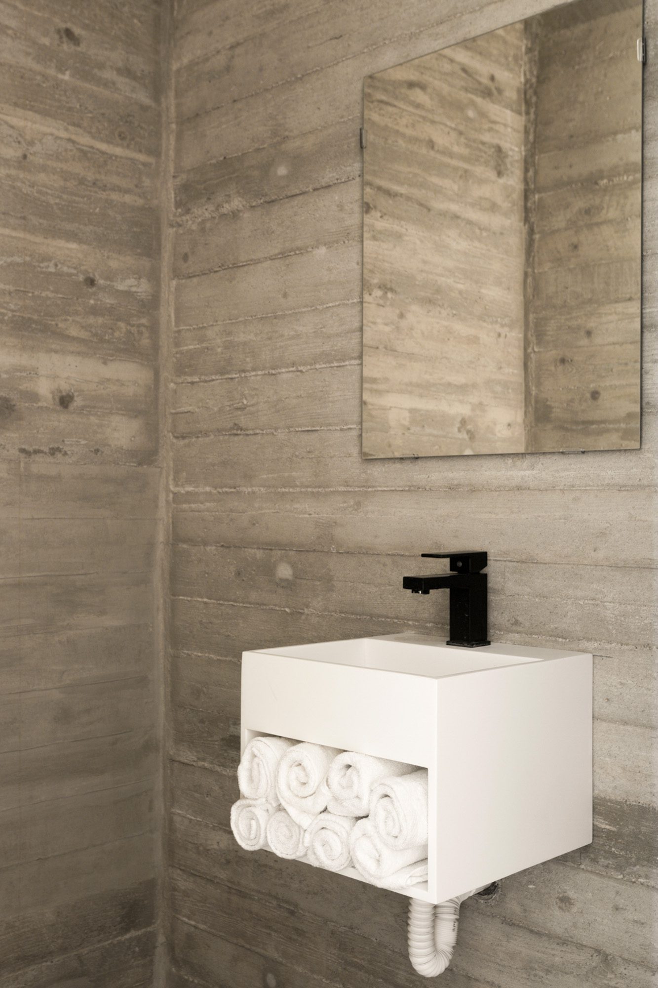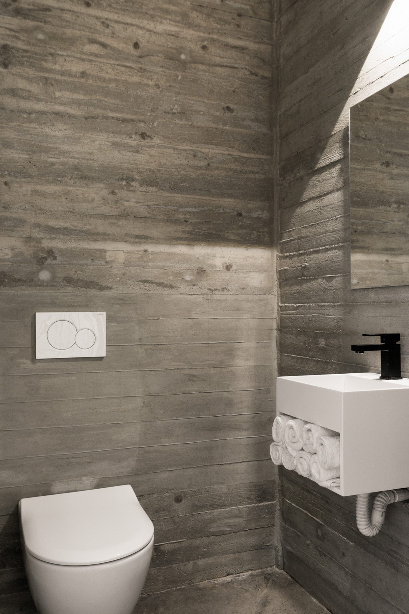 Three bedrooms are on the main floor, all with huge windows and access to the terrace. A further en suite bedroom is on the lower floor. The capacious open-plan living area has a TV end with big floor cushions, a separate sitting area with comfortable sofas, a dining space and a fitted kitchen. Floor-to-ceiling windows maximise the views and give a feeling of connecting with the landscape.