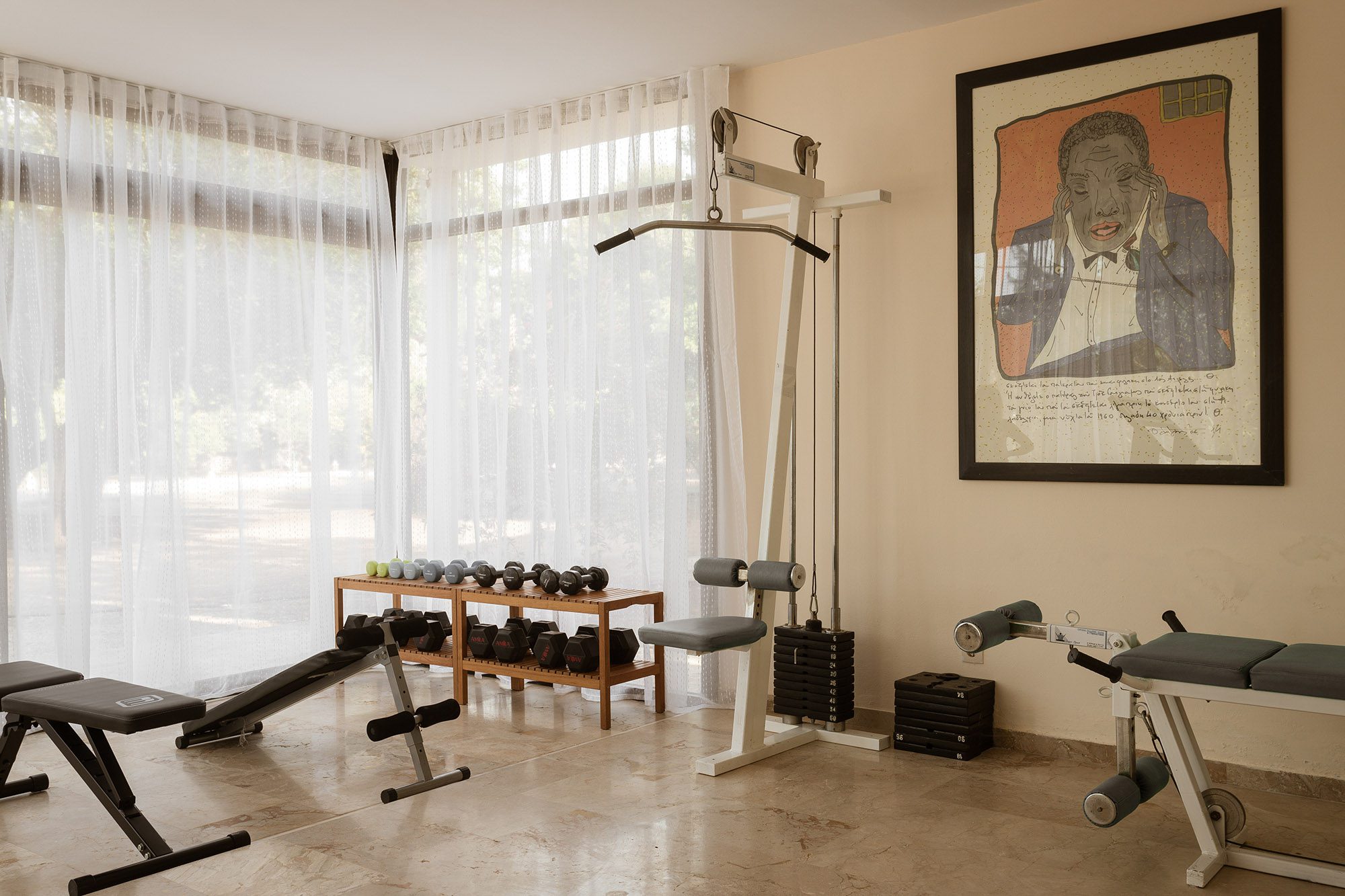 The bedrooms are split across two levels: the main house, with two independent suites on the ground floor and the master on the upper level, as well as three independent suites. There's also a well-equipped gym with a view and airy living and dining rooms—all with large glass doors that maximise natural light.