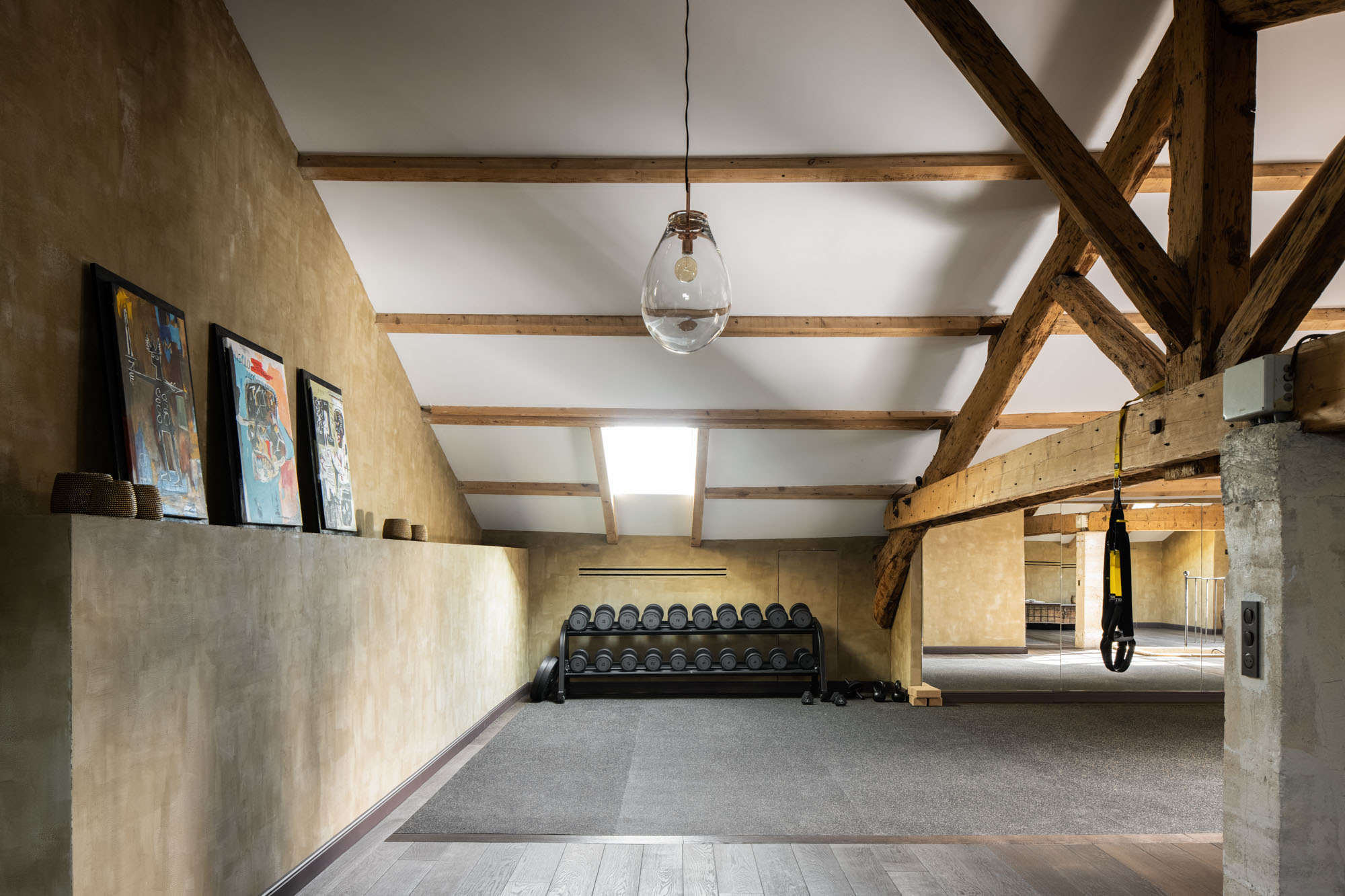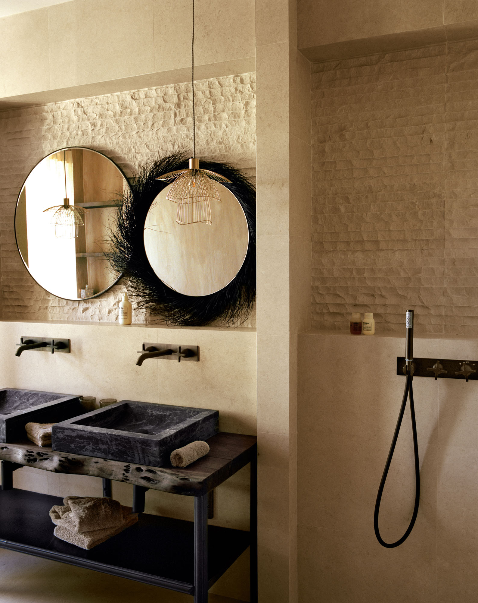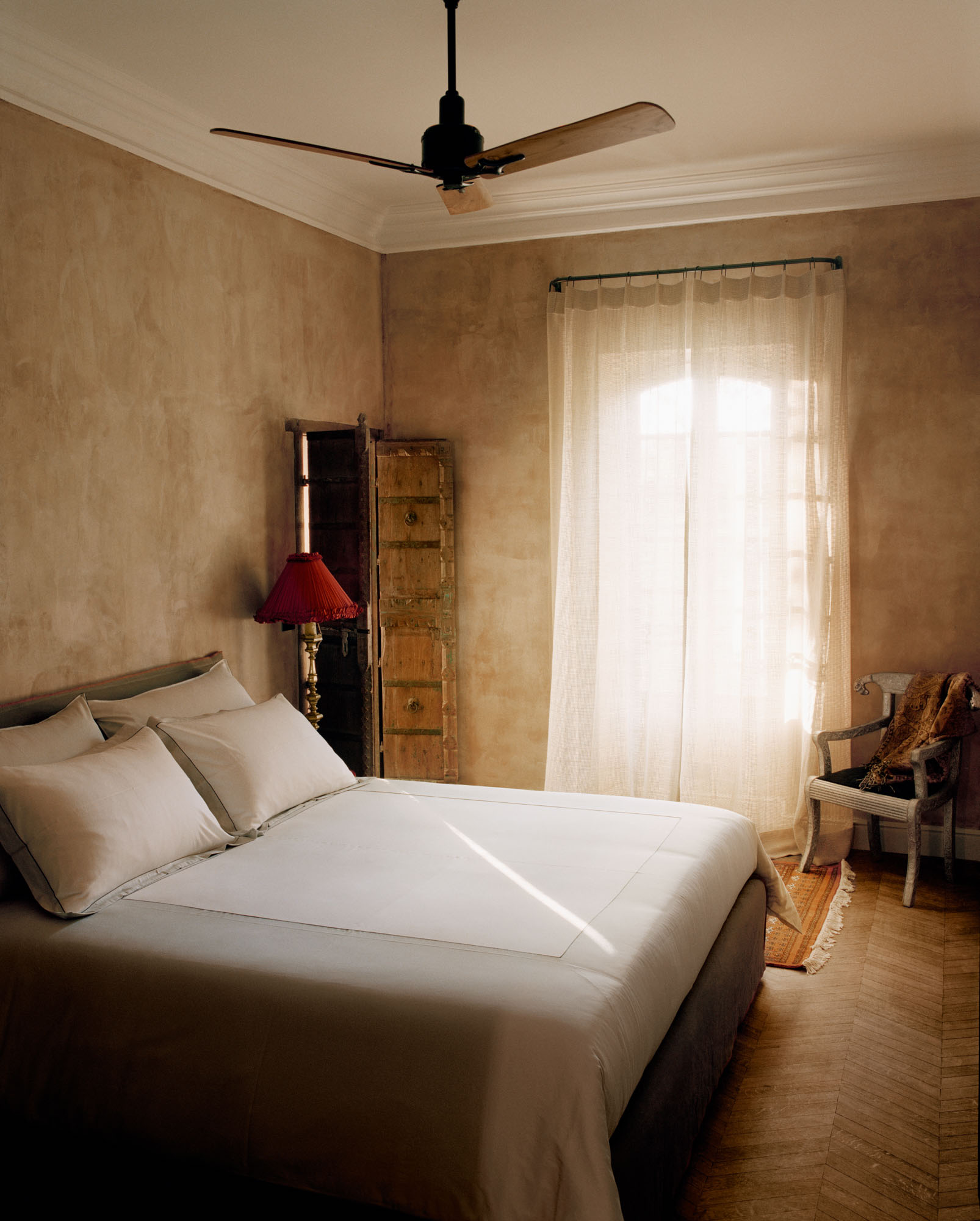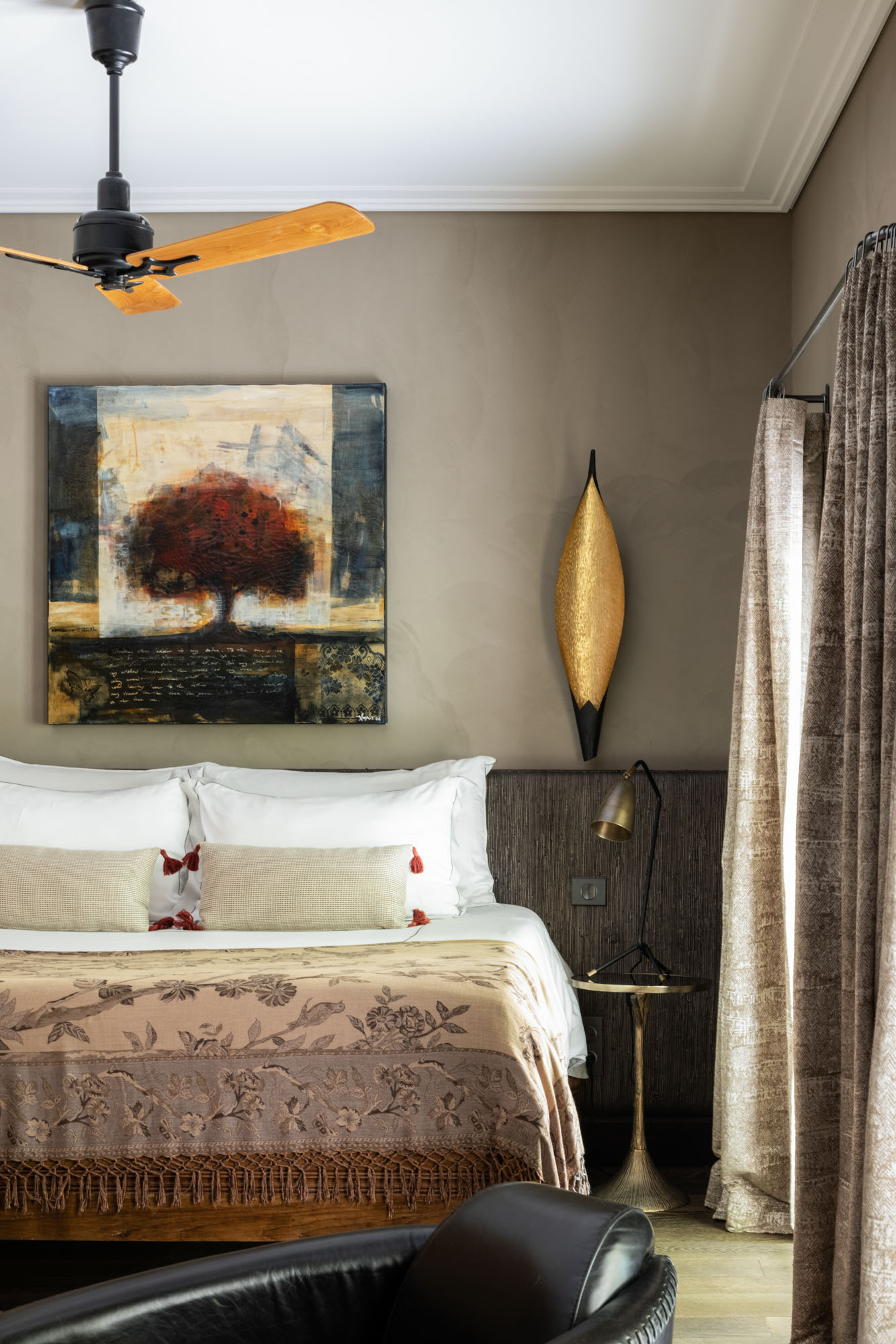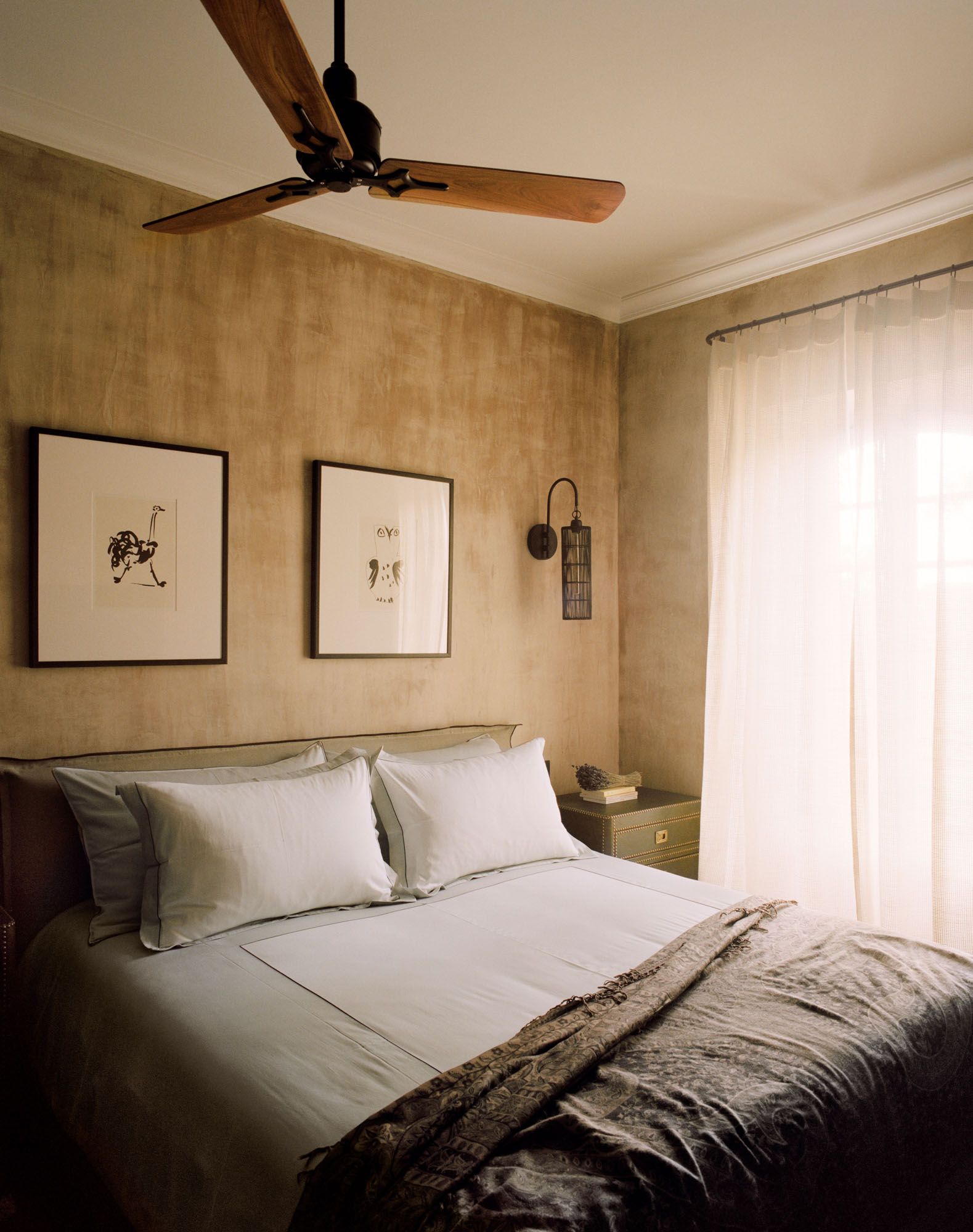 Throughout the house, you will find artwork collected over the years. There's a large living room with soaring vaulted stone ceilings, two fully equipped kitchens, one with a breakfast bar and the other with a formal dining space, and bedrooms with Pierre Frey fabrics and large shuttered windows.