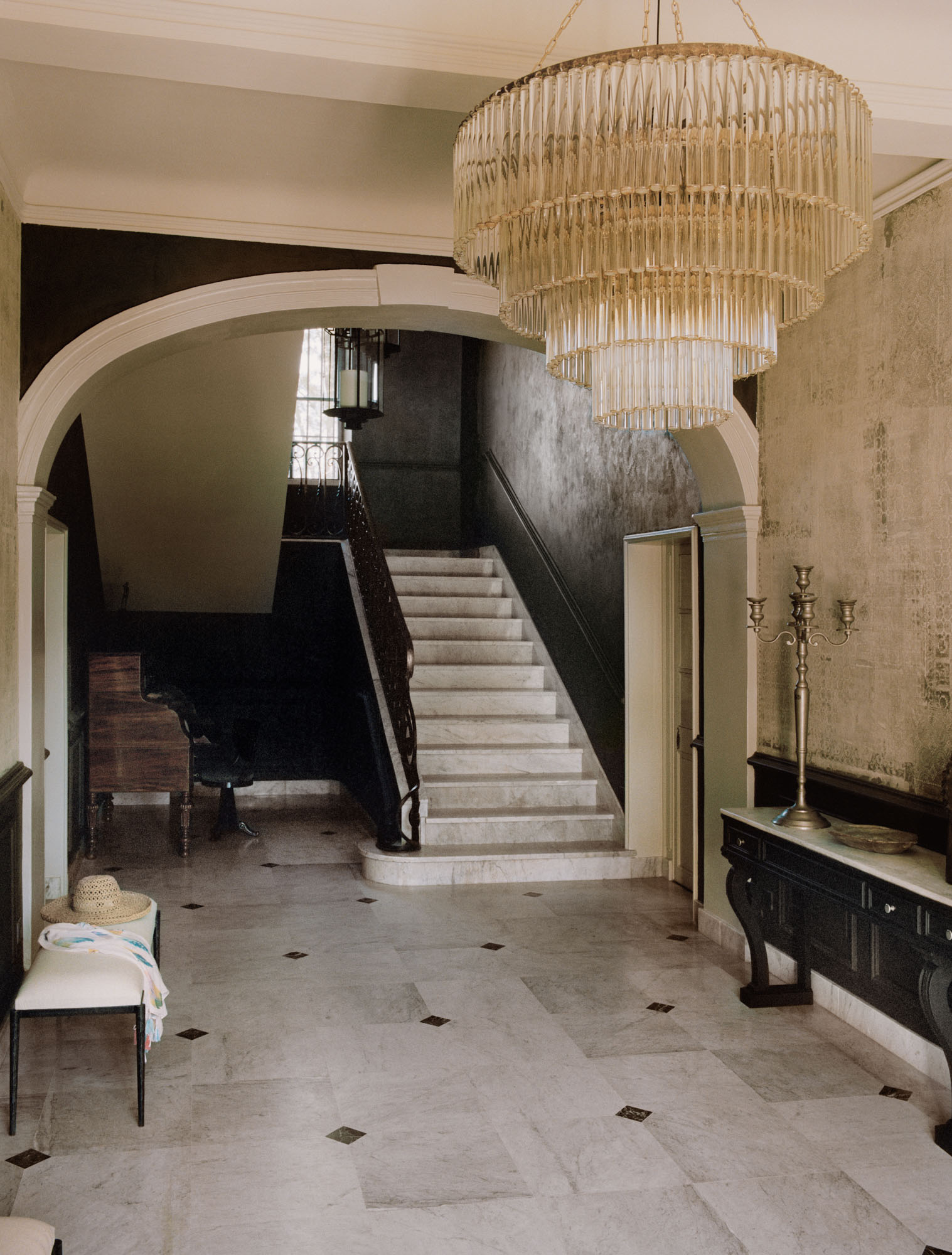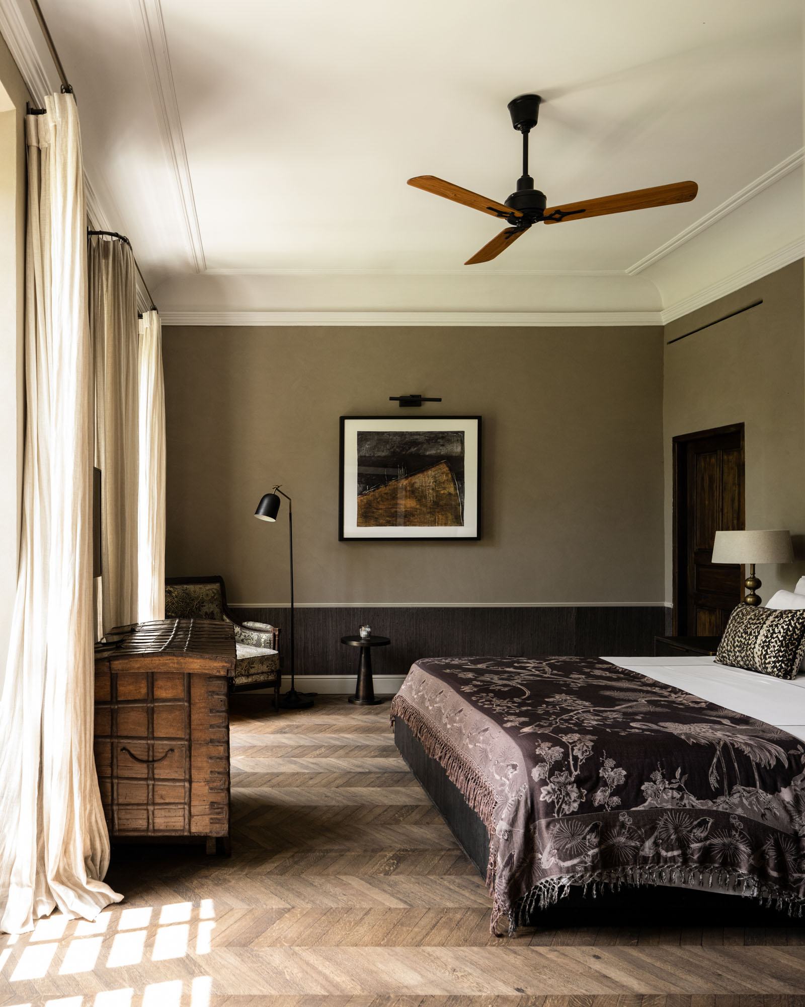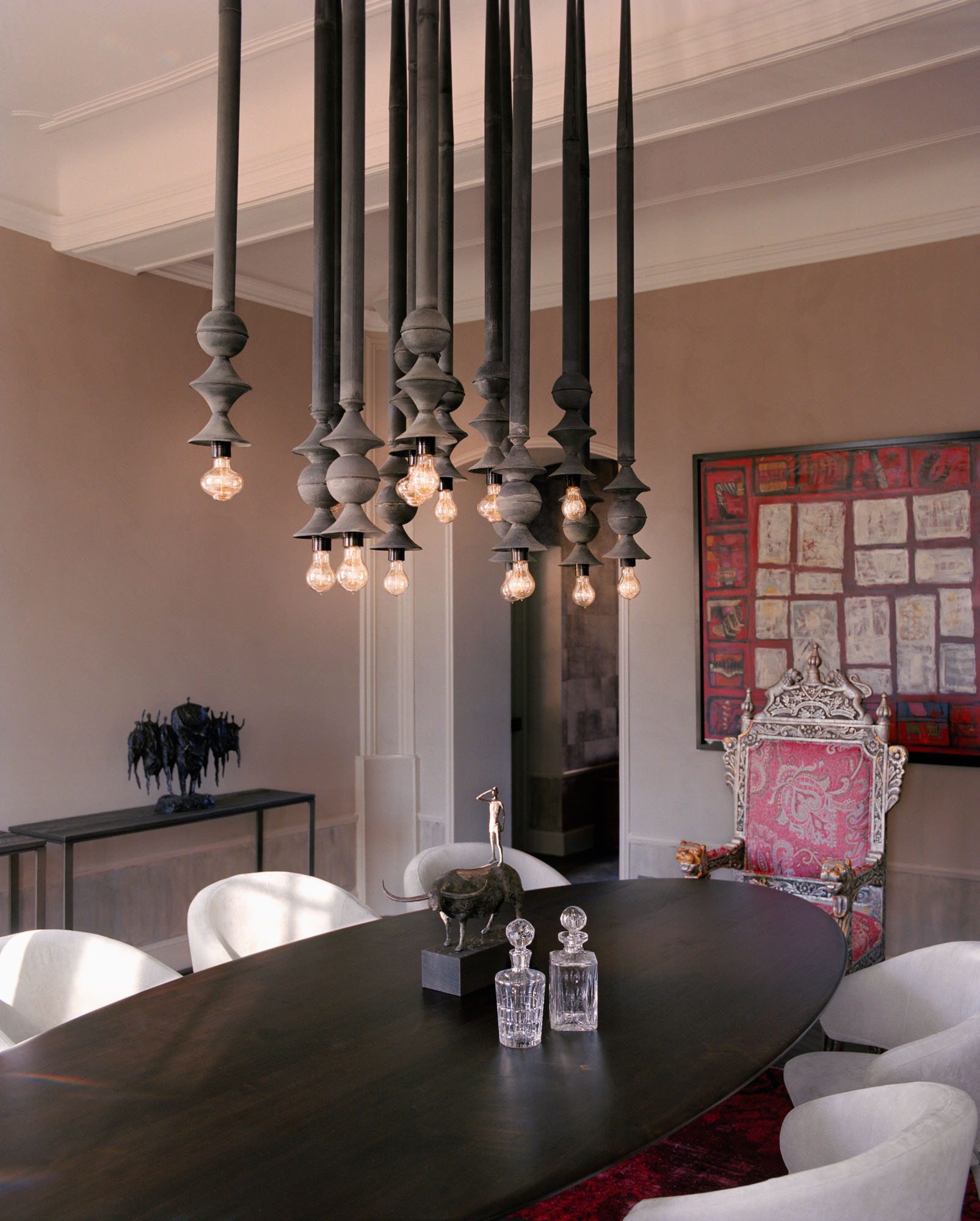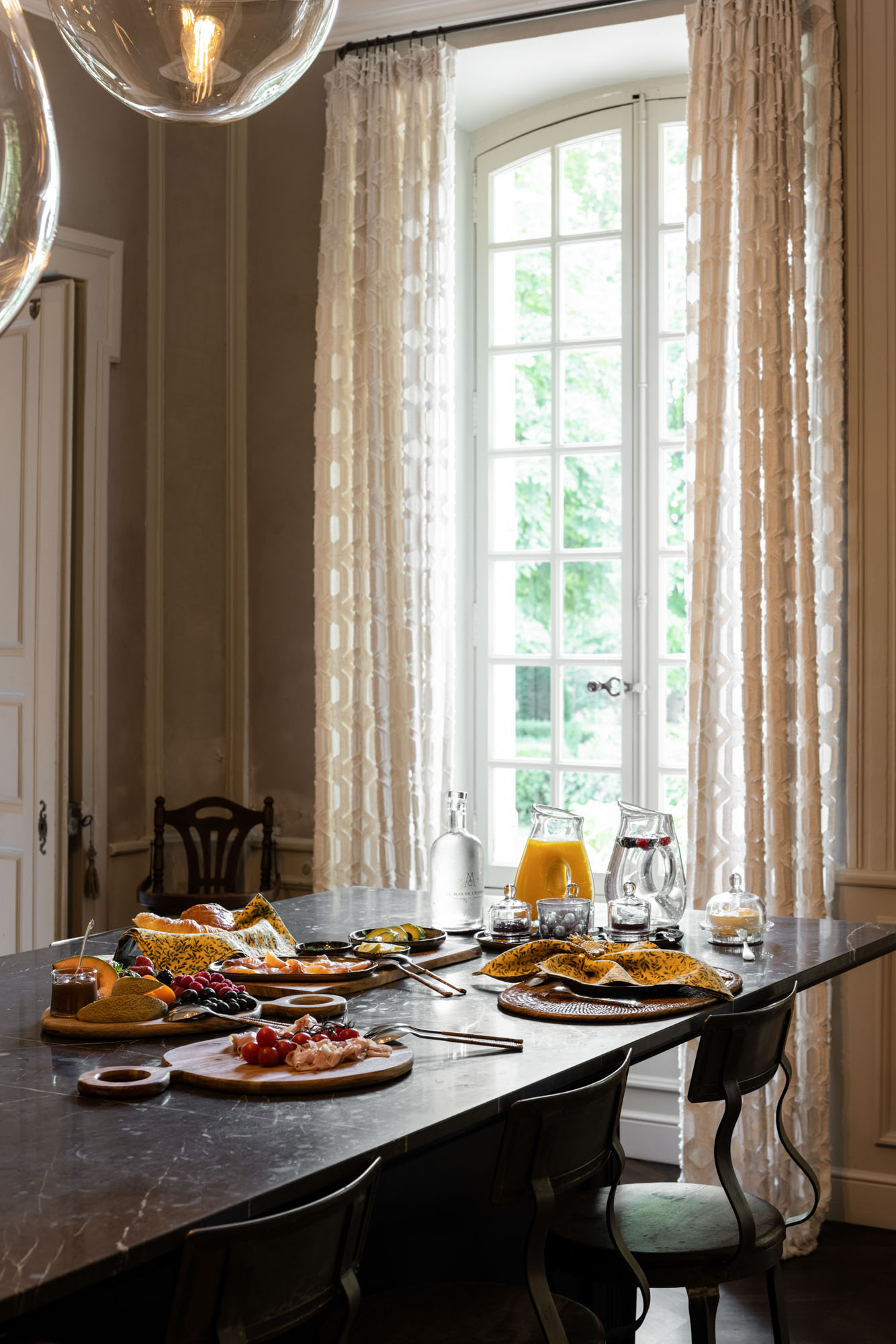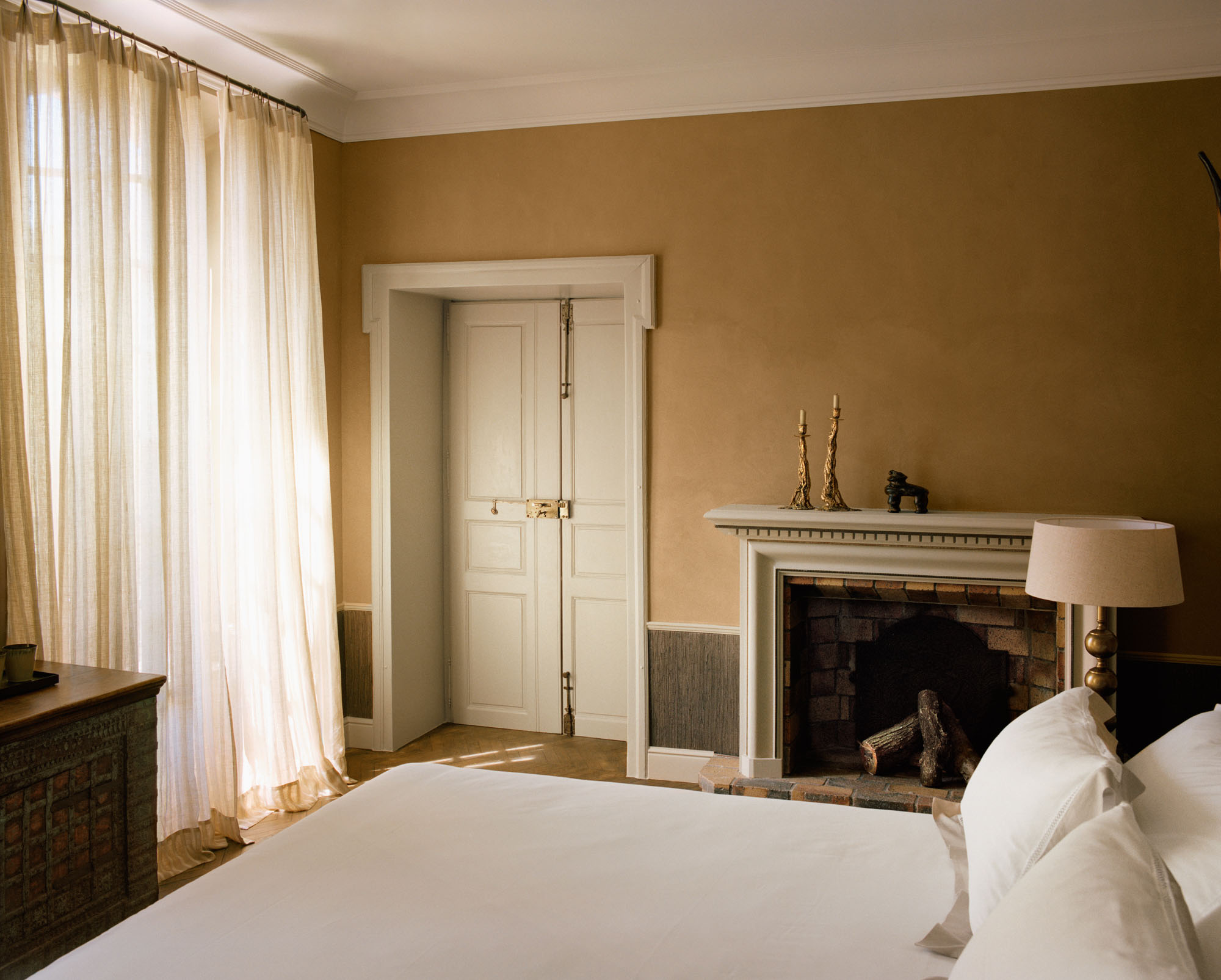 Throughout the house, you will find artwork collected over the years. There's a large living room with soaring vaulted stone ceilings, two fully equipped kitchens, one with a breakfast bar and the other with a formal dining space, and bedrooms with Pierre Frey fabrics and large shuttered windows.