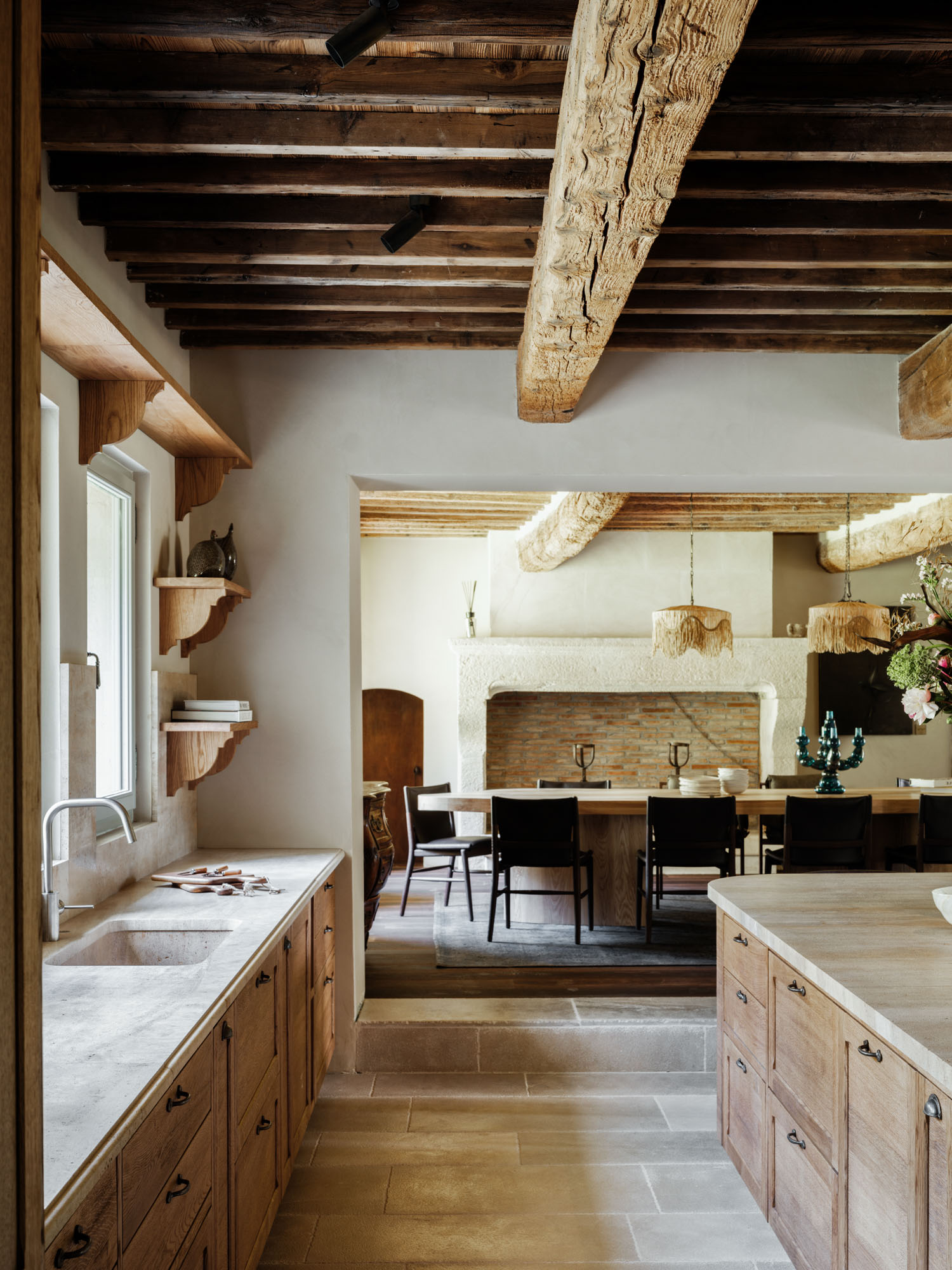 The design embraces natural materials, creating a harmonious and inviting atmosphere. With seven bedrooms, each featuring en suite bathrooms and dressing rooms, every room has its own unique, soothing style, ensuring a calm retreat for all.