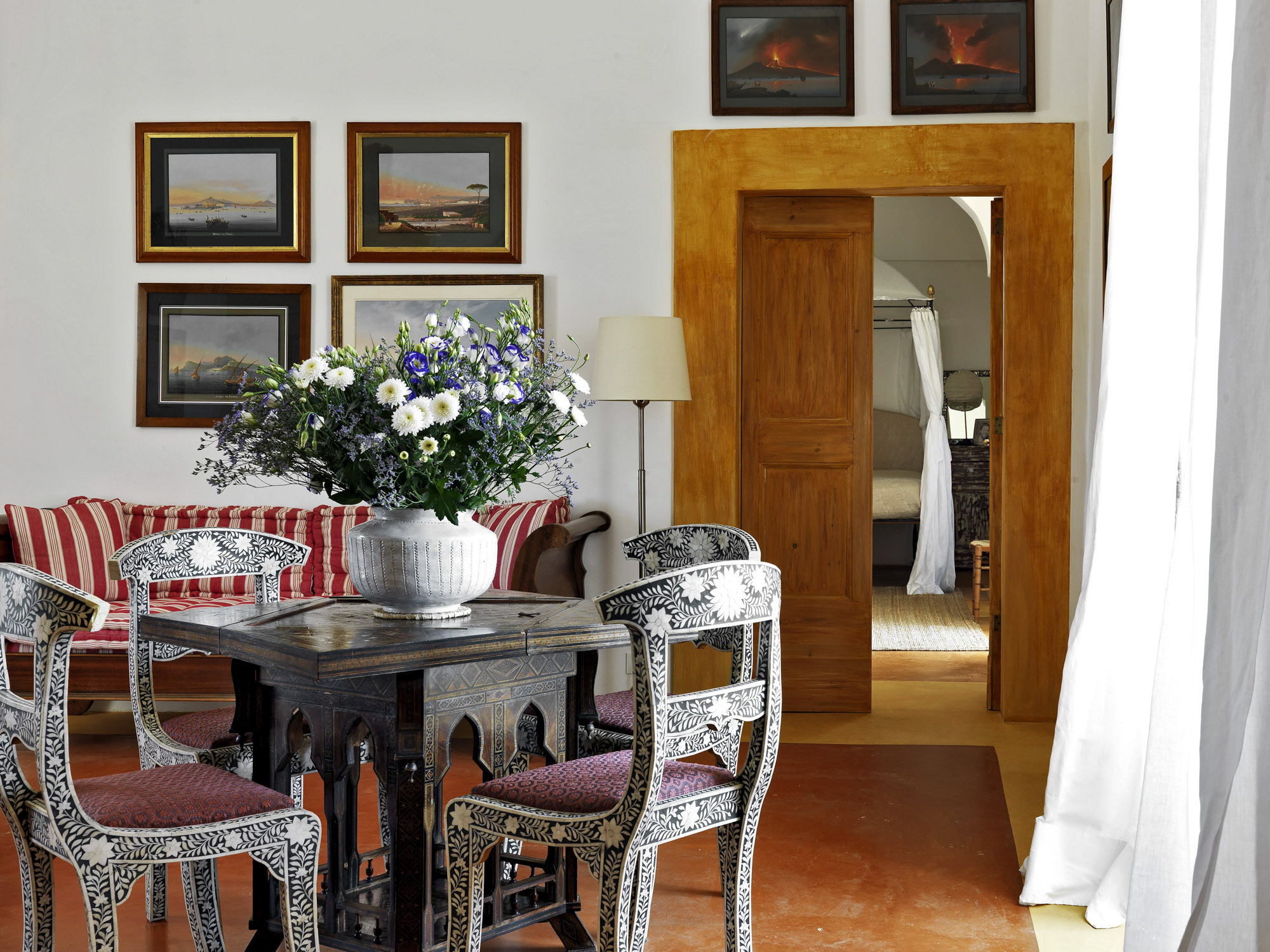 The various courtyards and terraces provide a variety of al fresco dining areas and places to sit and relax in the sun or shade. The black-lined pool, surrounded by green lawns and a stone terrace with sun beds, is a real highlight; you can swim via a canal to a large jacuzzi area for 10. There’s also a pool house with a kitchen, hammam, gym, showers and a dining terrace. This is a favourite spot to enjoy a delicious lunch.