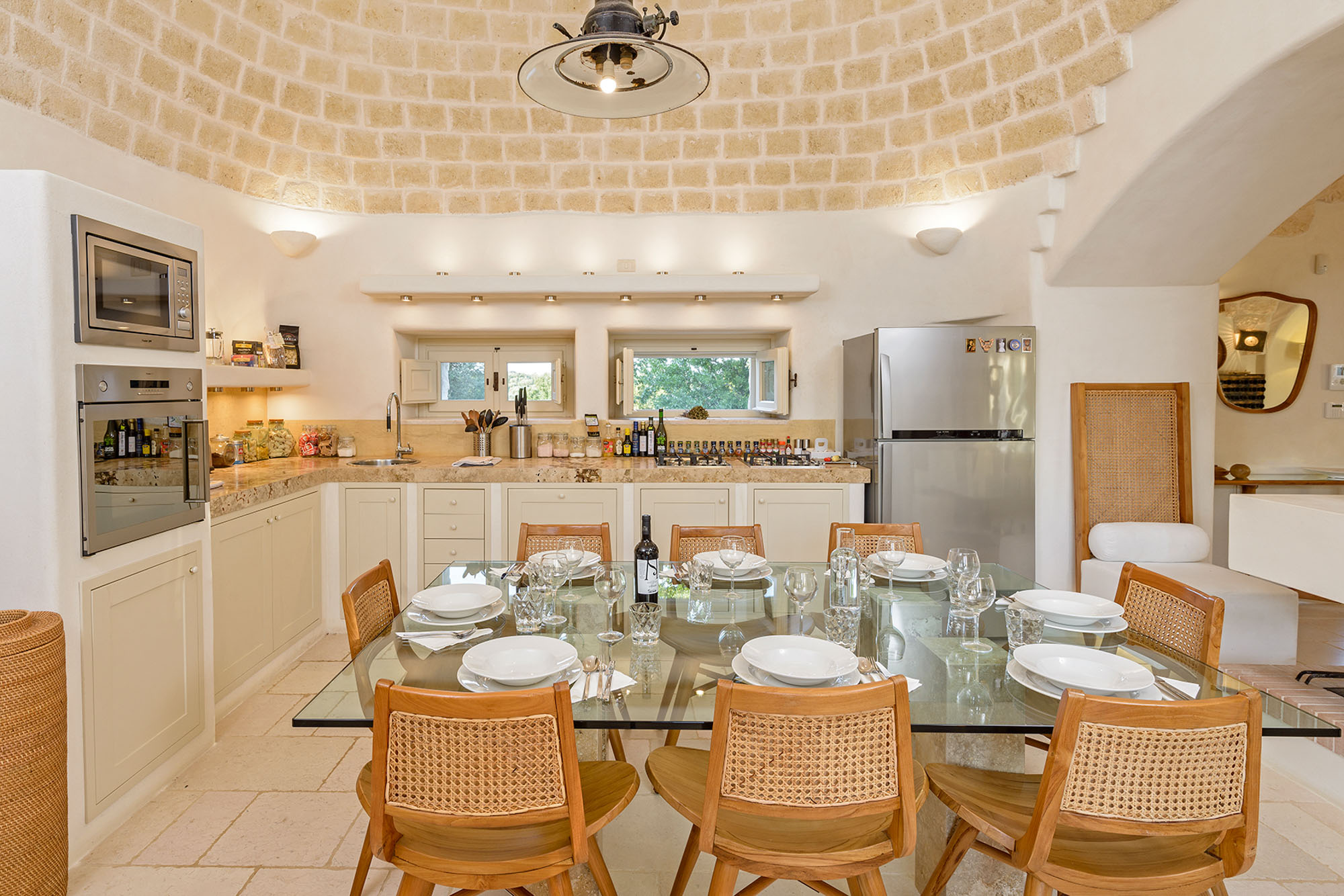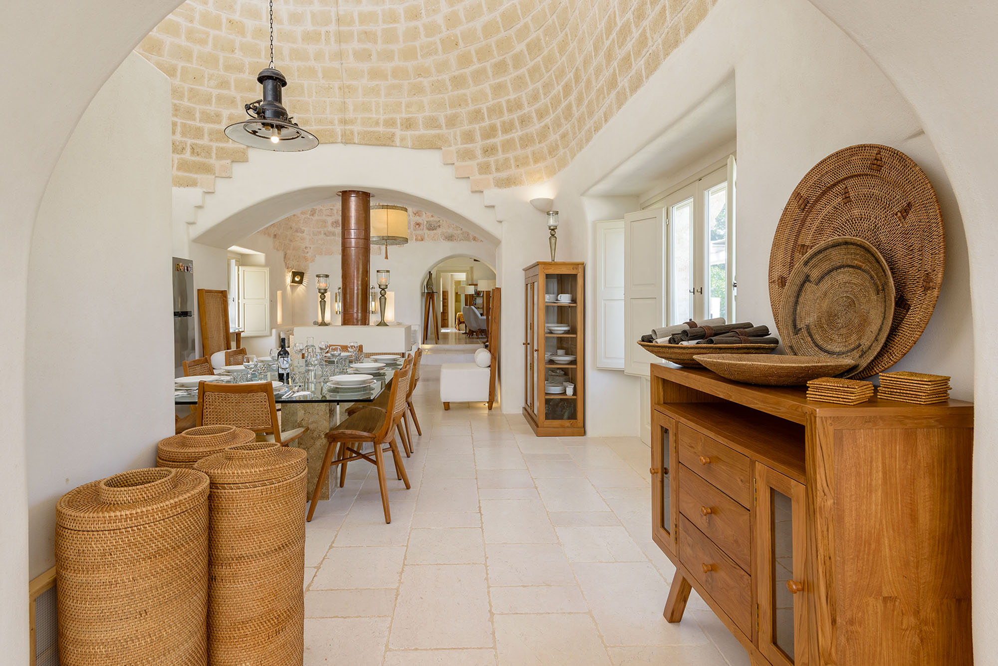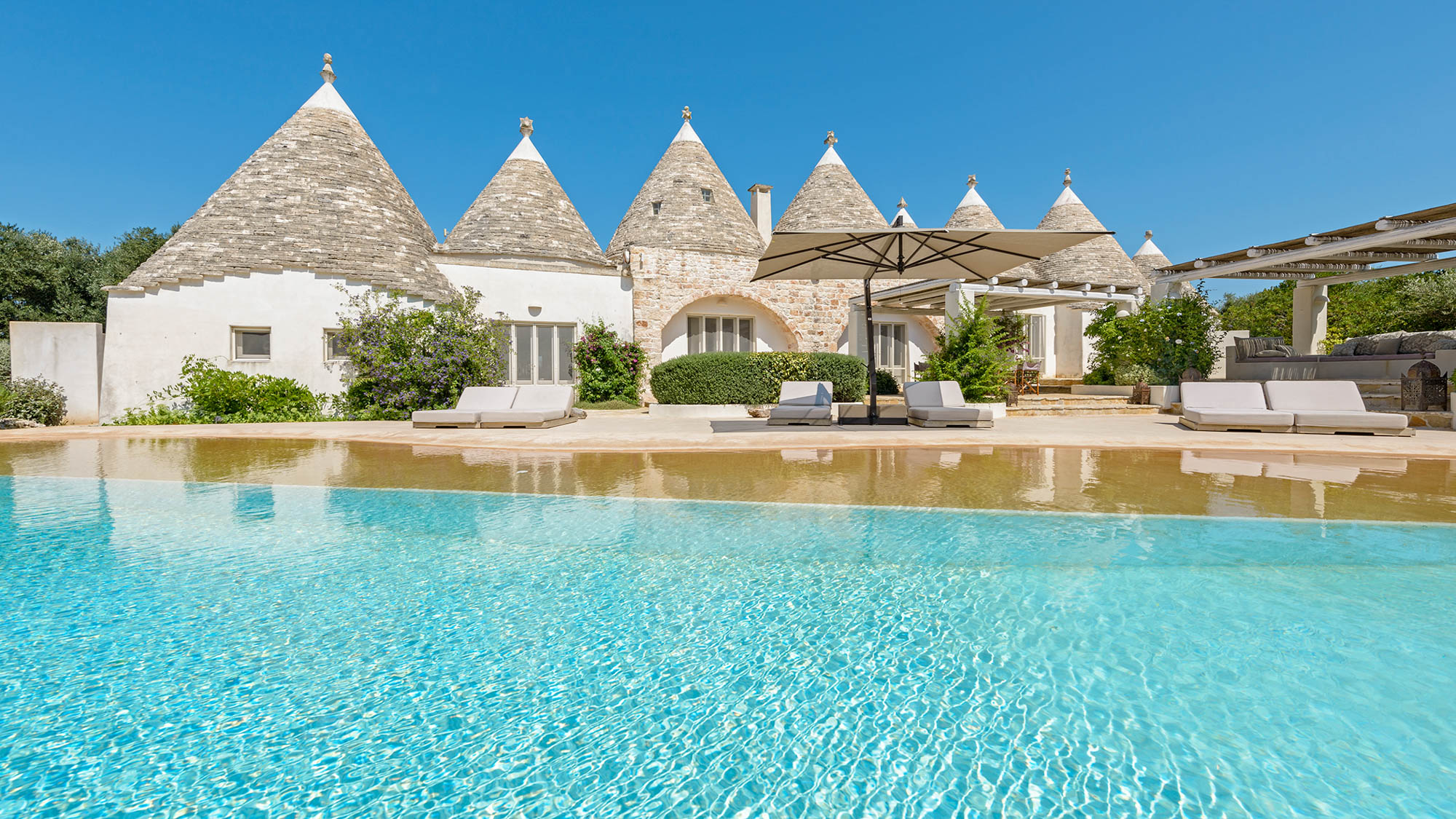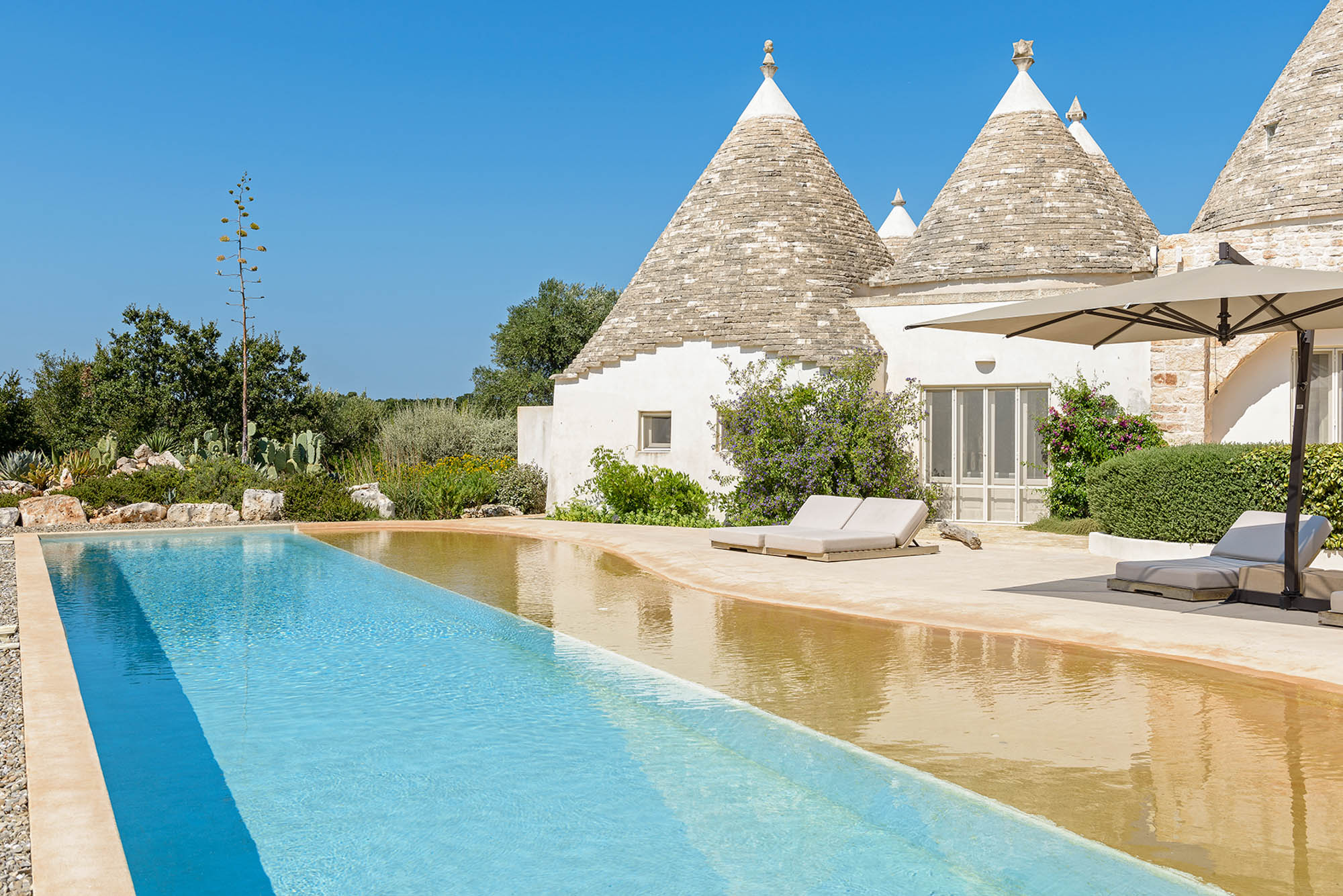The whitewashed hill towns of Ostuni, Ceglie Messapica, Cisternino, and Martina Franca are within easy reach and are renowned for their charm and exceptional cuisine. Several Michelin-starred restaurants are within 30 minutes, though local hidden gems rival even these. Guests have a choice of Adriatic beaches, about 25 minutes away, or Ionian beaches, around 40 minutes away, each with clear waters, sand dunes, and beachside dining. Lecce’s Baroque architecture, the Roman ruins at Egnazia, and historic coastal cathedrals are all nearby for cultural excursions.