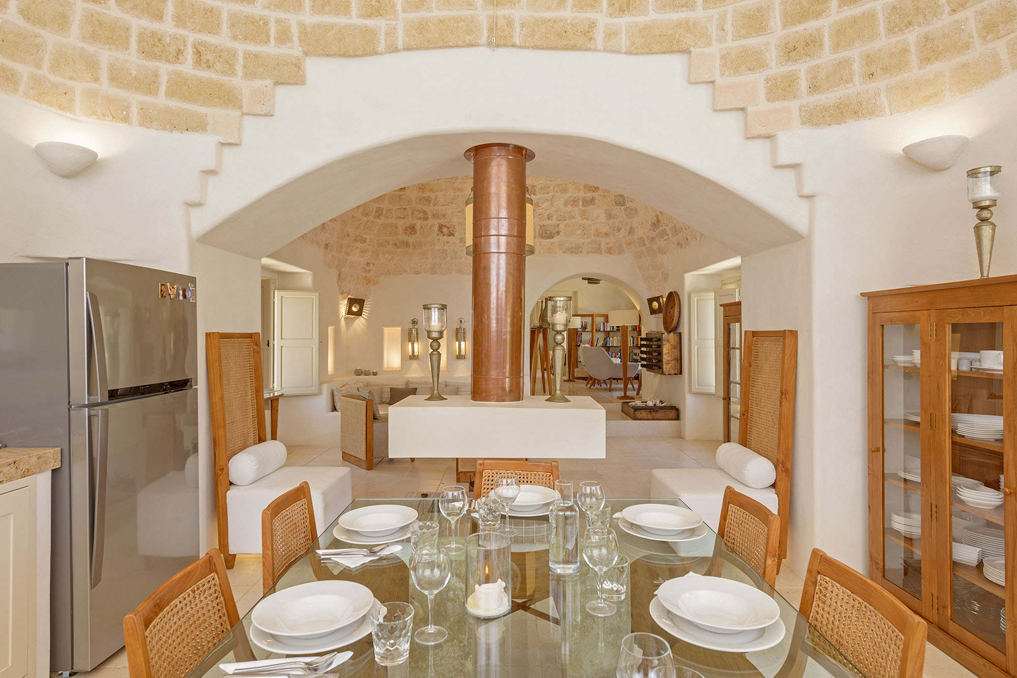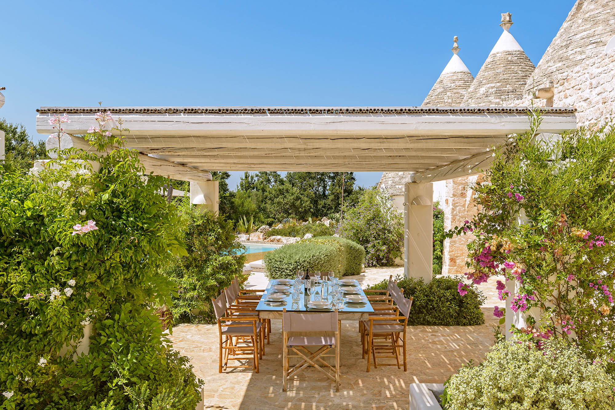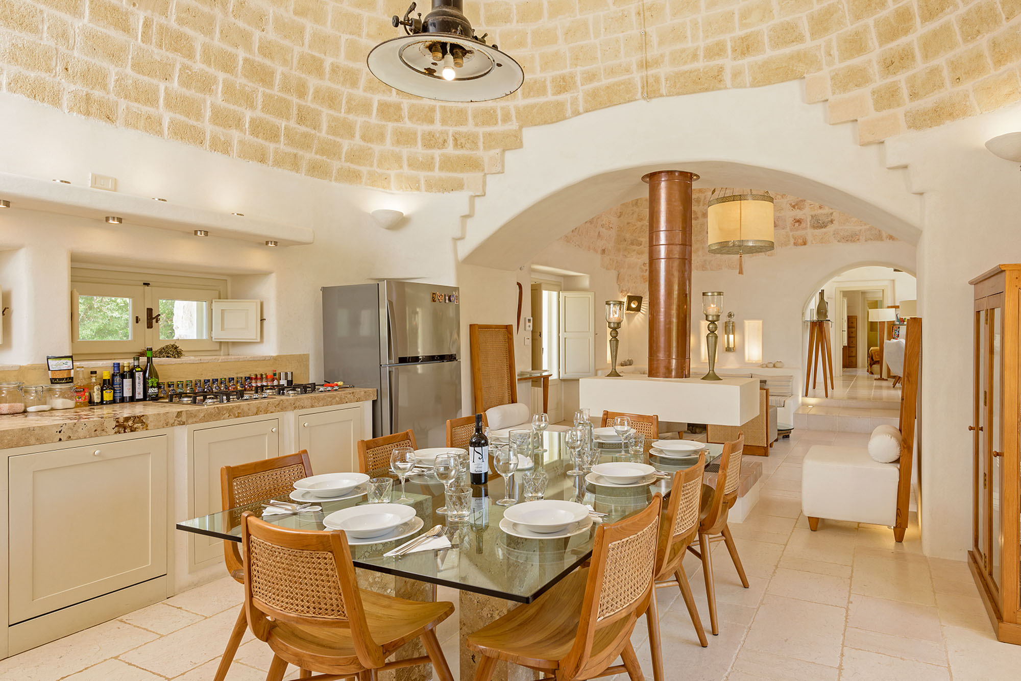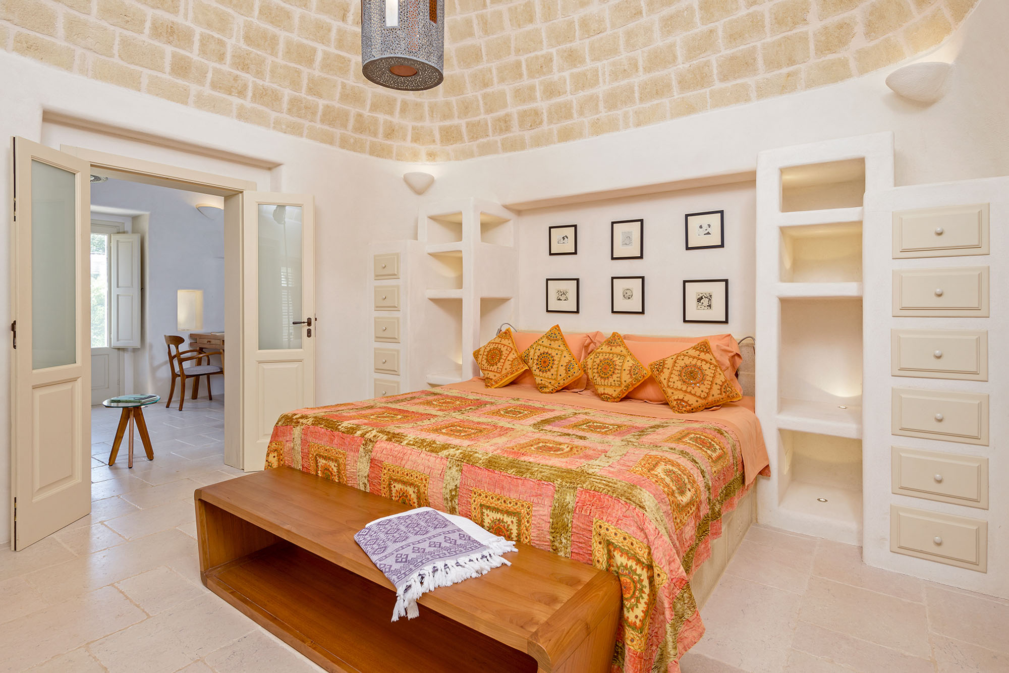 The whitewashed hill towns of Ostuni, Ceglie Messapica, Cisternino, and Martina Franca are within easy reach and are renowned for their charm and exceptional cuisine. Several Michelin-starred restaurants are within 30 minutes, though local hidden gems rival even these. Guests have a choice of Adriatic beaches, about 25 minutes away, or Ionian beaches, around 40 minutes away, each with clear waters, sand dunes, and beachside dining. Lecce’s Baroque architecture, the Roman ruins at Egnazia, and historic coastal cathedrals are all nearby for cultural excursions.