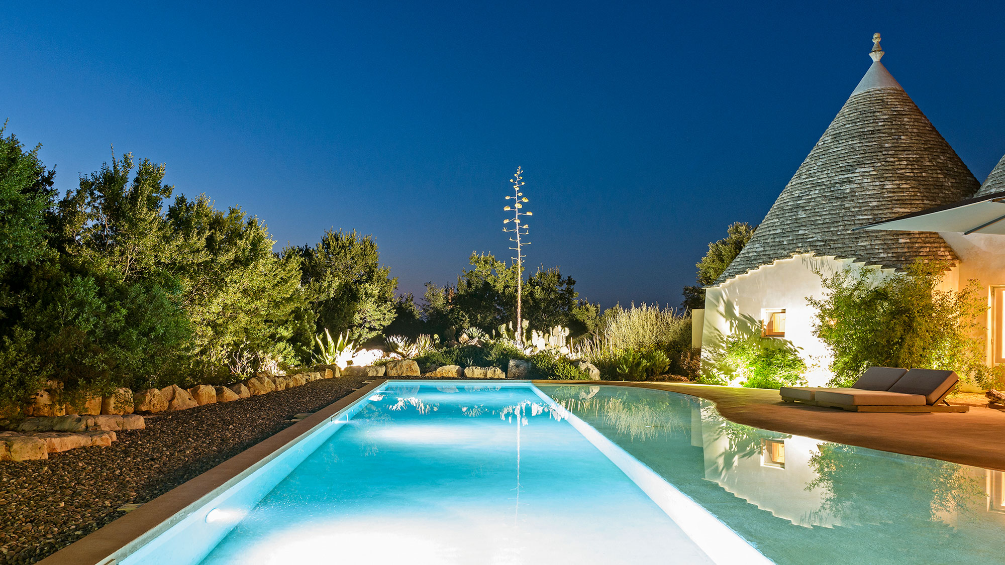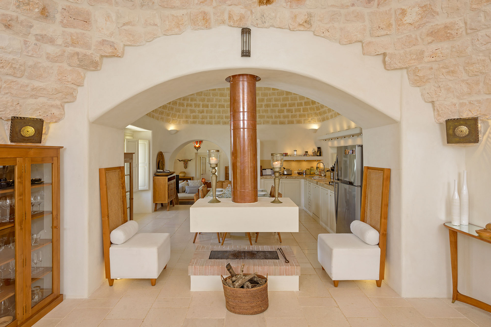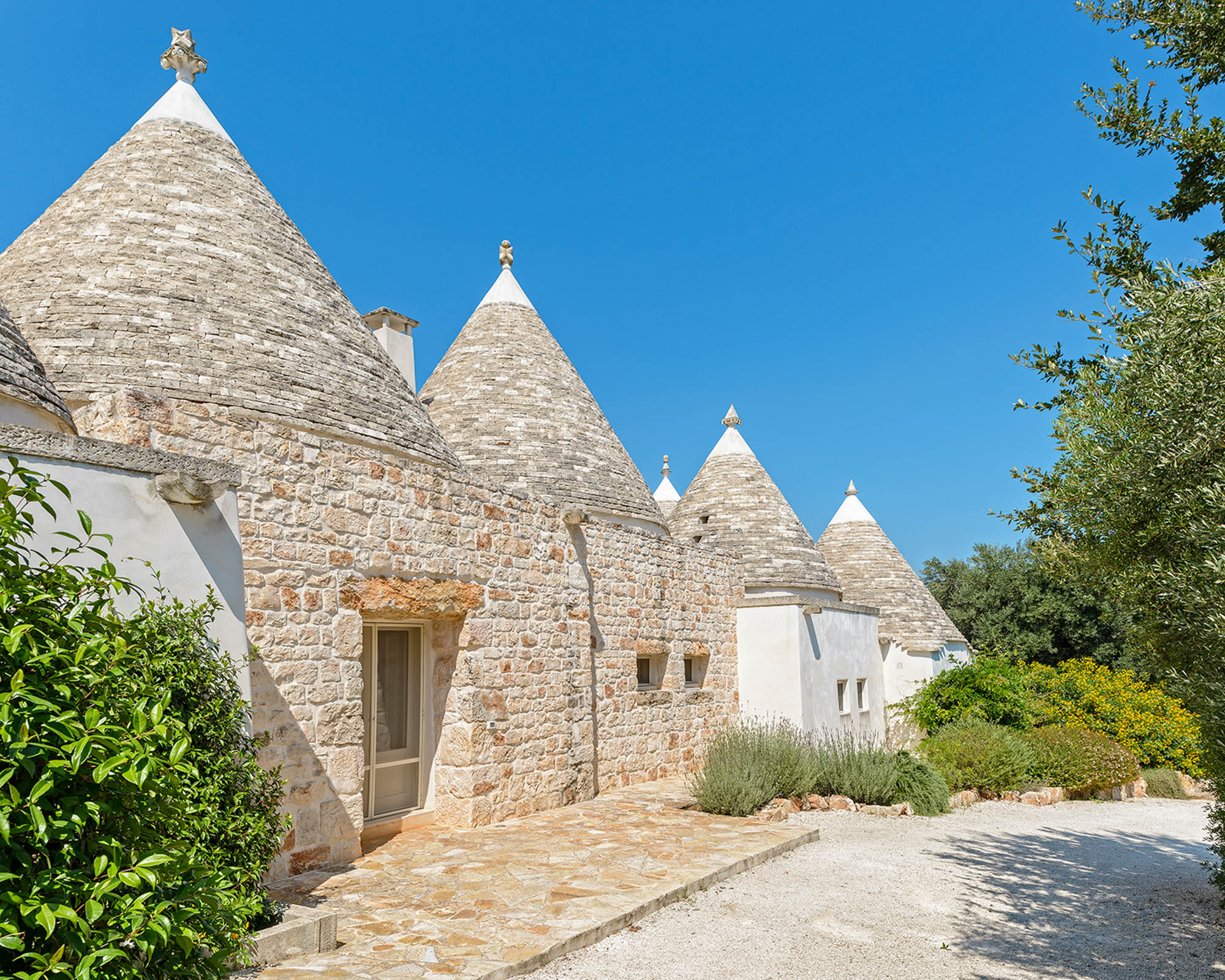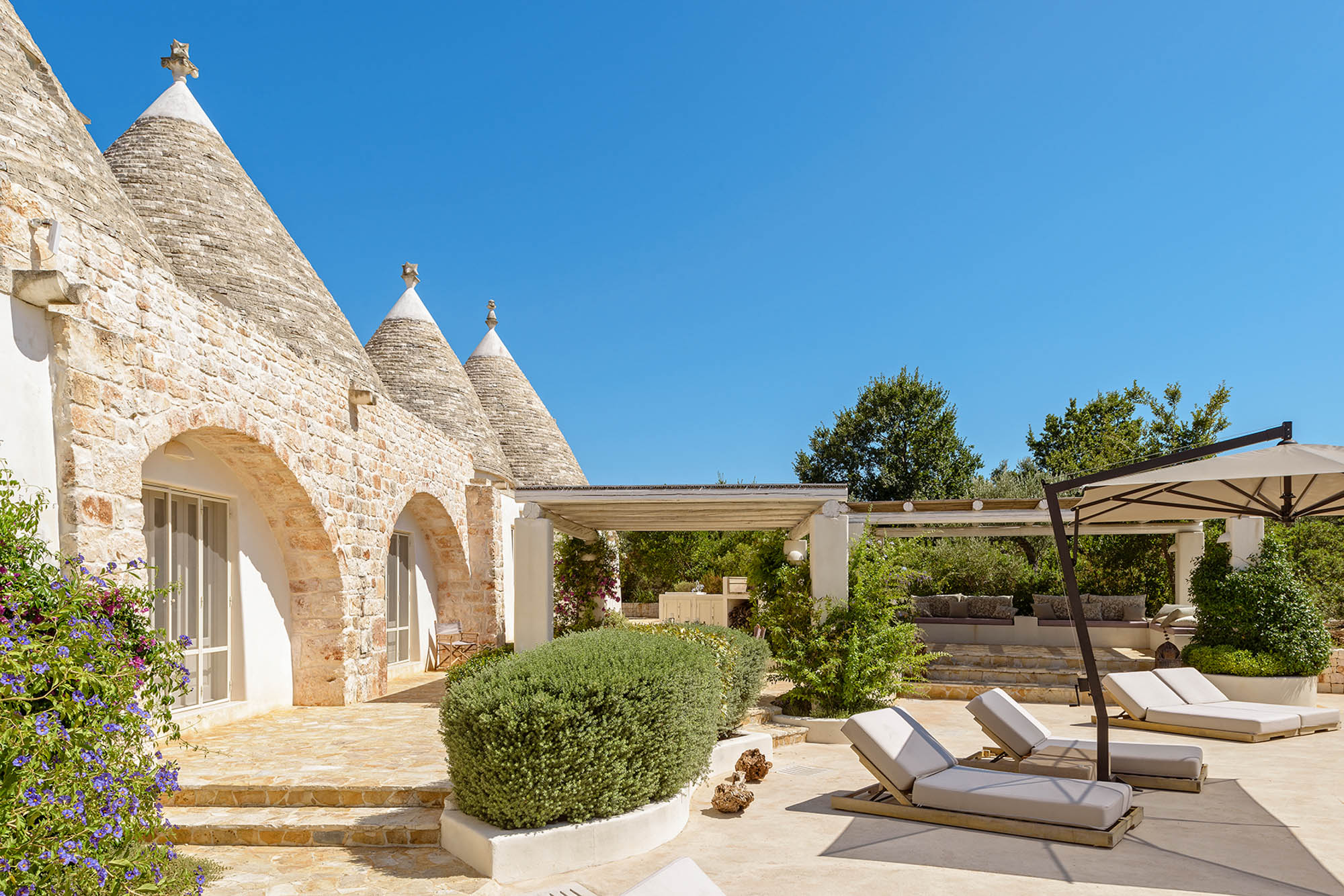 It's newly built, using skilled local craftsmen and blending modern interior aesthetics with traditional building techniques. Set within 6 acres of private land and surrounded by farmland and olive groves, the location is so private and peaceful, yet there are six Michelin-starred restaurants within half an hour's drive and lovely beaches on both the Adriatic and Ionian coasts to explore.