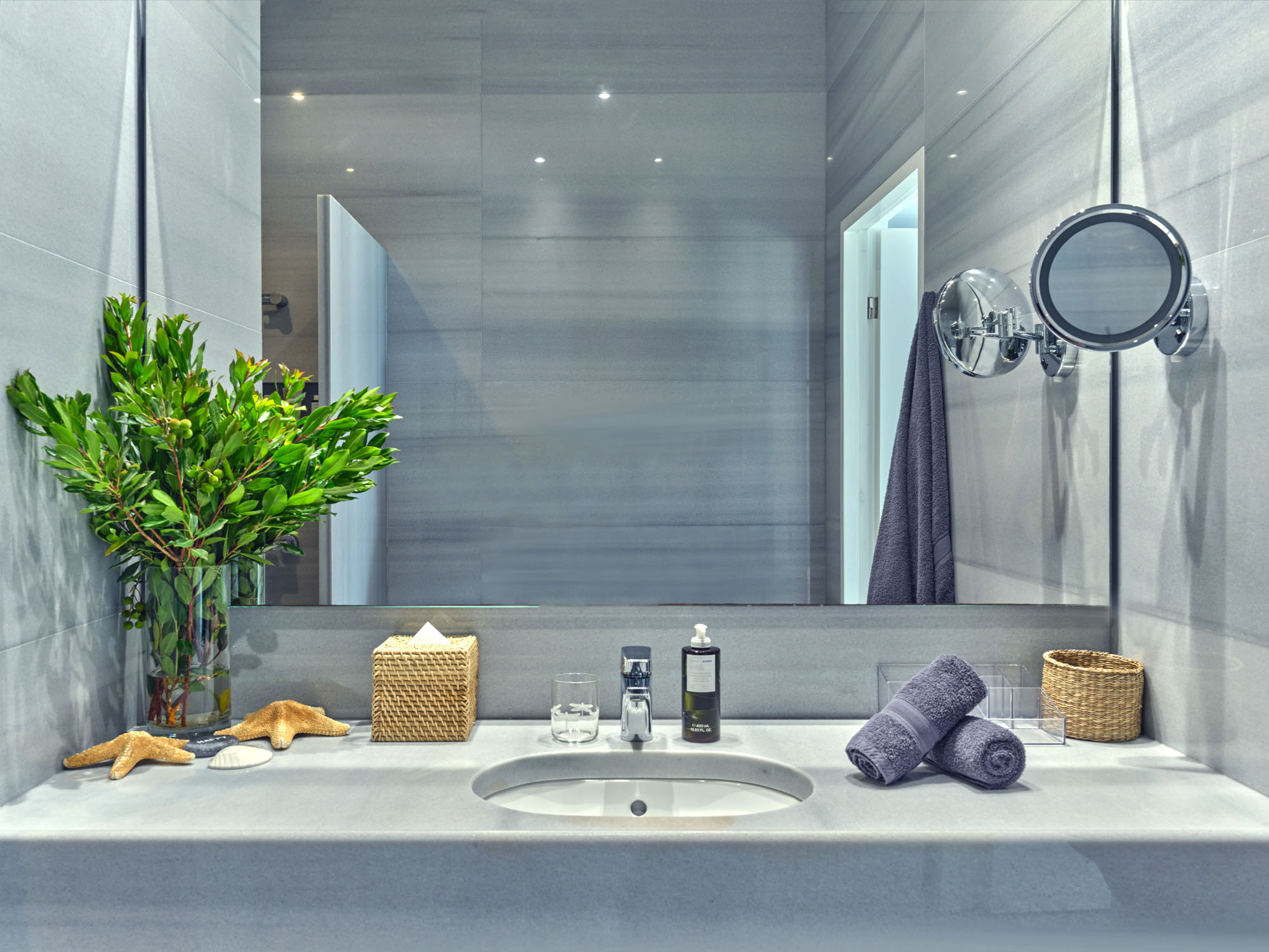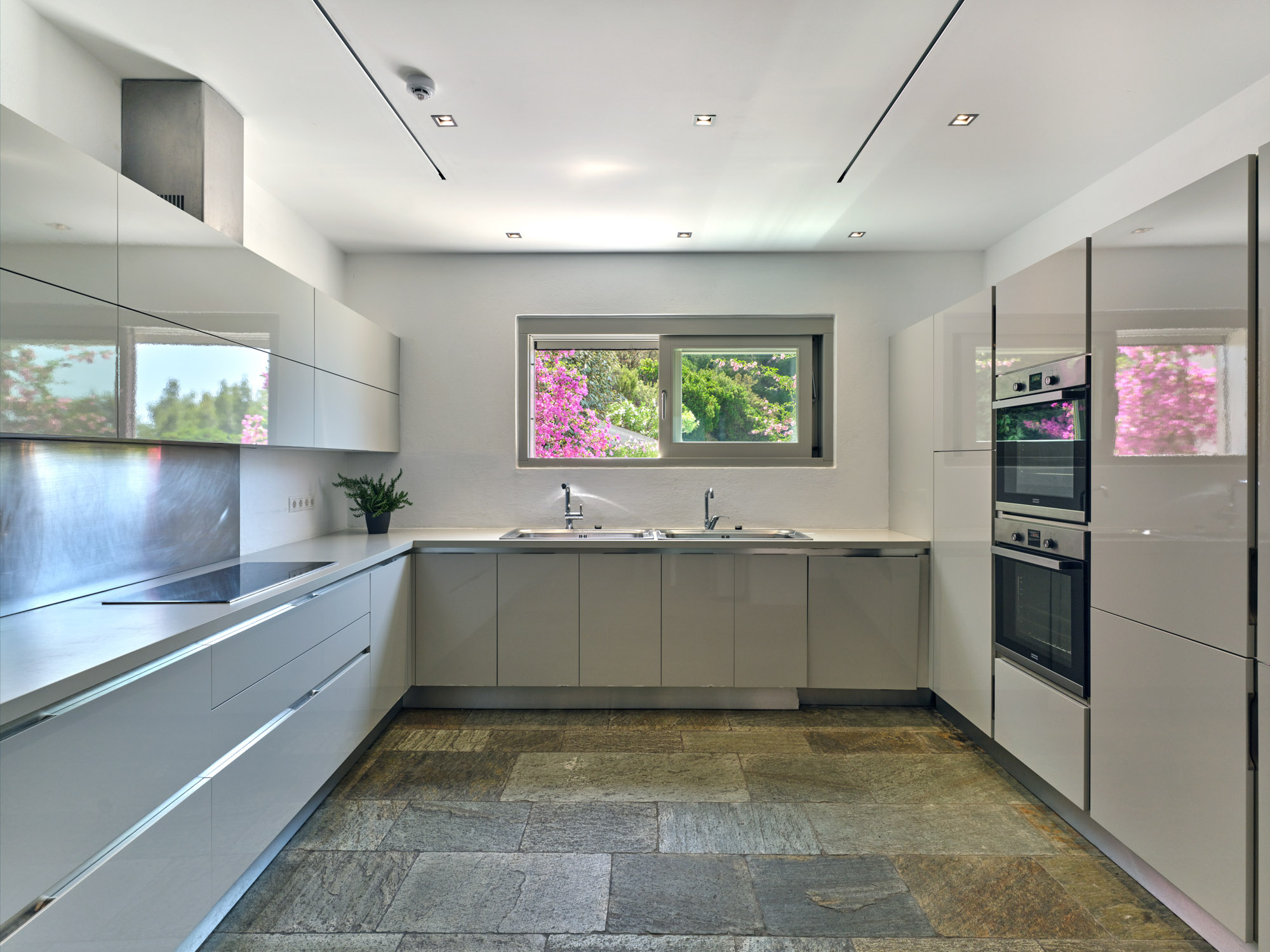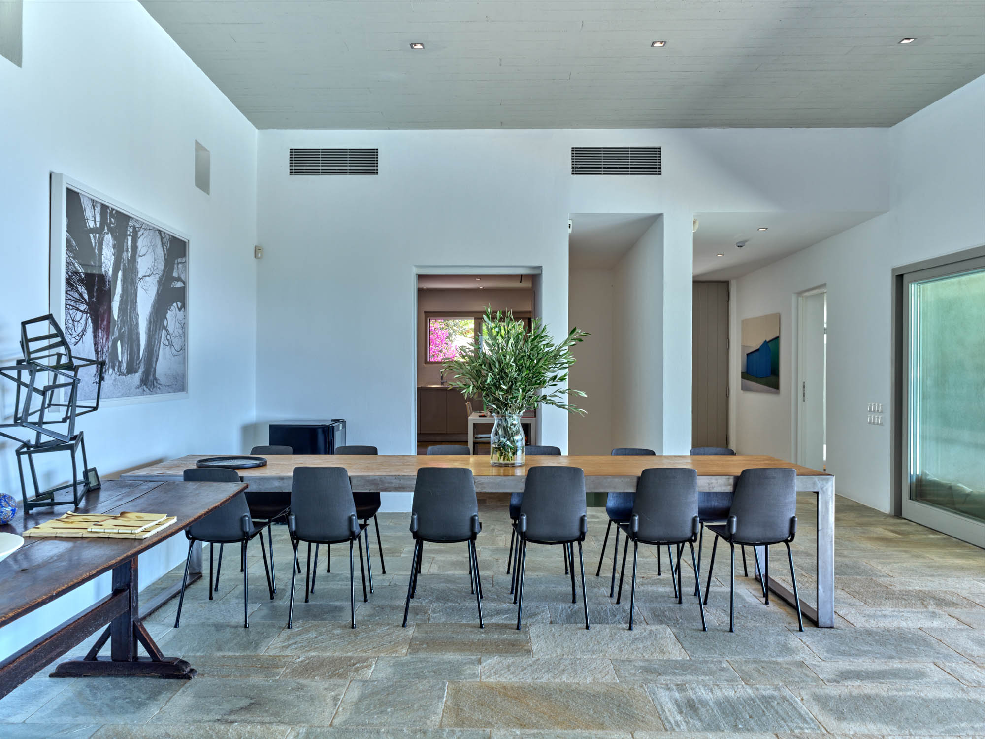 The large open-plan living and dining room has wonderful sea views and lots of light. The uncluttered, minimalist interiors create a calm, restful ambience without sacrificing comfort and welcoming decorative details.