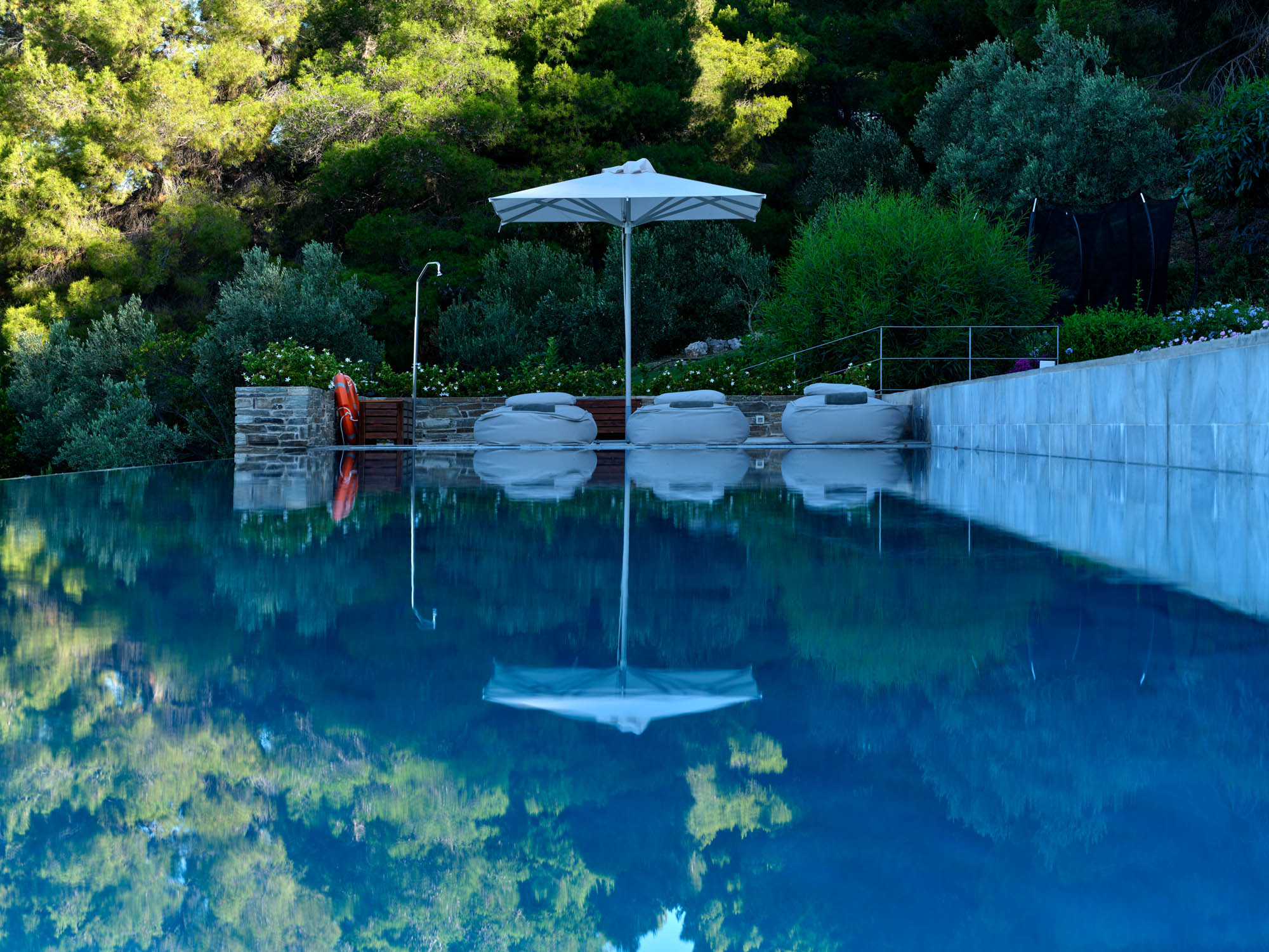 Tzaneria Beach, only a 5-minute drive away, offers lively beach clubs and watersports, while a variety of other beaches, tavernas, and coastal spots lie within a short drive. For a day on the water, guests can also arrange a skippered boat trip to explore the nearby island of Skopelos, adding a memorable dimension to the stay.