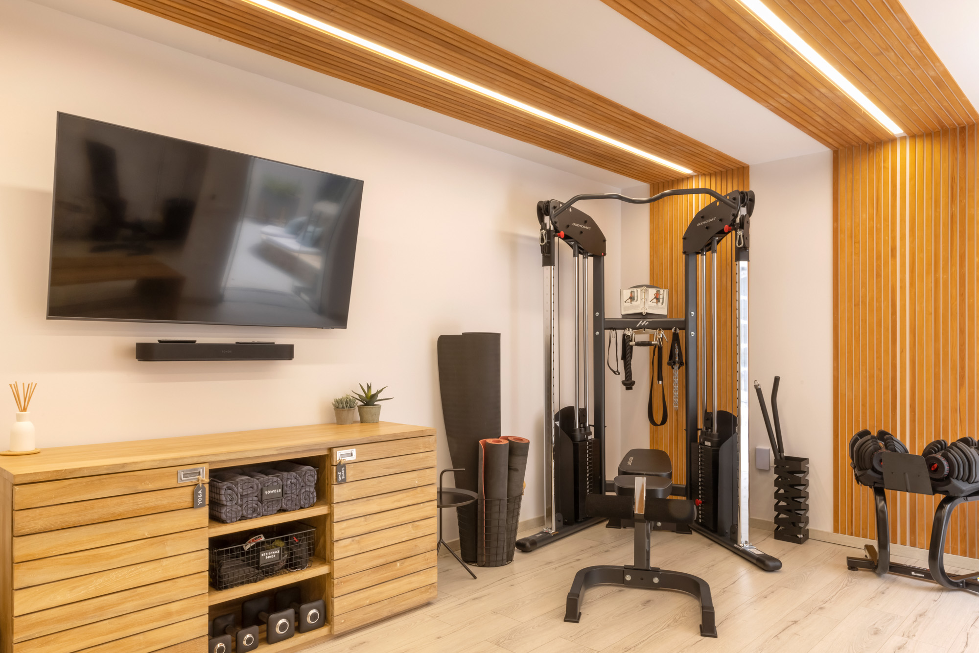 The expansive living and dining area serves as the heart of the home, where a cosy fireplace creates an inviting atmosphere. The games room with a large TV, foosball and pool table will provide hours of entertainment. Fitness enthusiasts will appreciate the state-of-the-art gym with a Peloton Tread, Bike and an array of weights. Two family/group suites with mezzanine bedrooms and en suite showers are accompanied by five further bedrooms with en suite bathrooms.