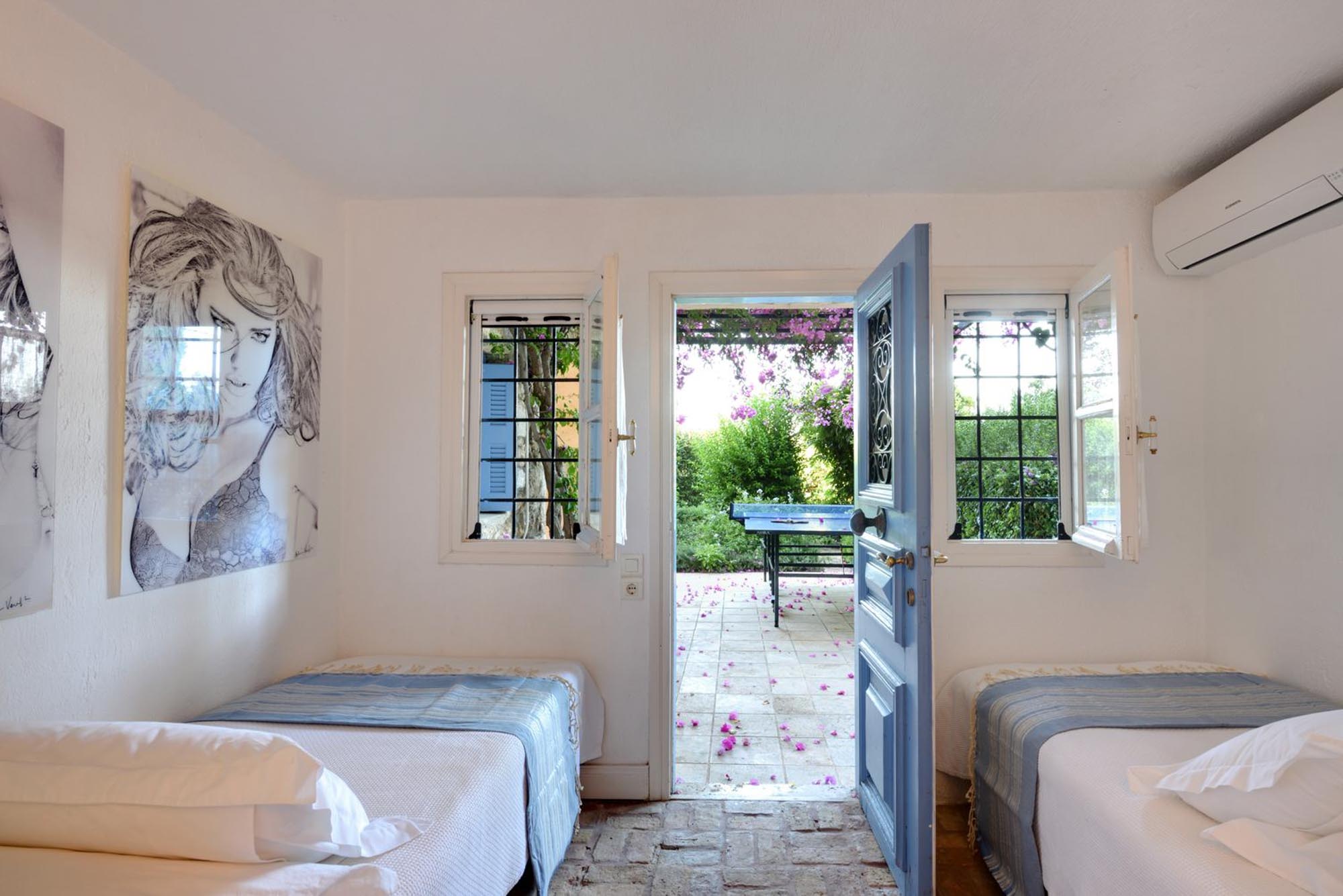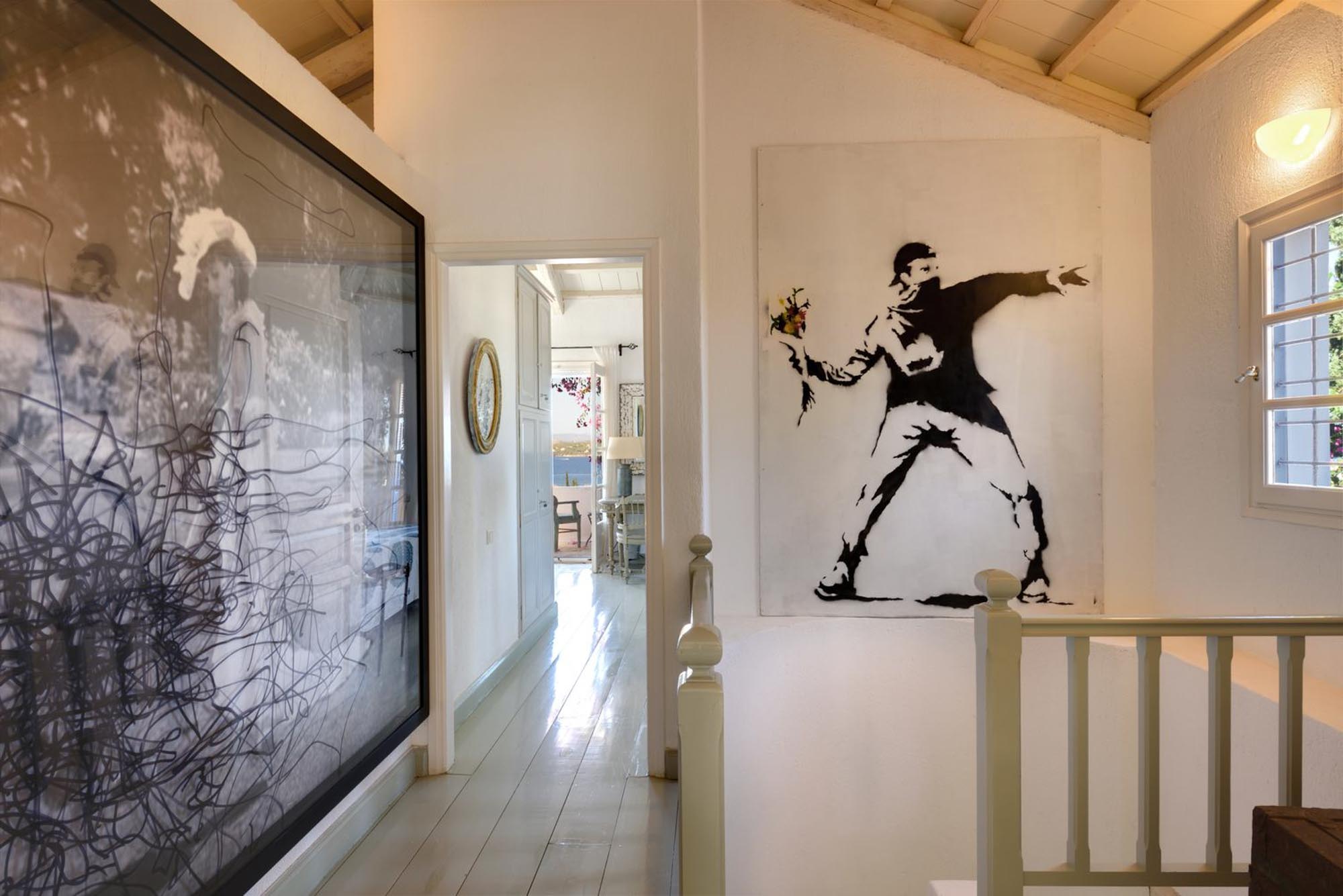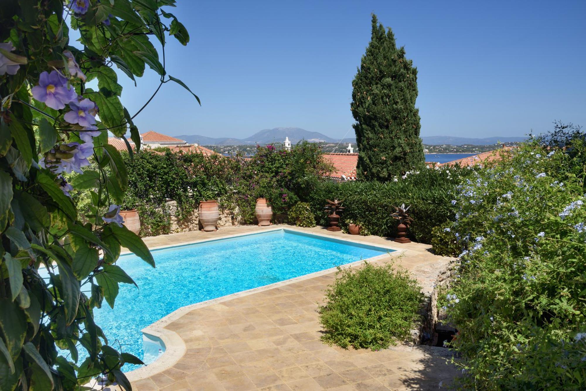 The garden features a traditional charcoal BBQ, two expansive outdoor dining tables, and several cosy lounge areas perfect for unwinding. Three generous balconies provide breathtaking views of the swimming pool, the Saronic Gulf and Hydra, the beautiful garden, and the vibrant town of Spetses.